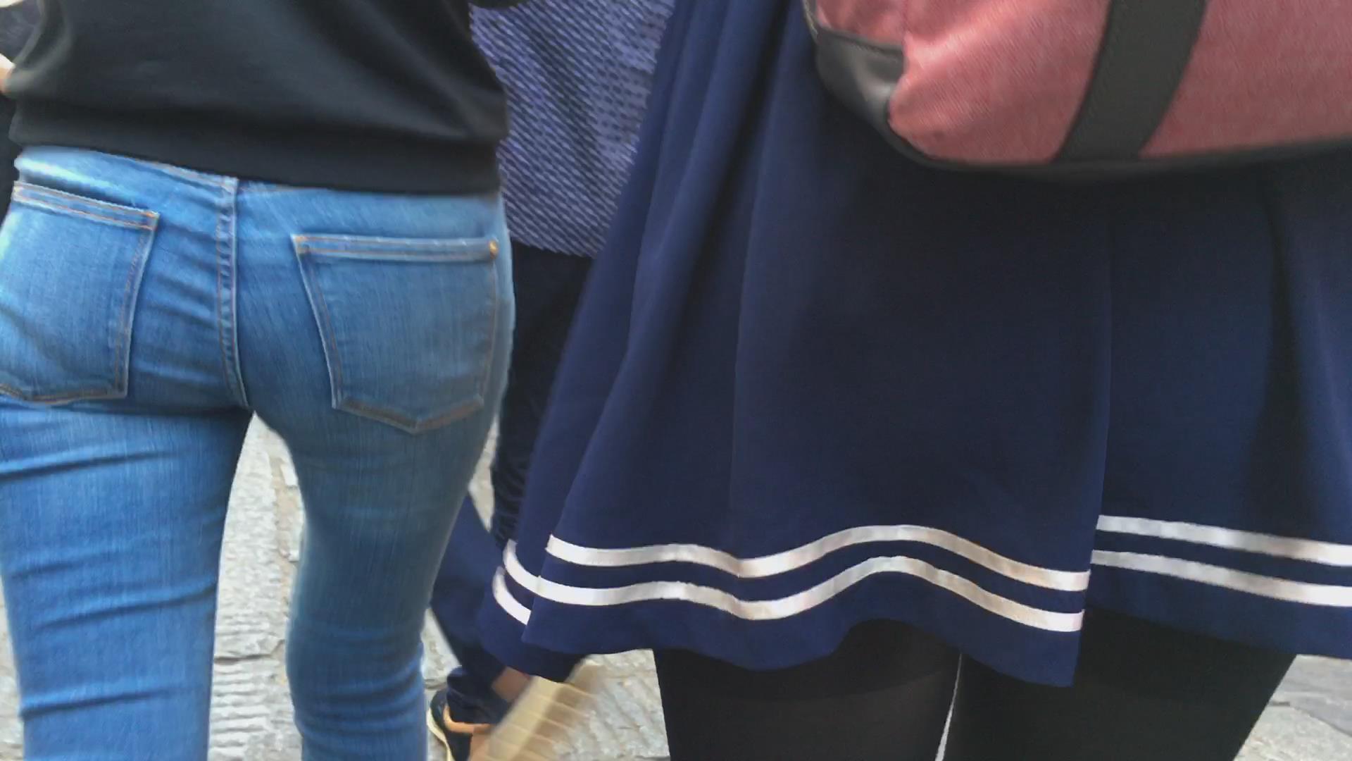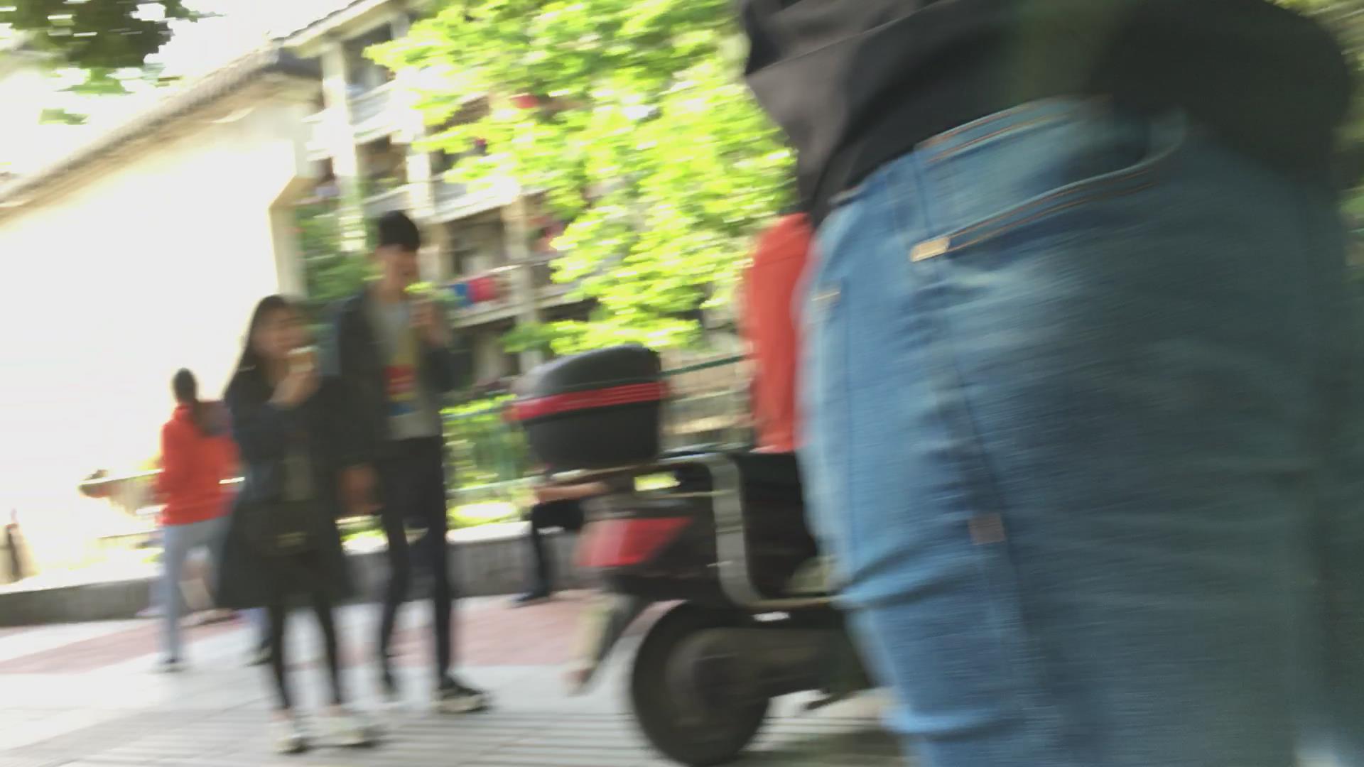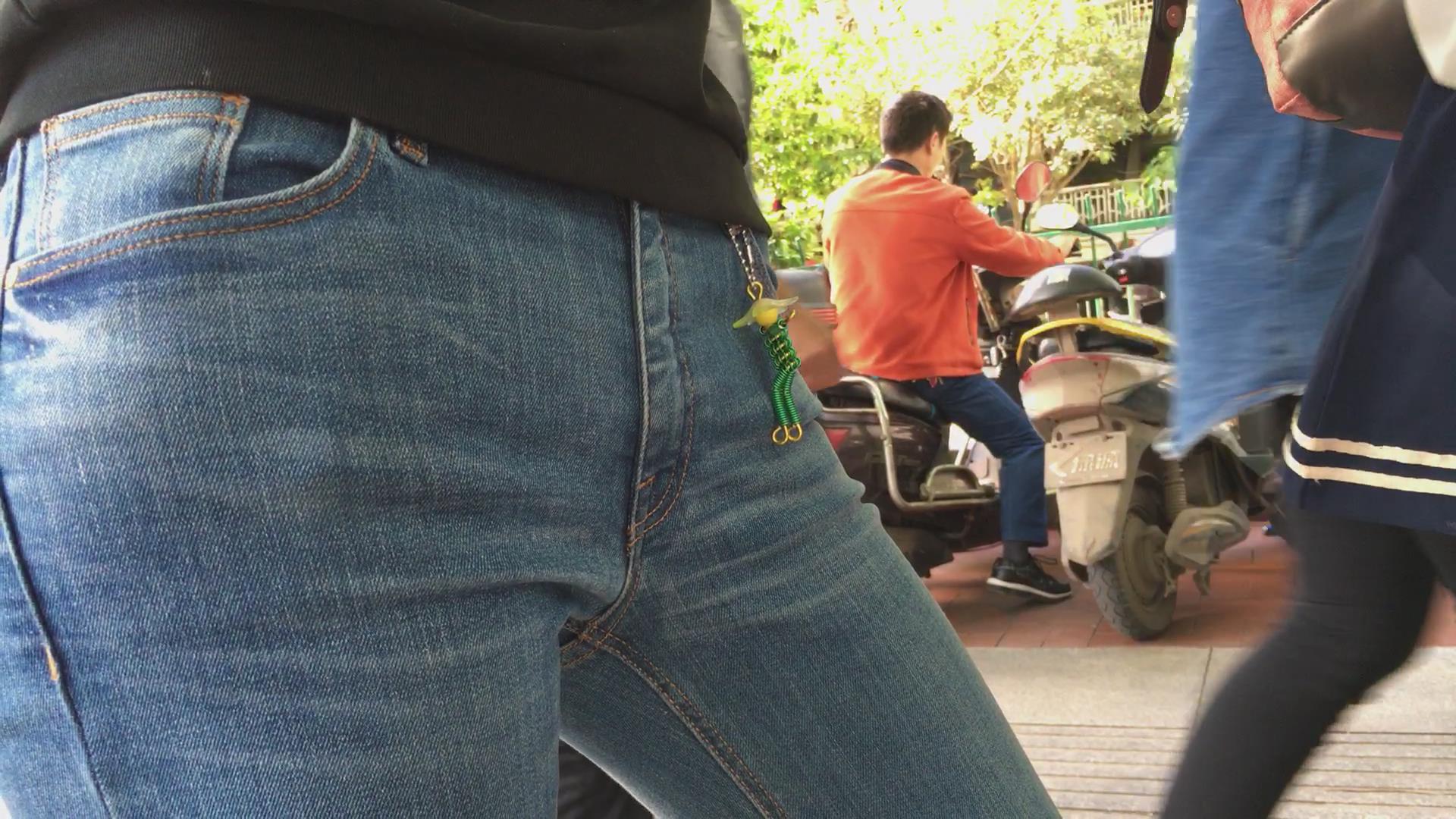 街拍超紧身蓝色牛仔裤宽臀美女 编号5633