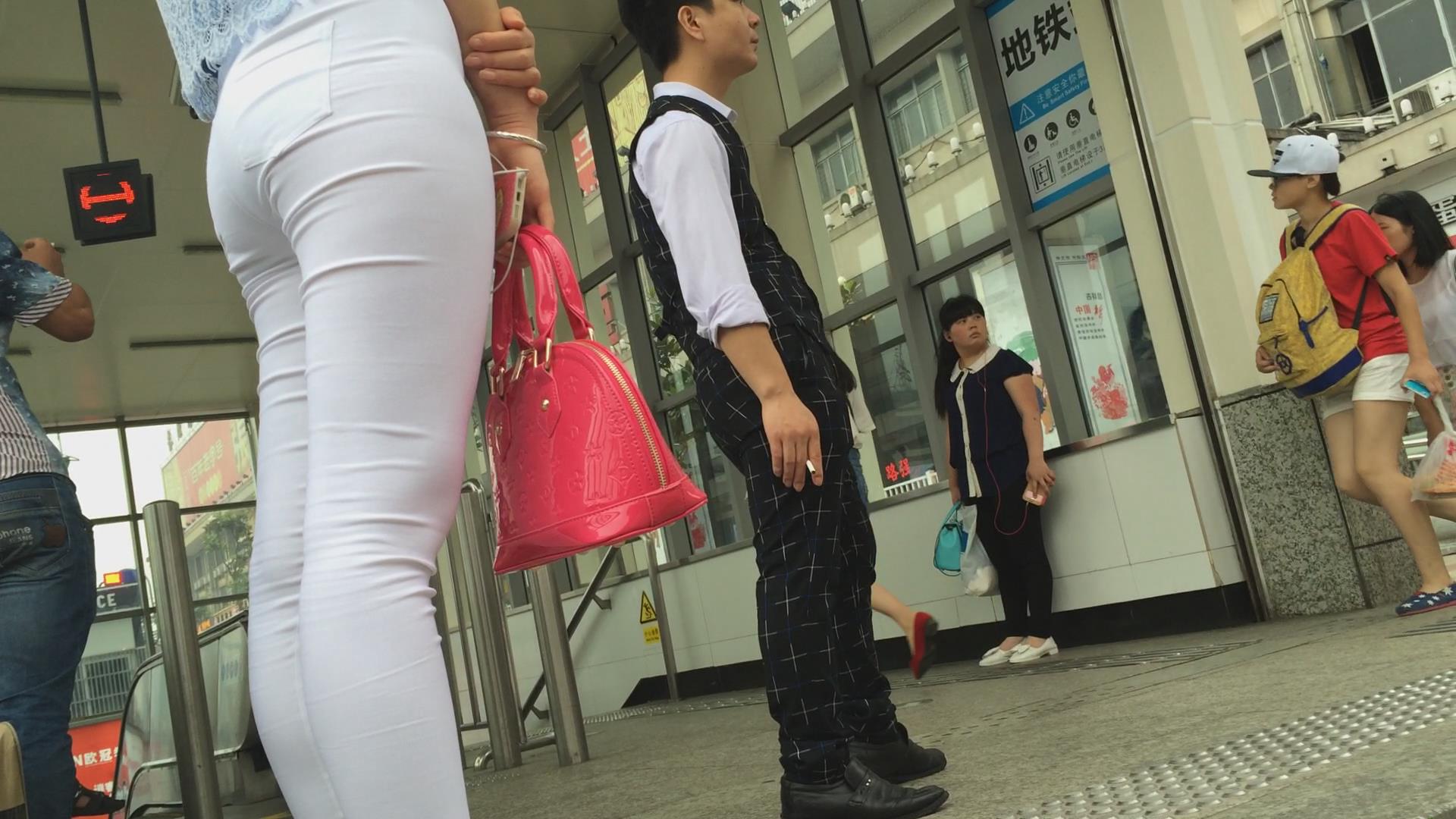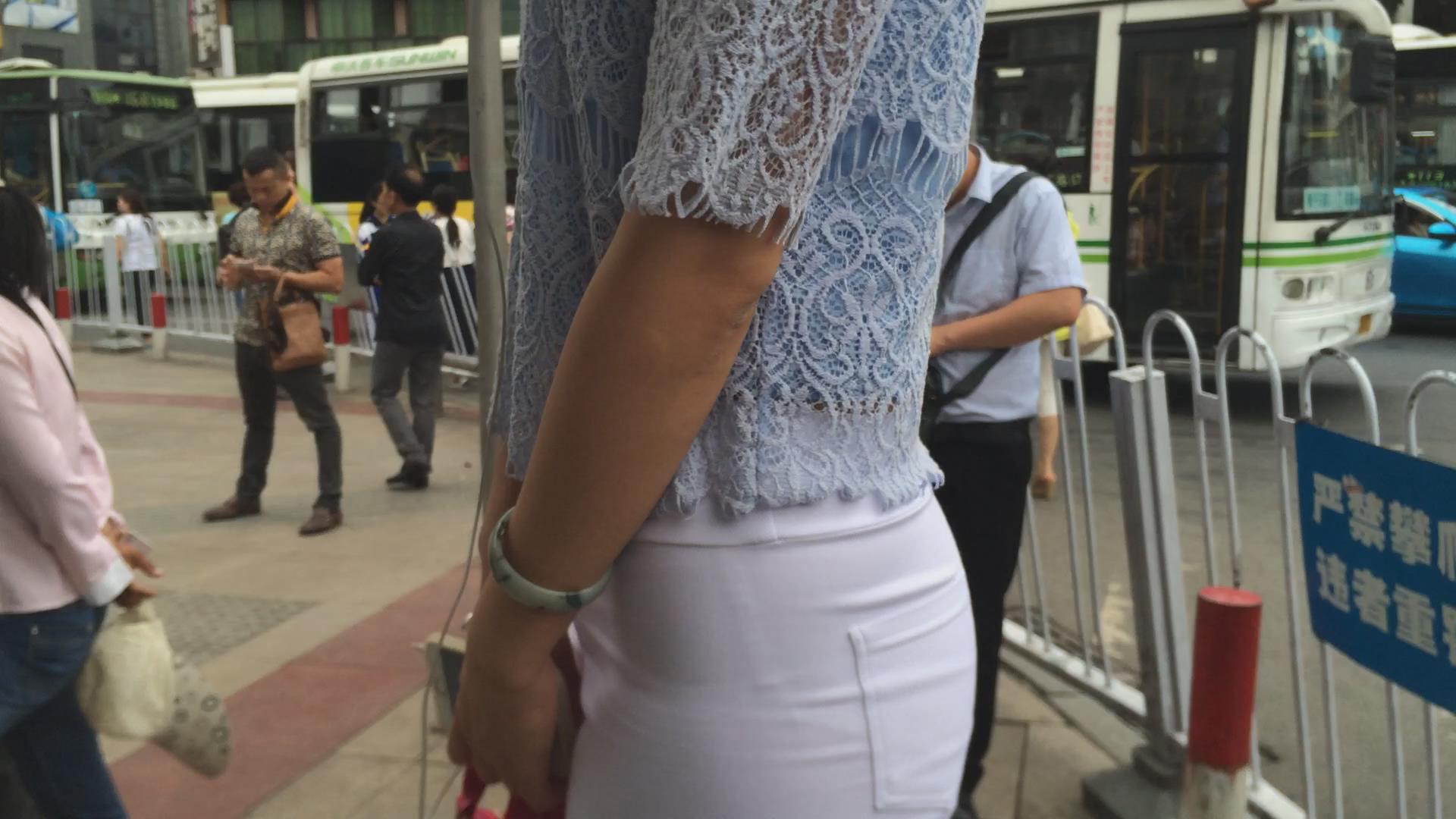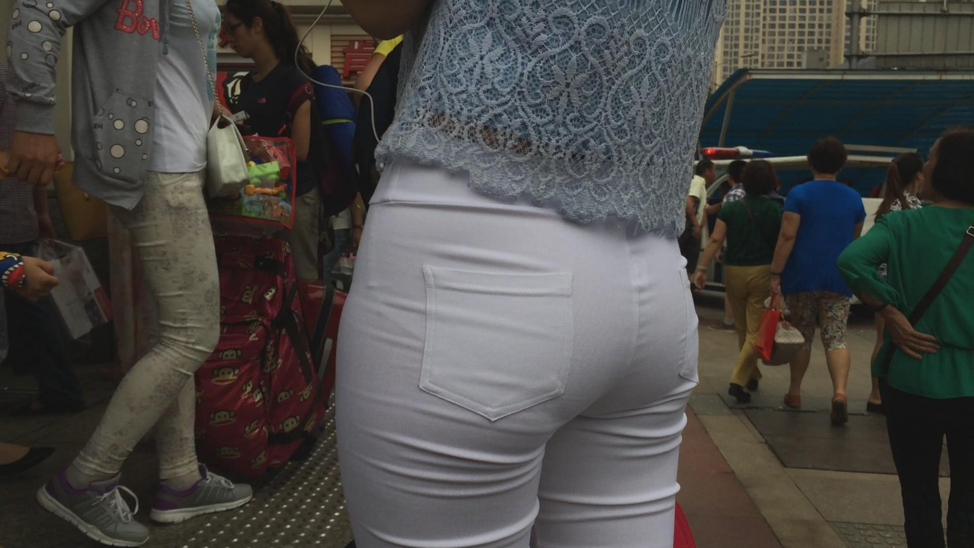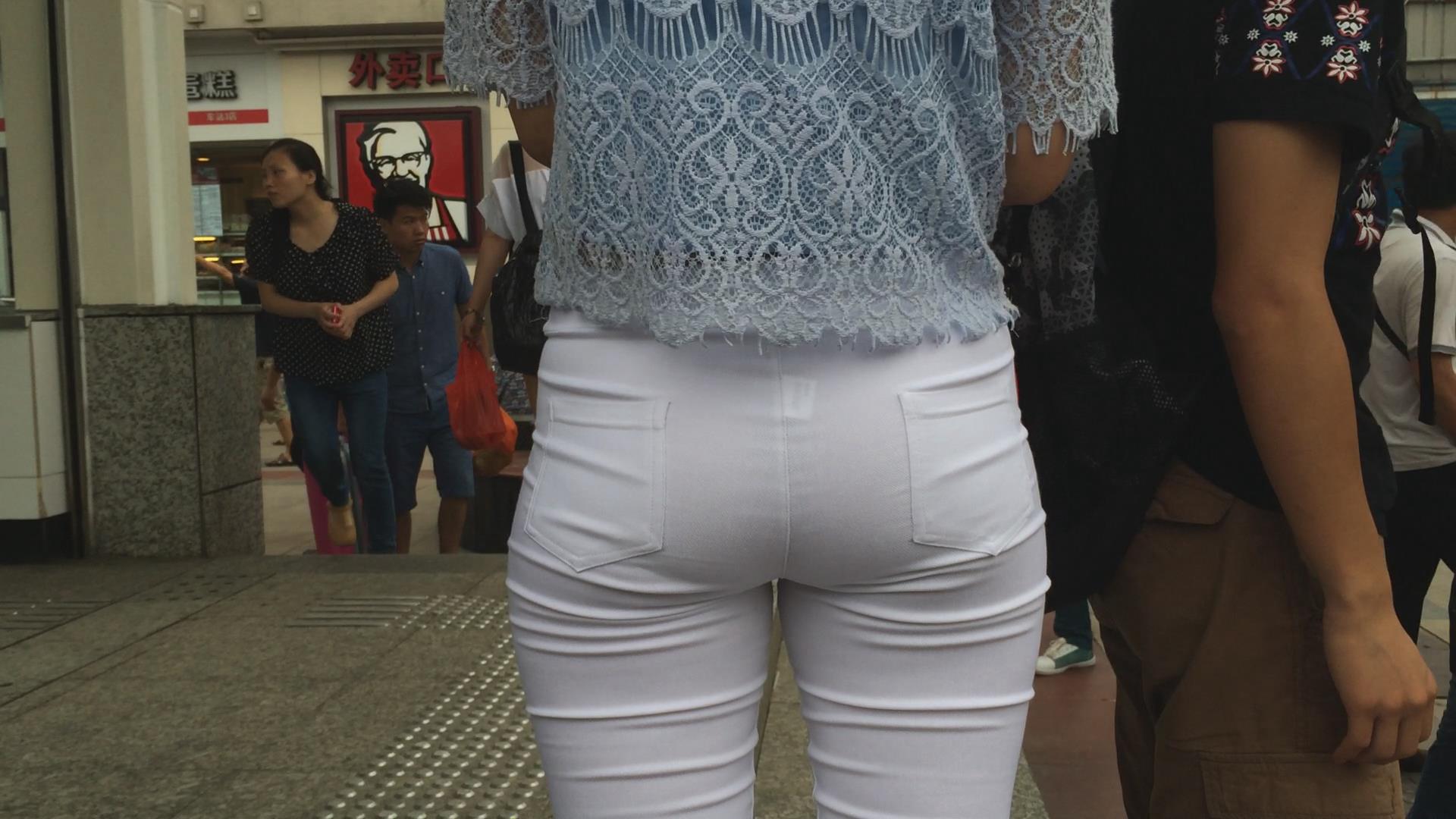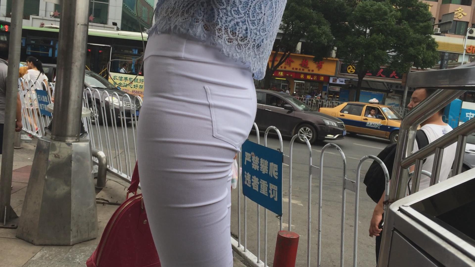 超紧身白裤圆臀破高跟鞋美妇 编号5635