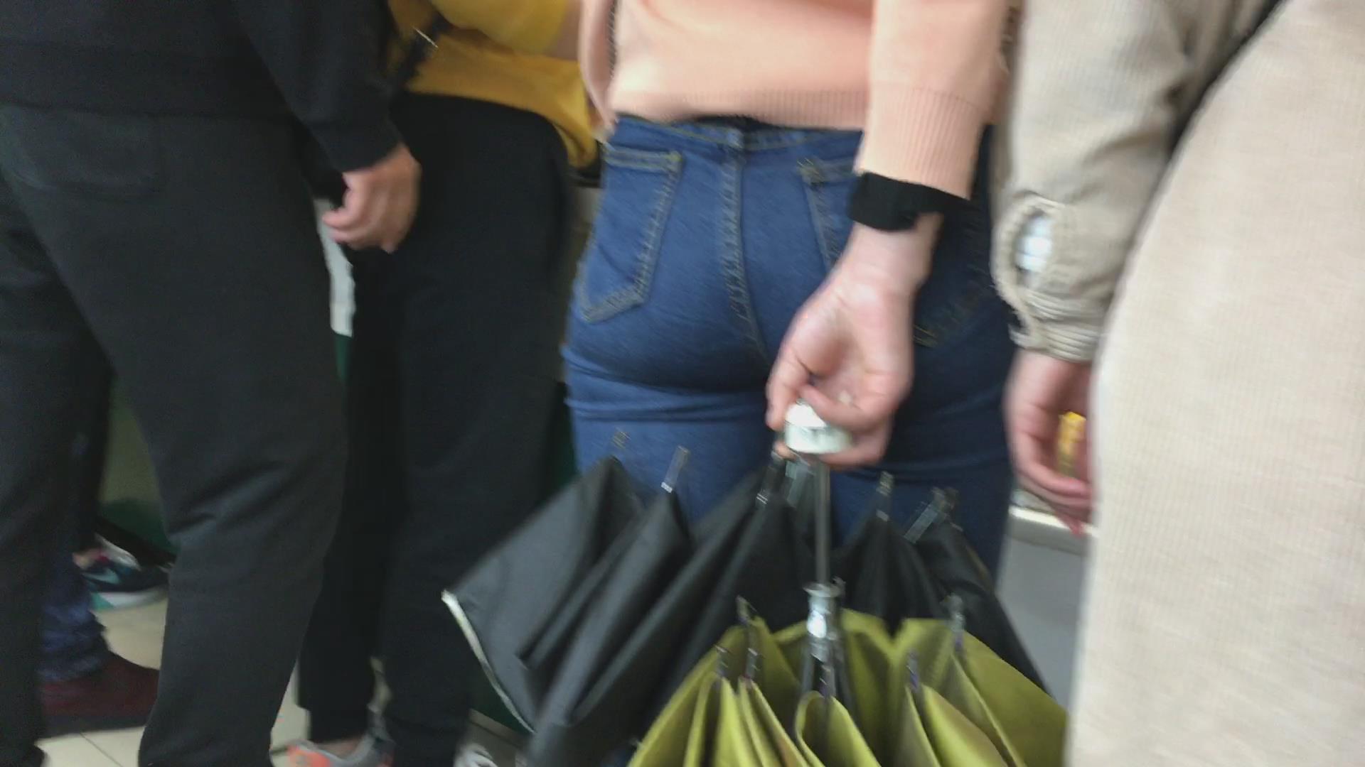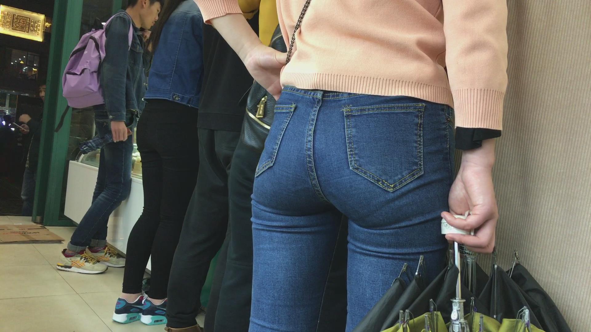 超级紧绷蓝色牛仔裤圆臀美女 编号5637