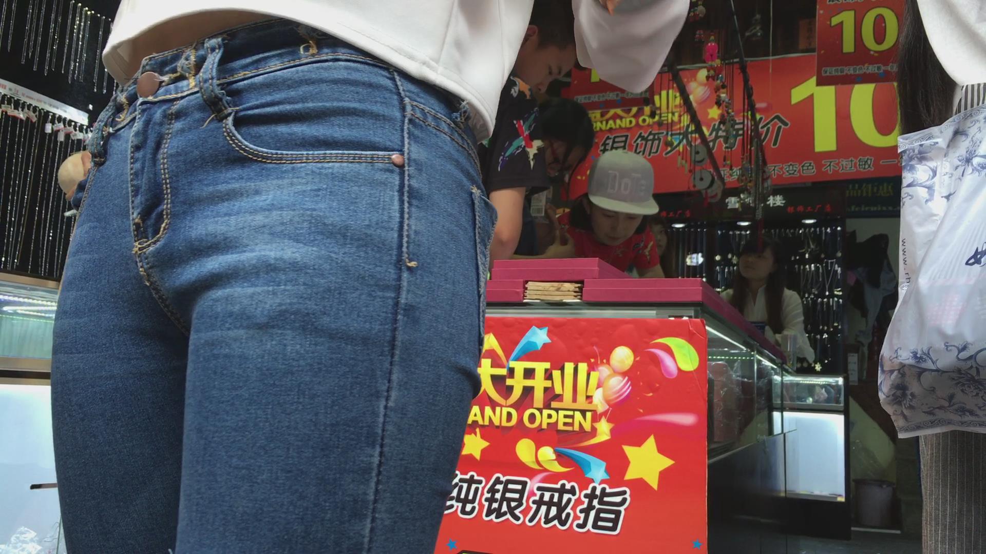 美臀紧身蓝色牛仔裤女孩 编号5638