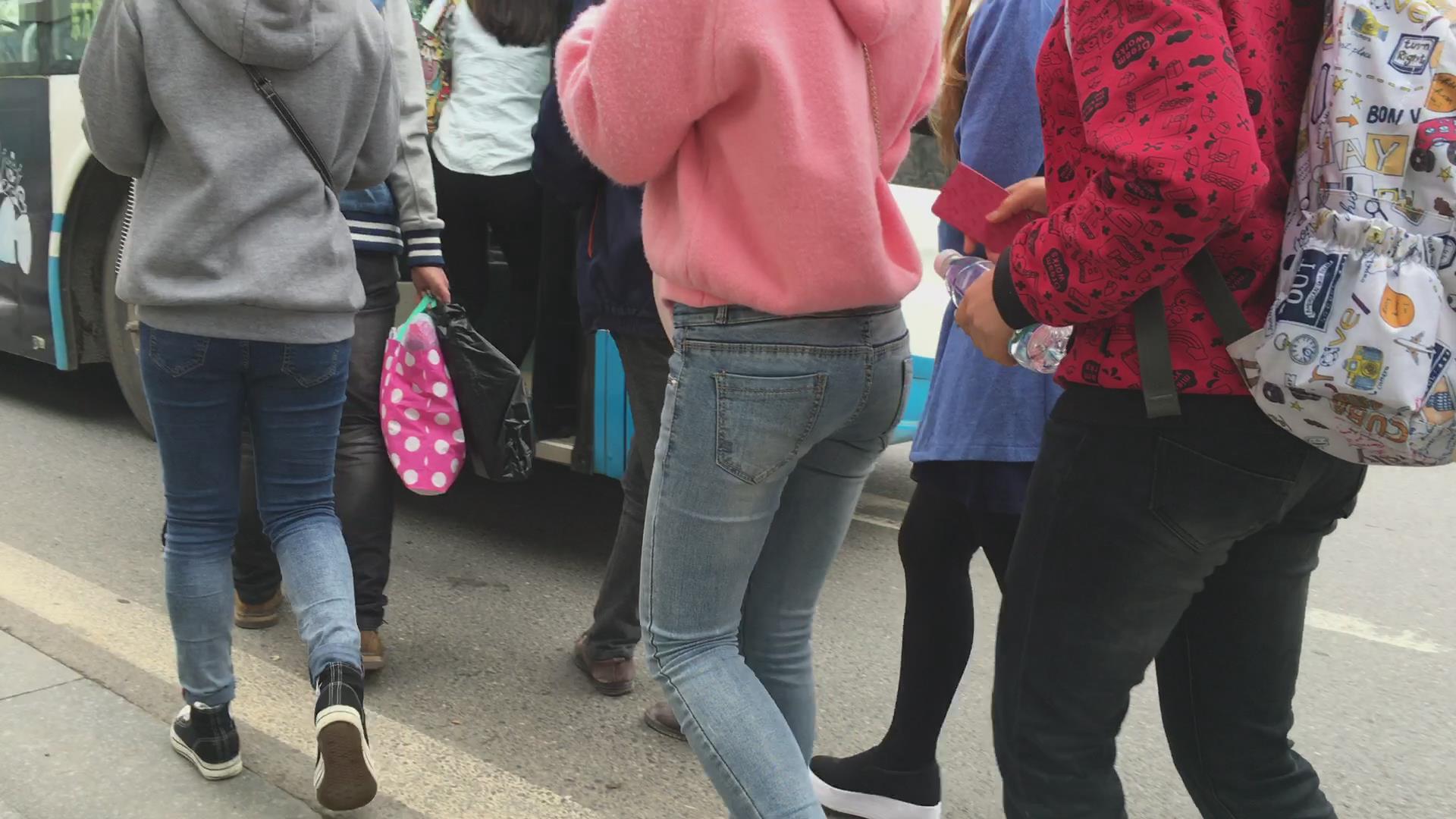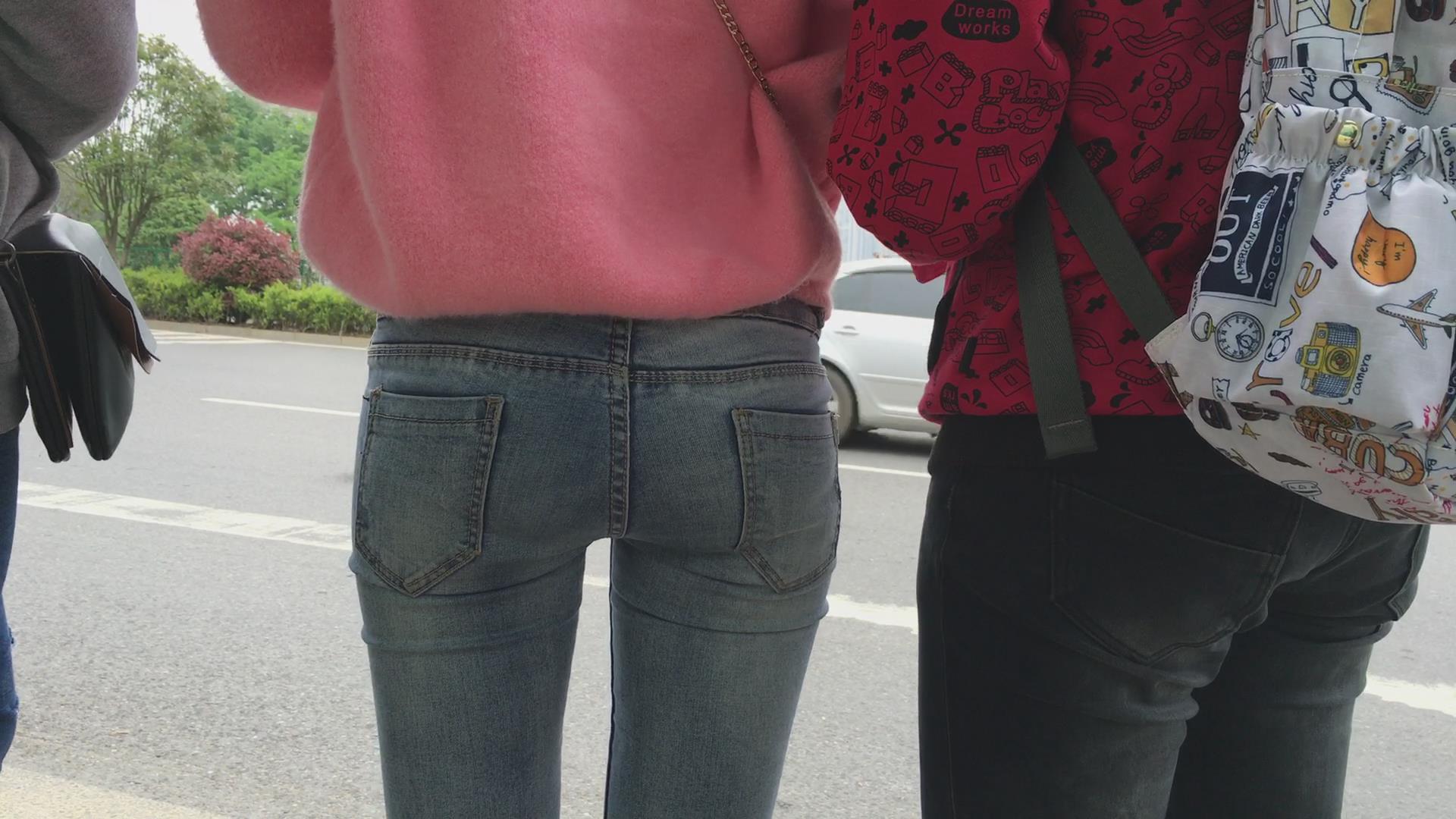一箭三雕三位等公交车的紧牛美眉 编号5646