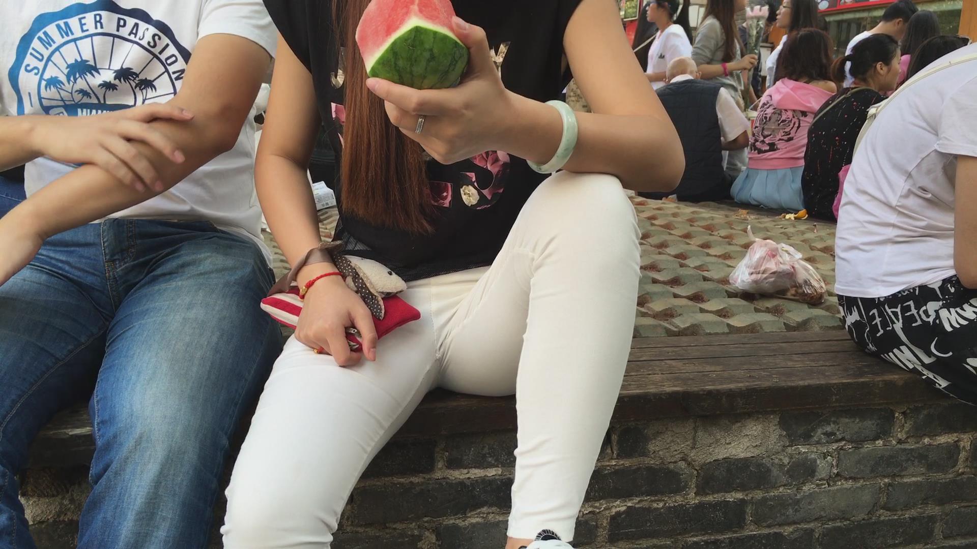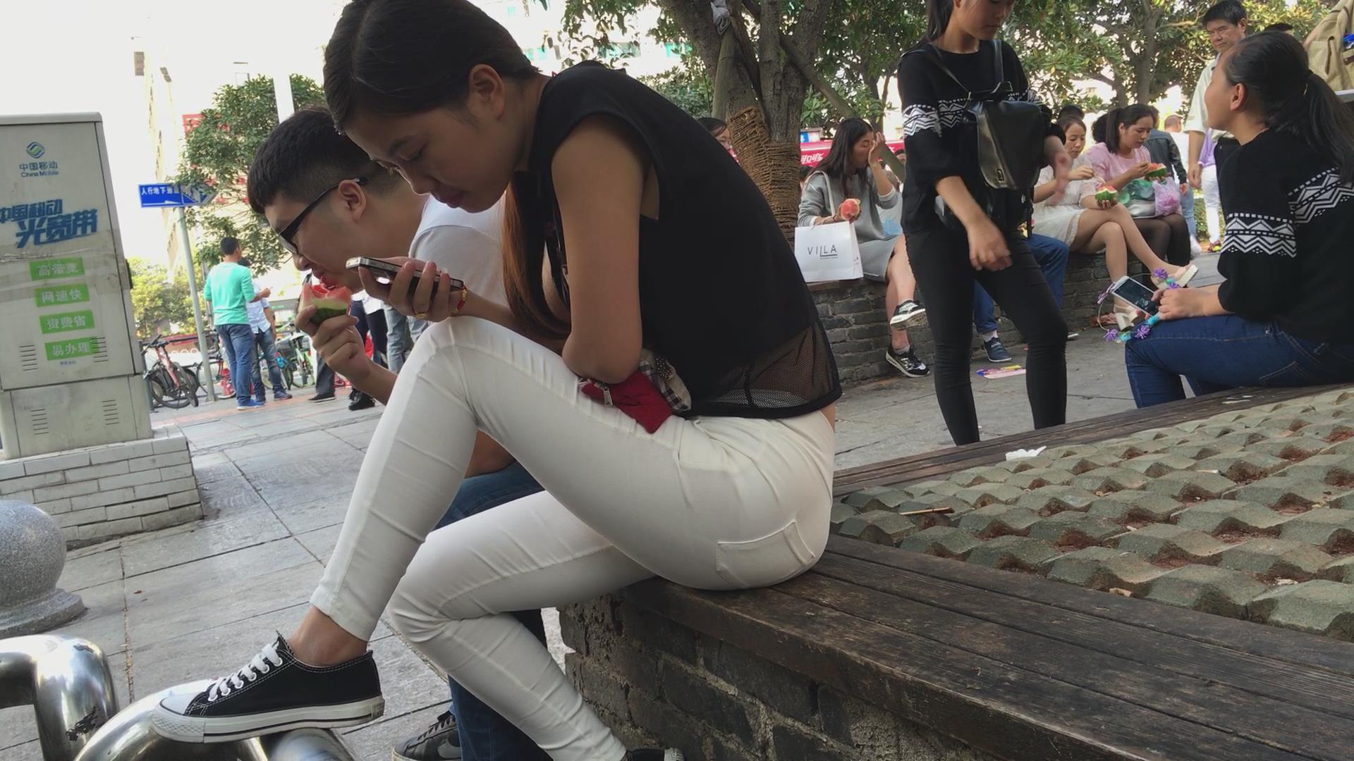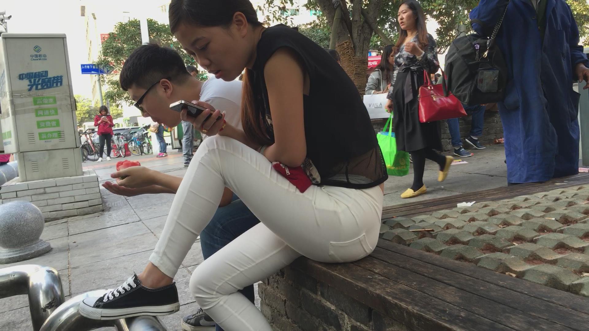 超紧白裤女孩花坛边霸气的坐姿 编号5657