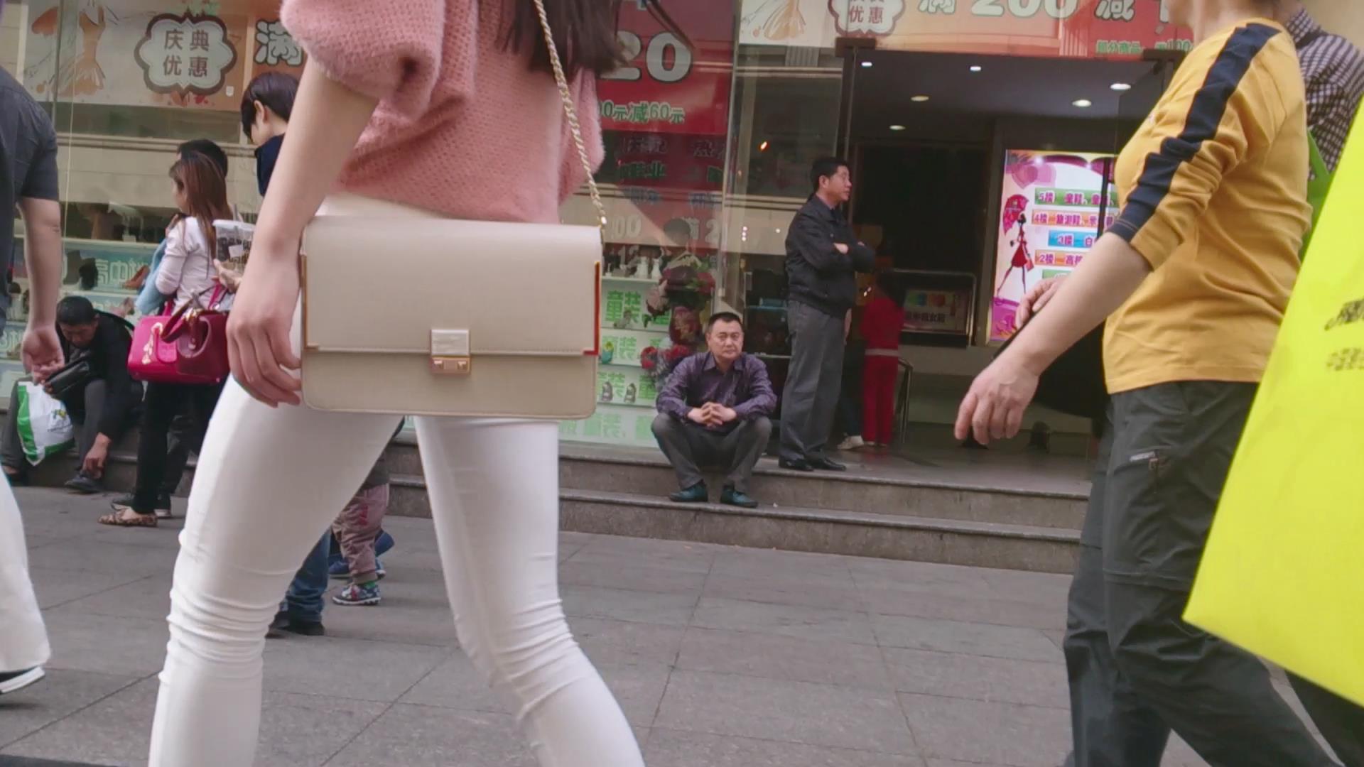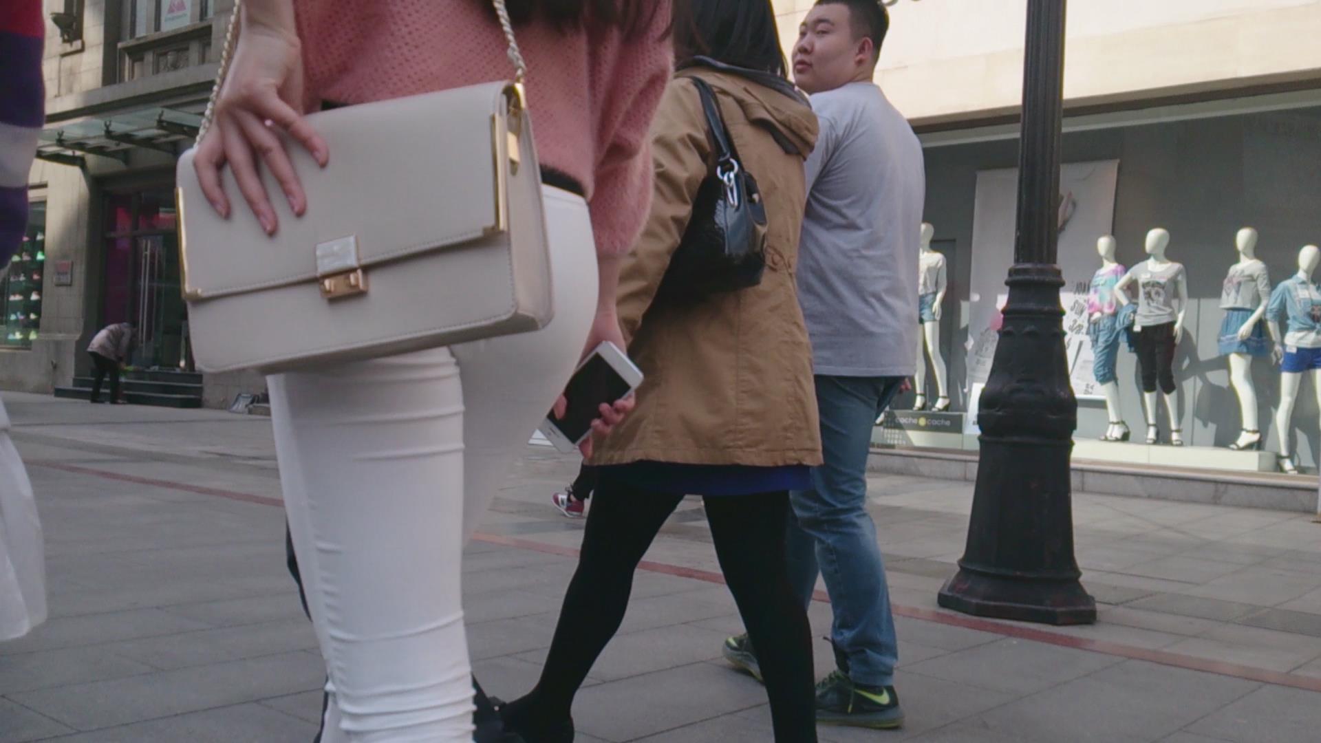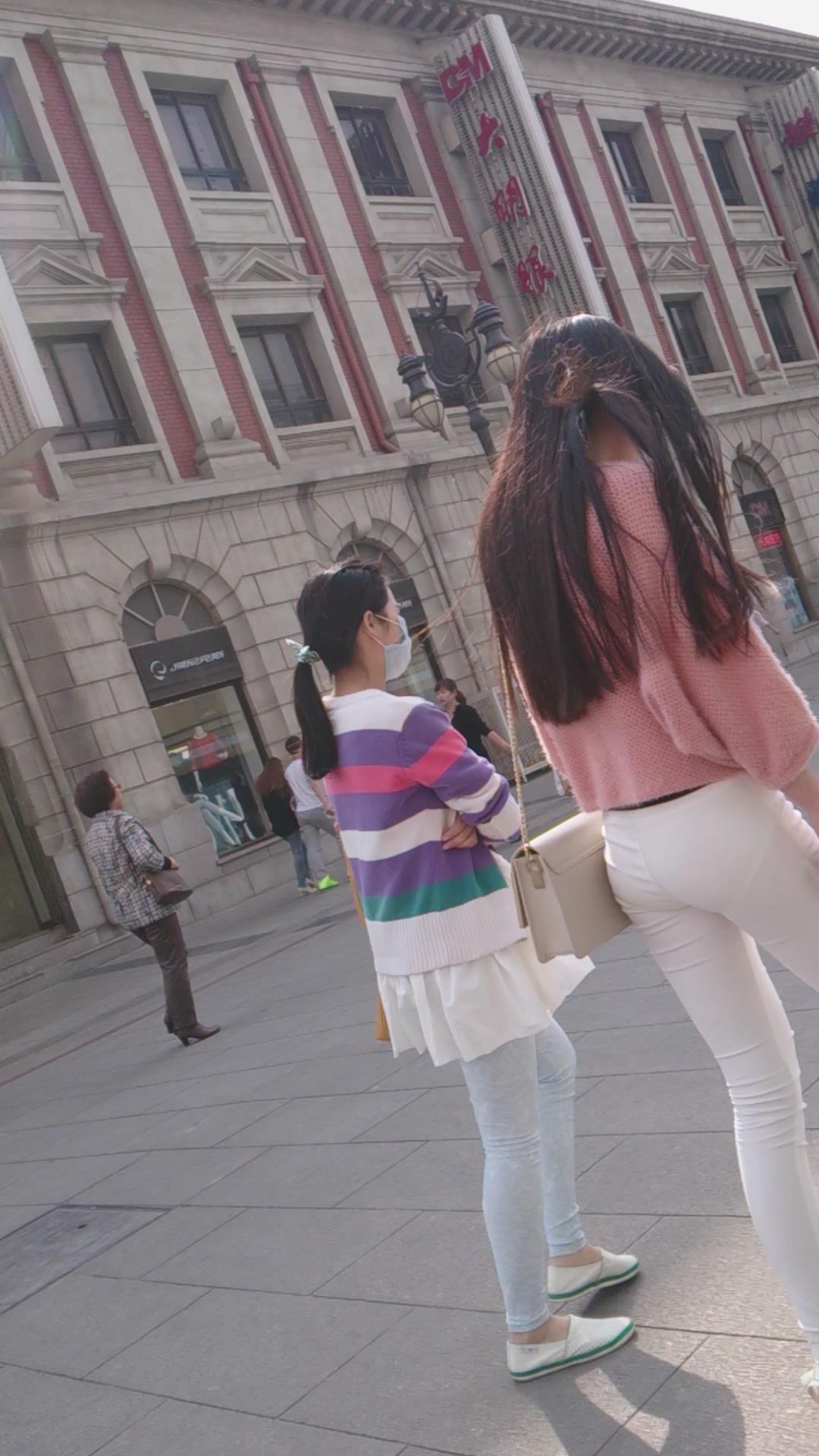 街拍极品粉衣紧身白裤苗条大美女 编号5662