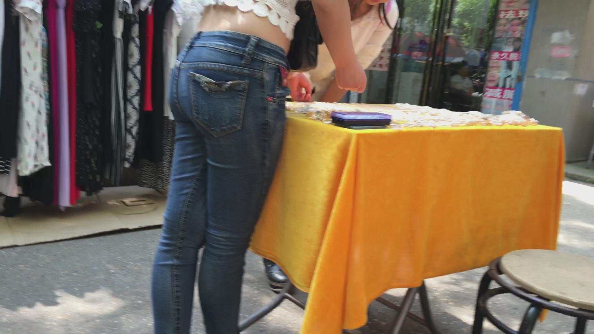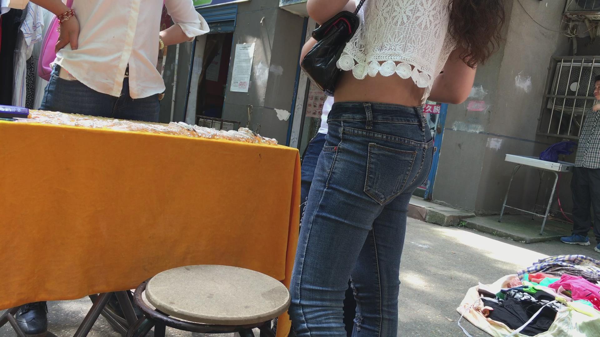 偶遇极品肥臀紧身蓝牛露脐装美女 编号5708