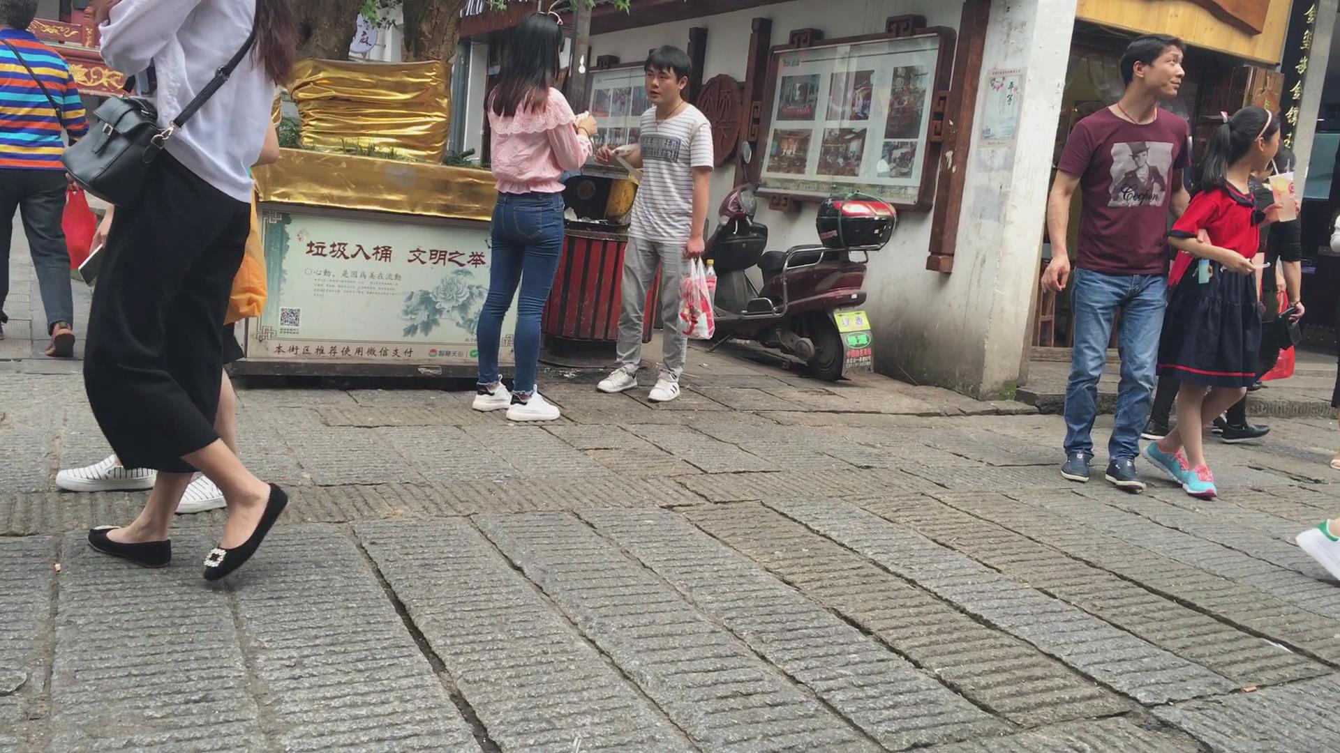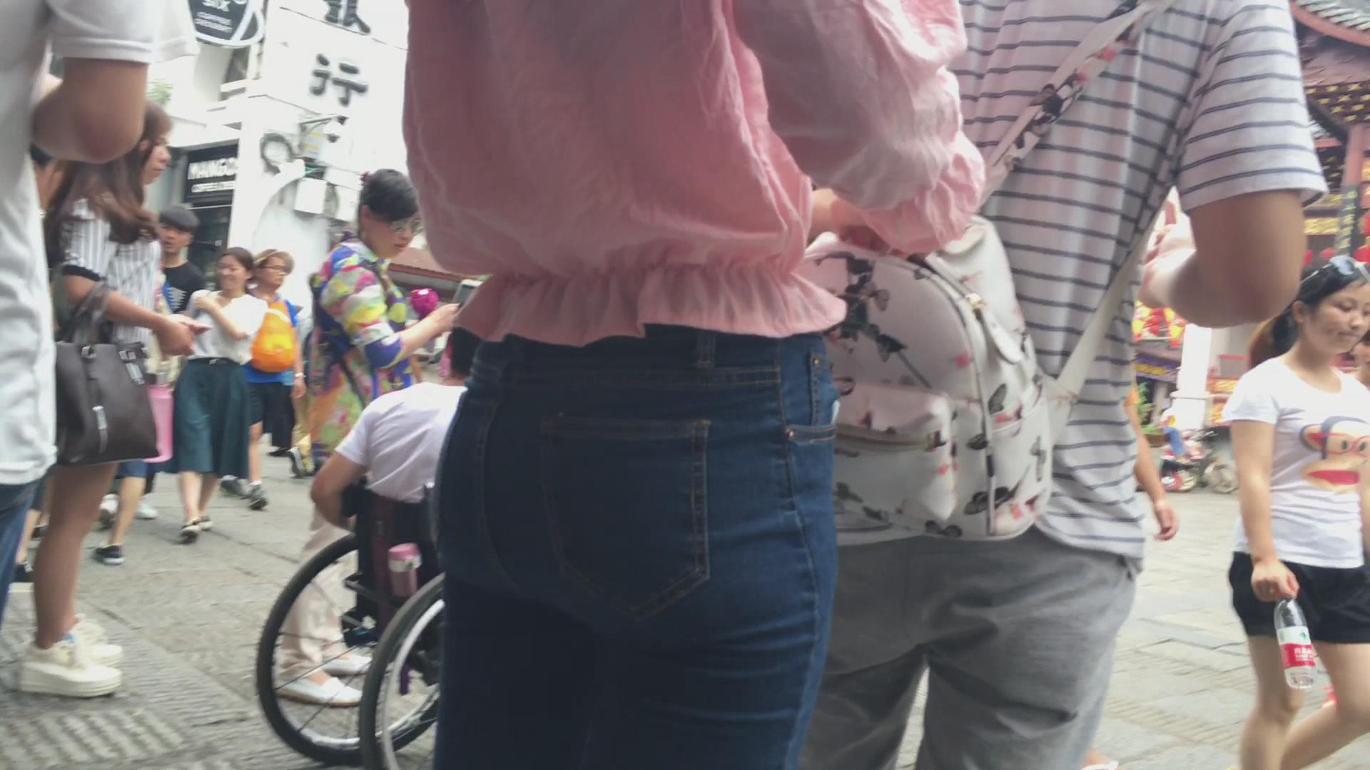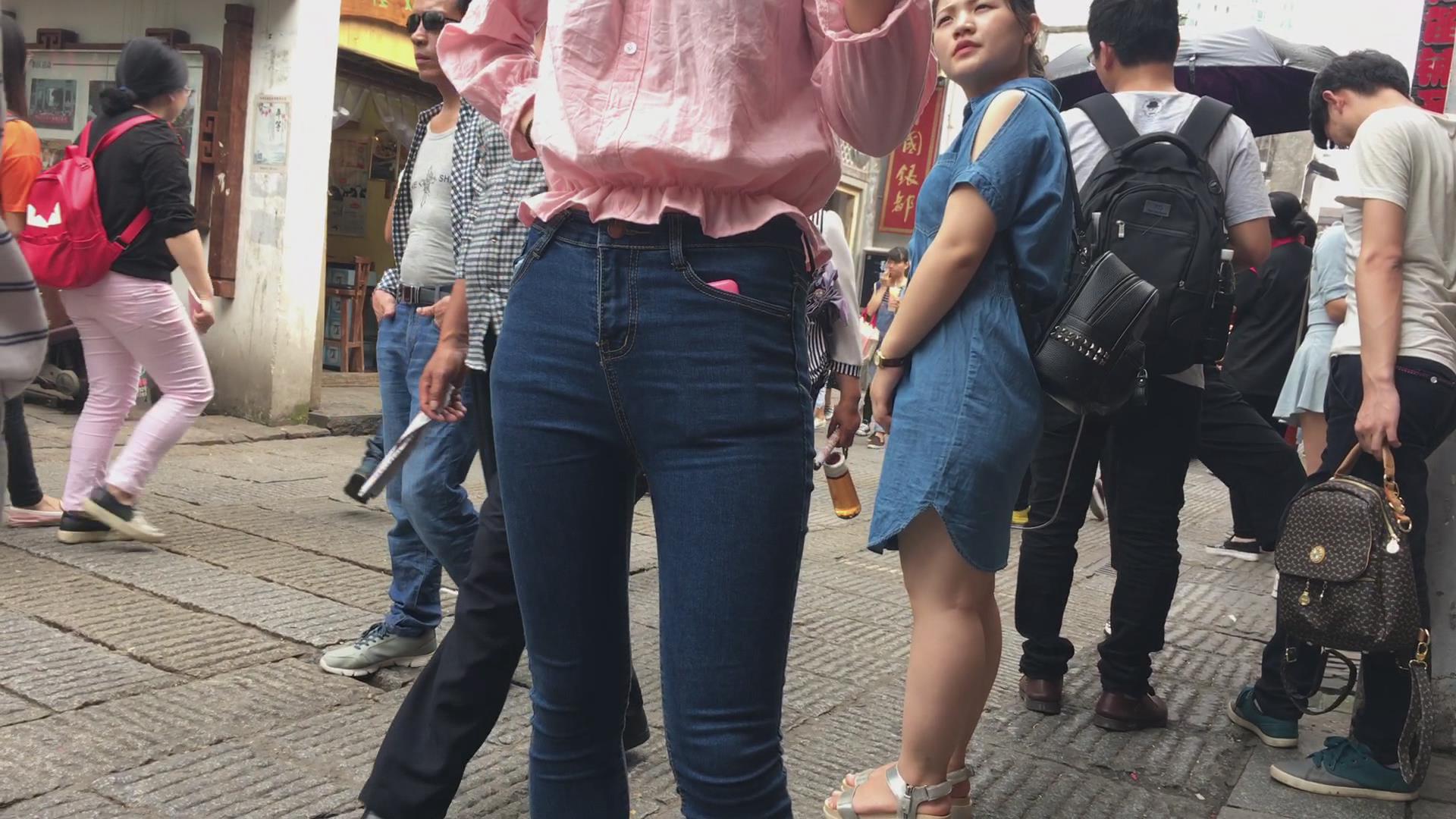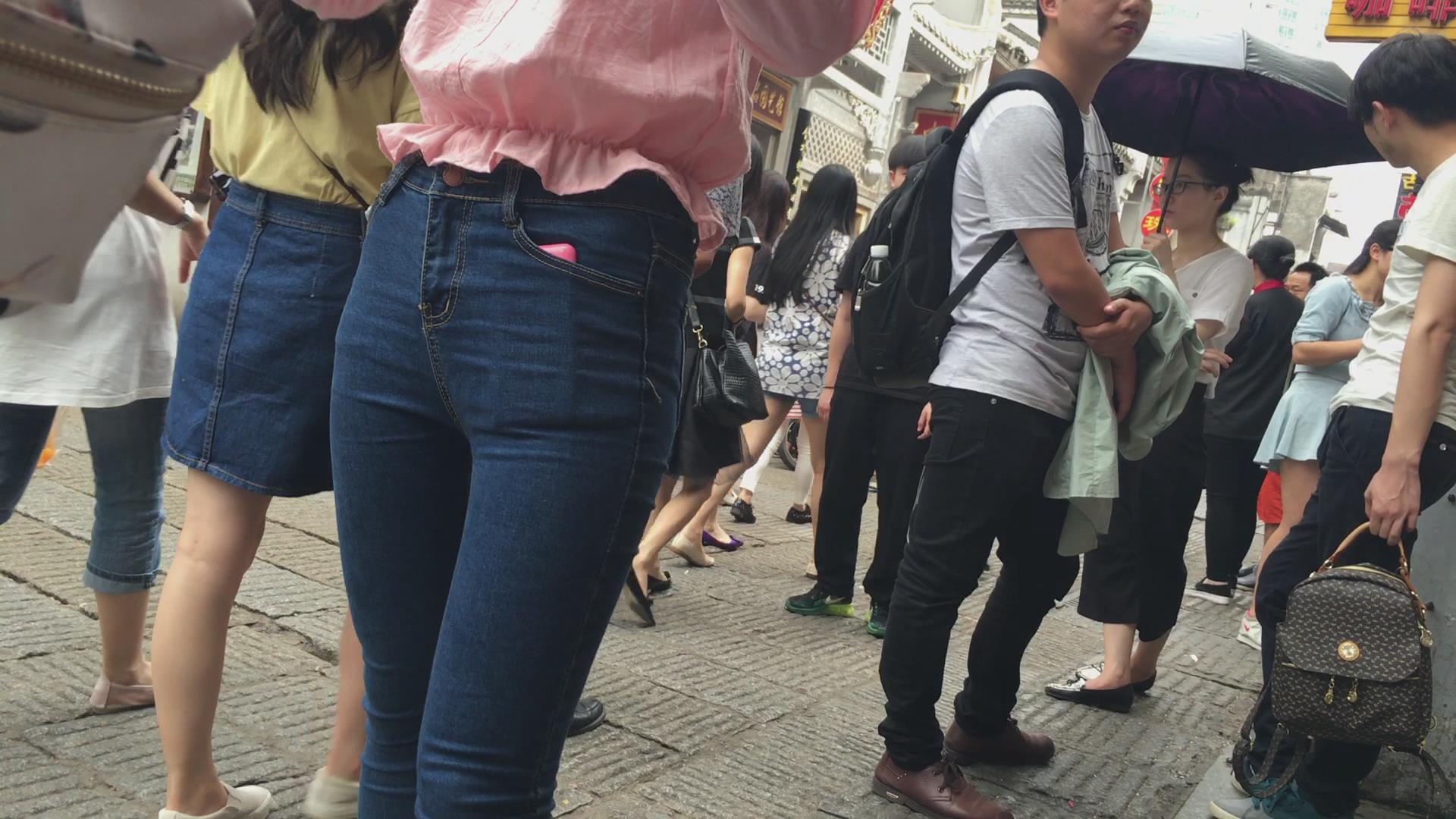 街拍超级紧身美臀美眉,三角区真美 编号5721