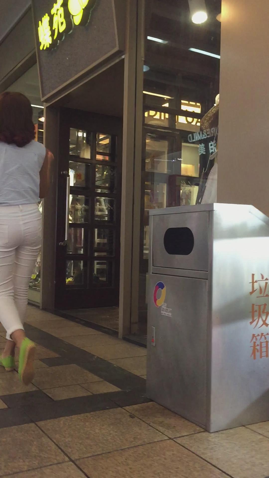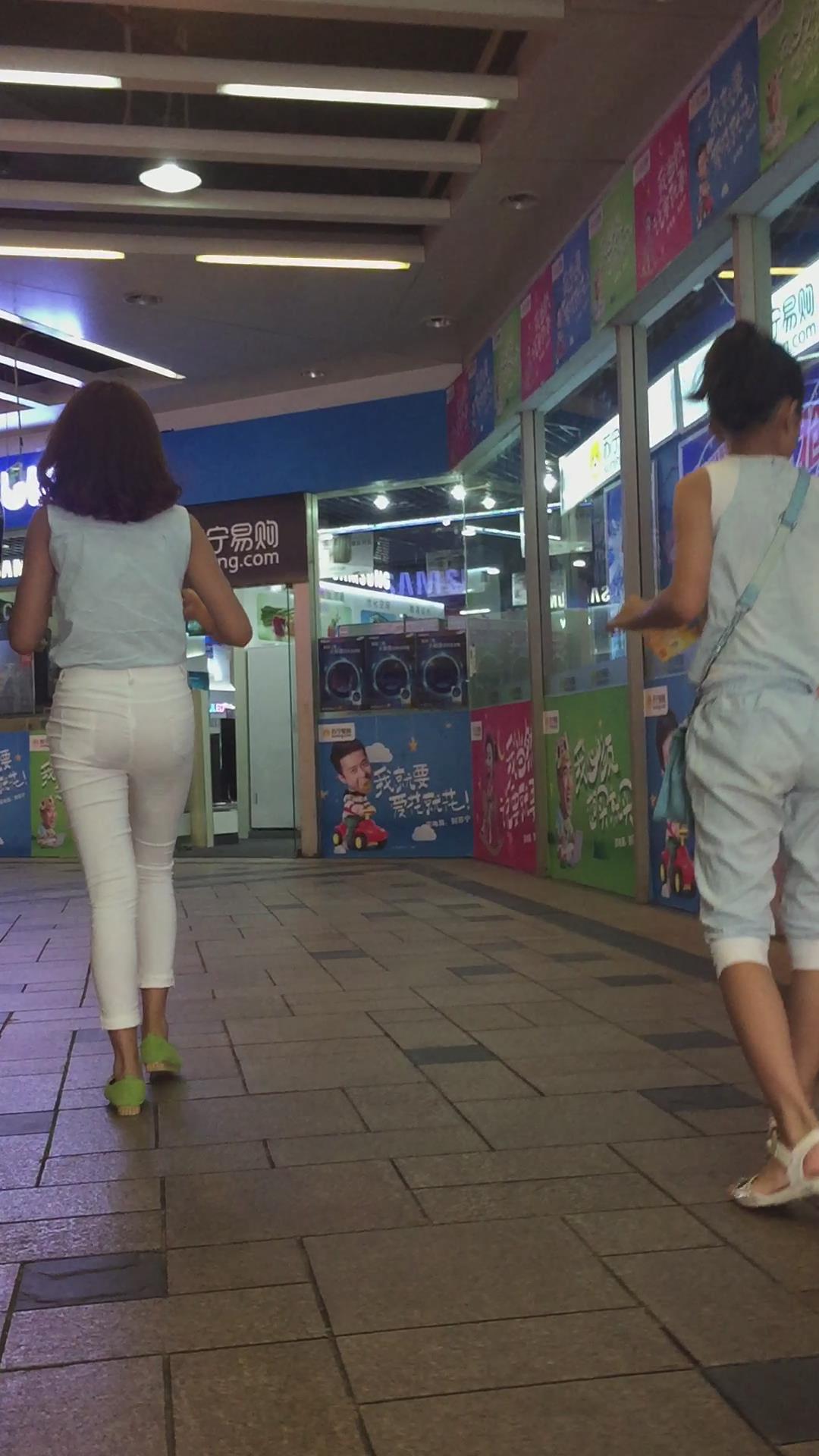 街拍逛商场的紧身白裤女孩 编号6153