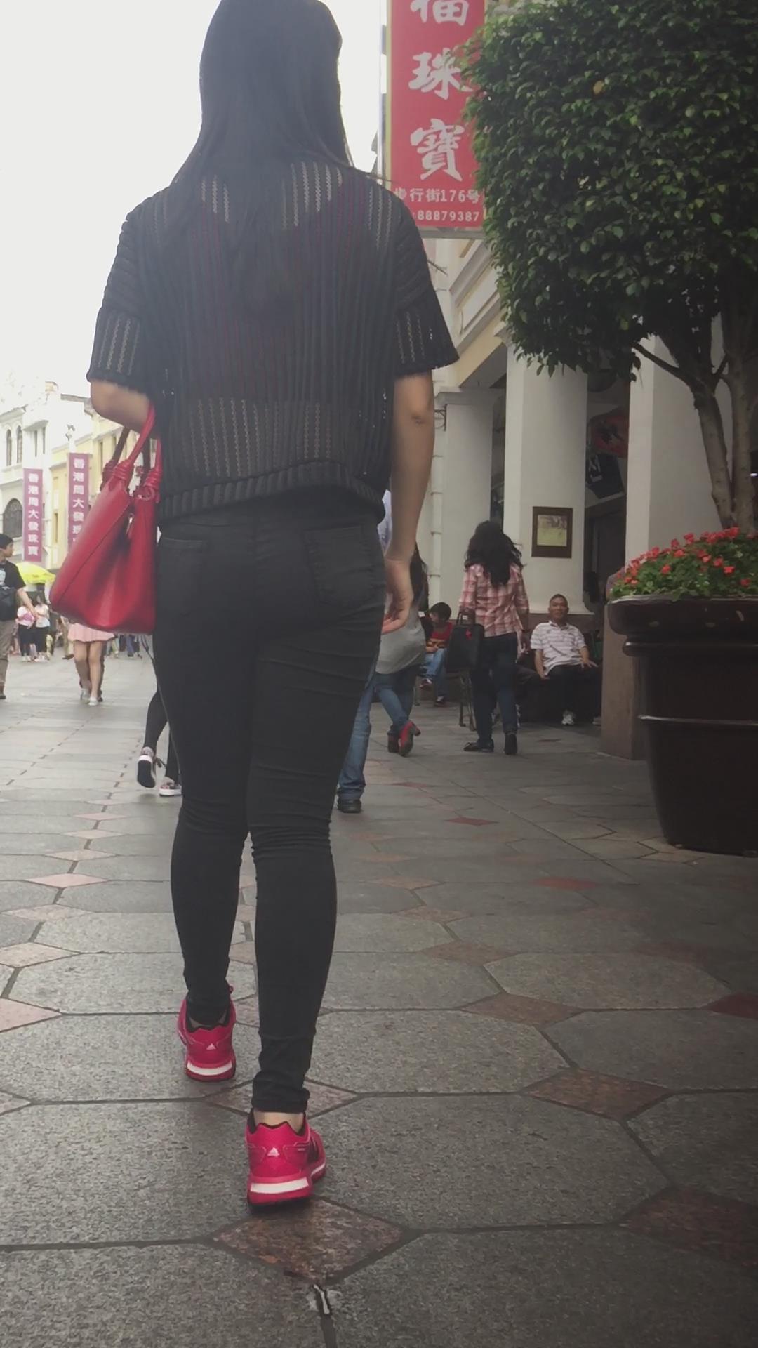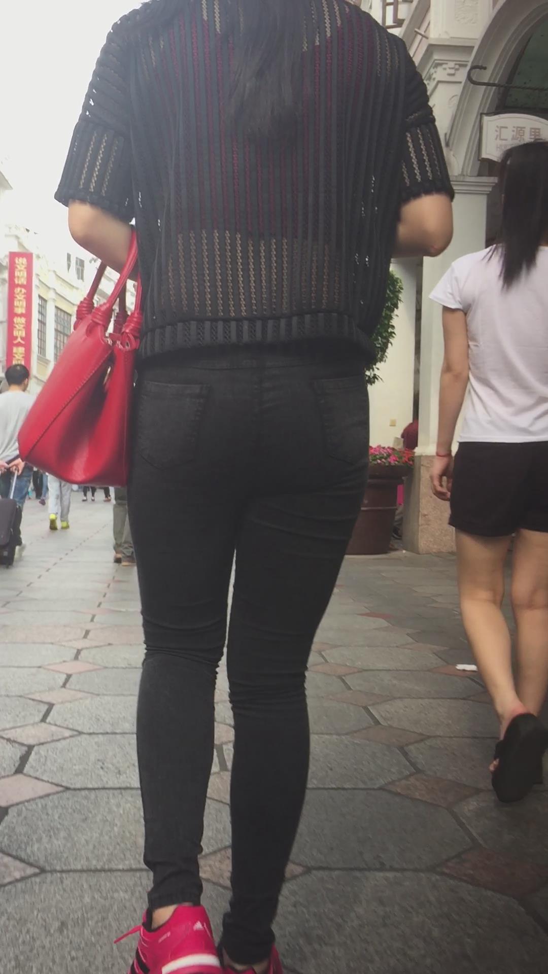 黑色透视装圆臀紧身牛仔裤MM,太紧了 编号5735