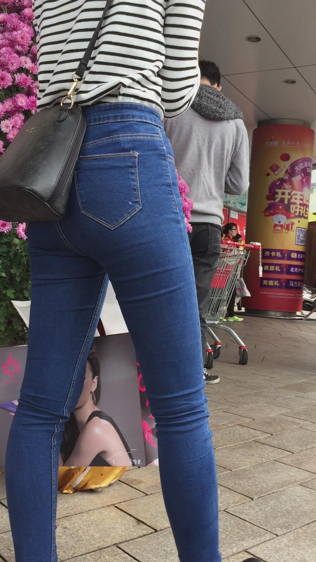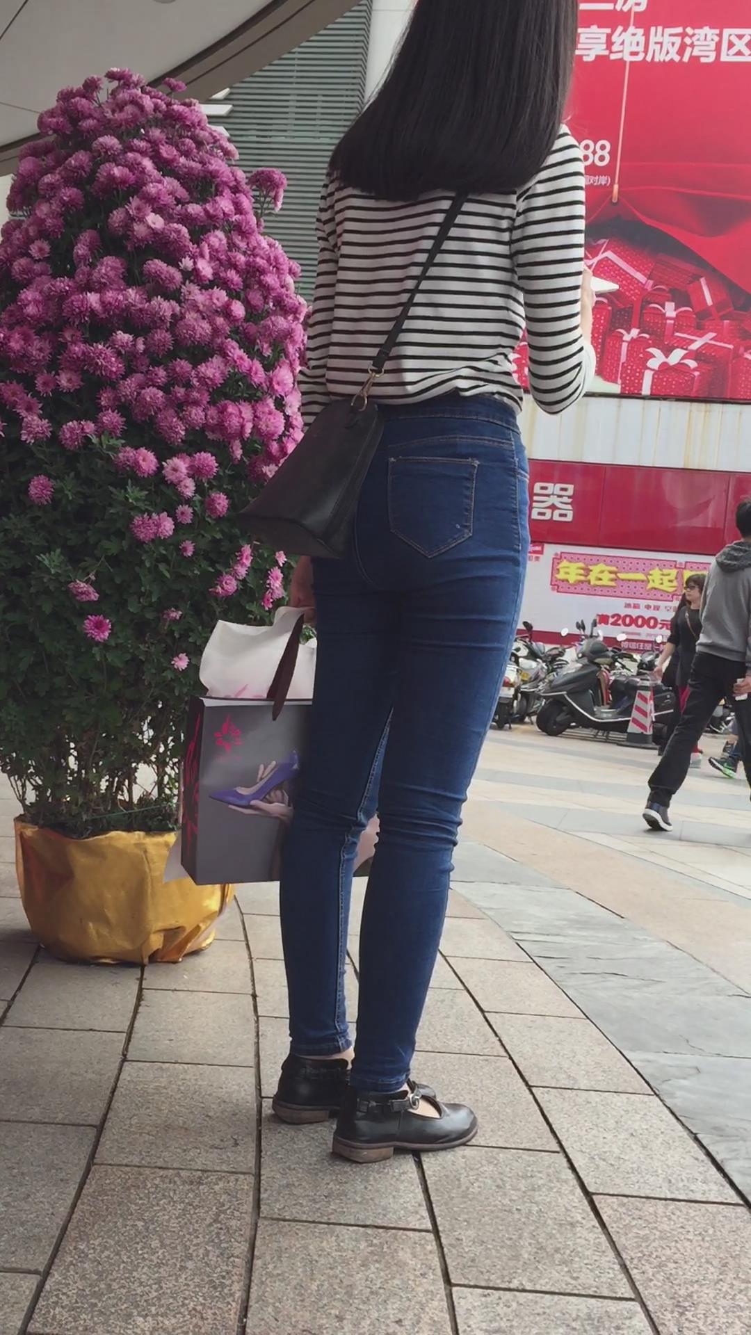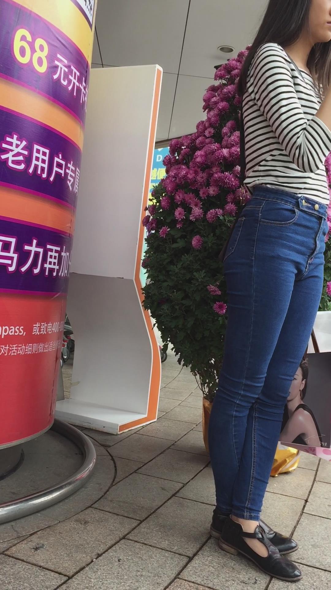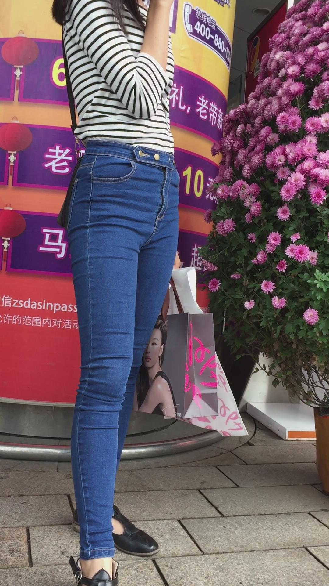 在等人的紧身蓝色牛仔裤小美女,发育很好该有的都有 编号5747