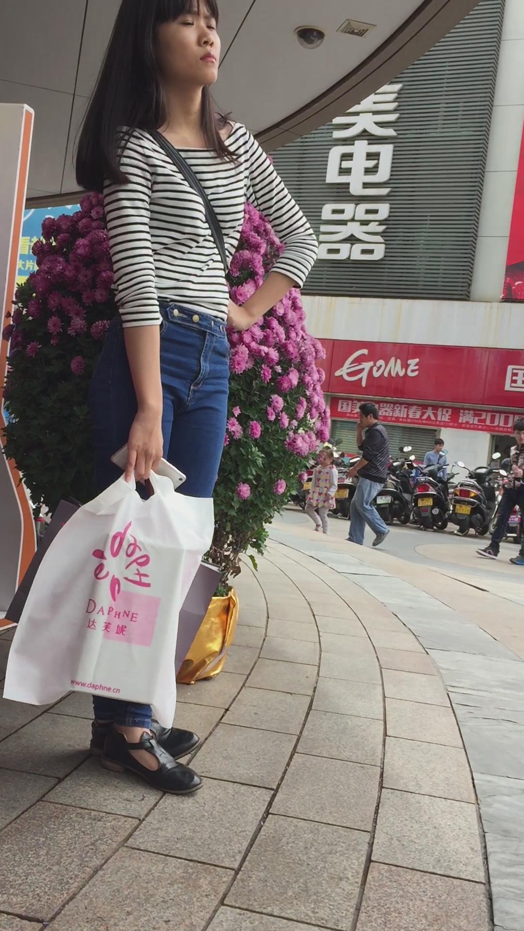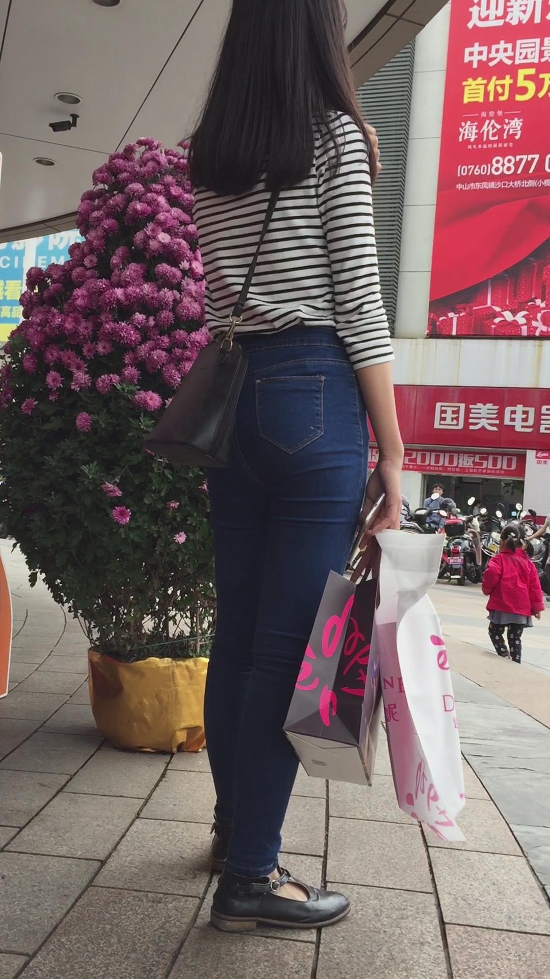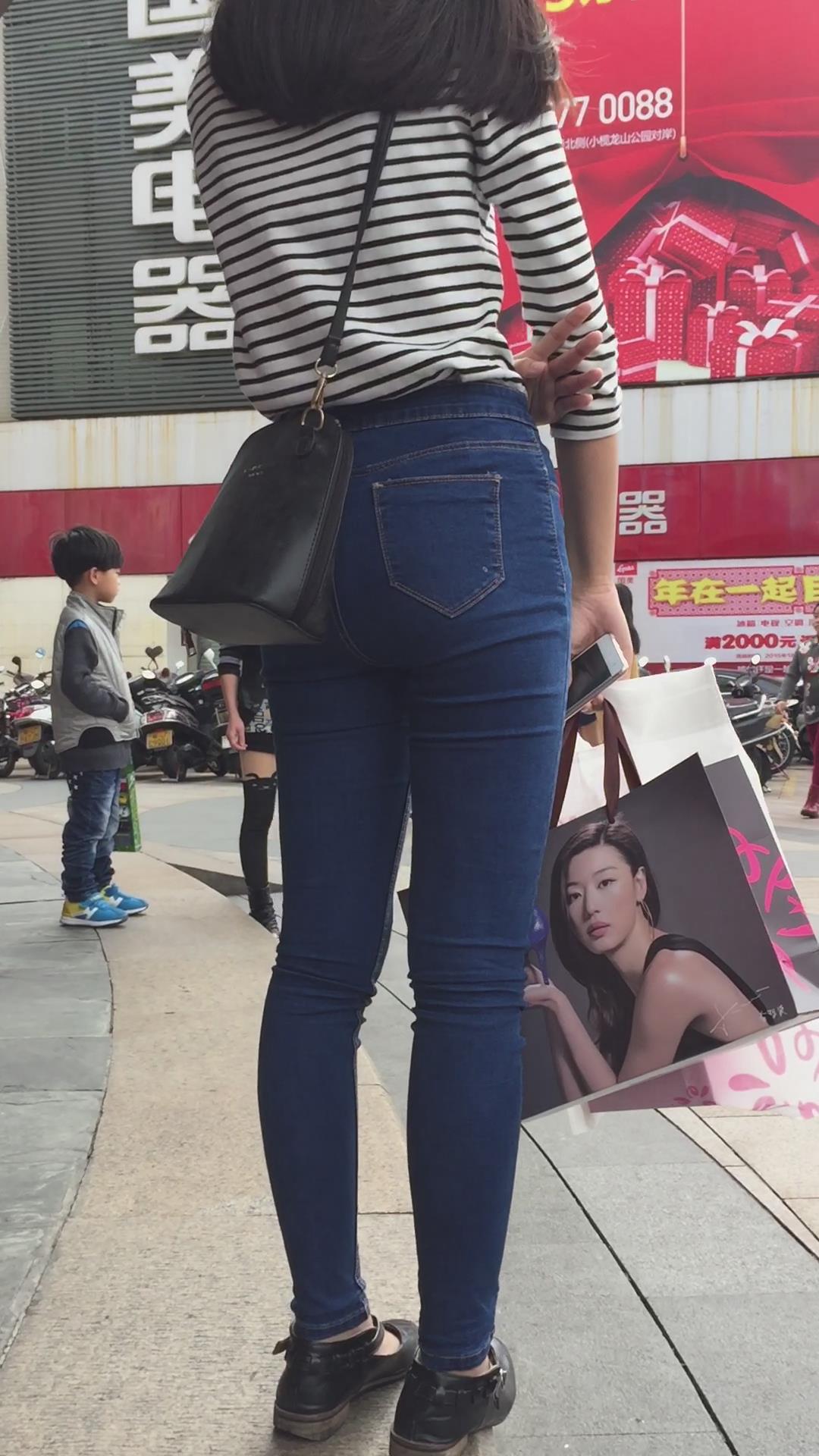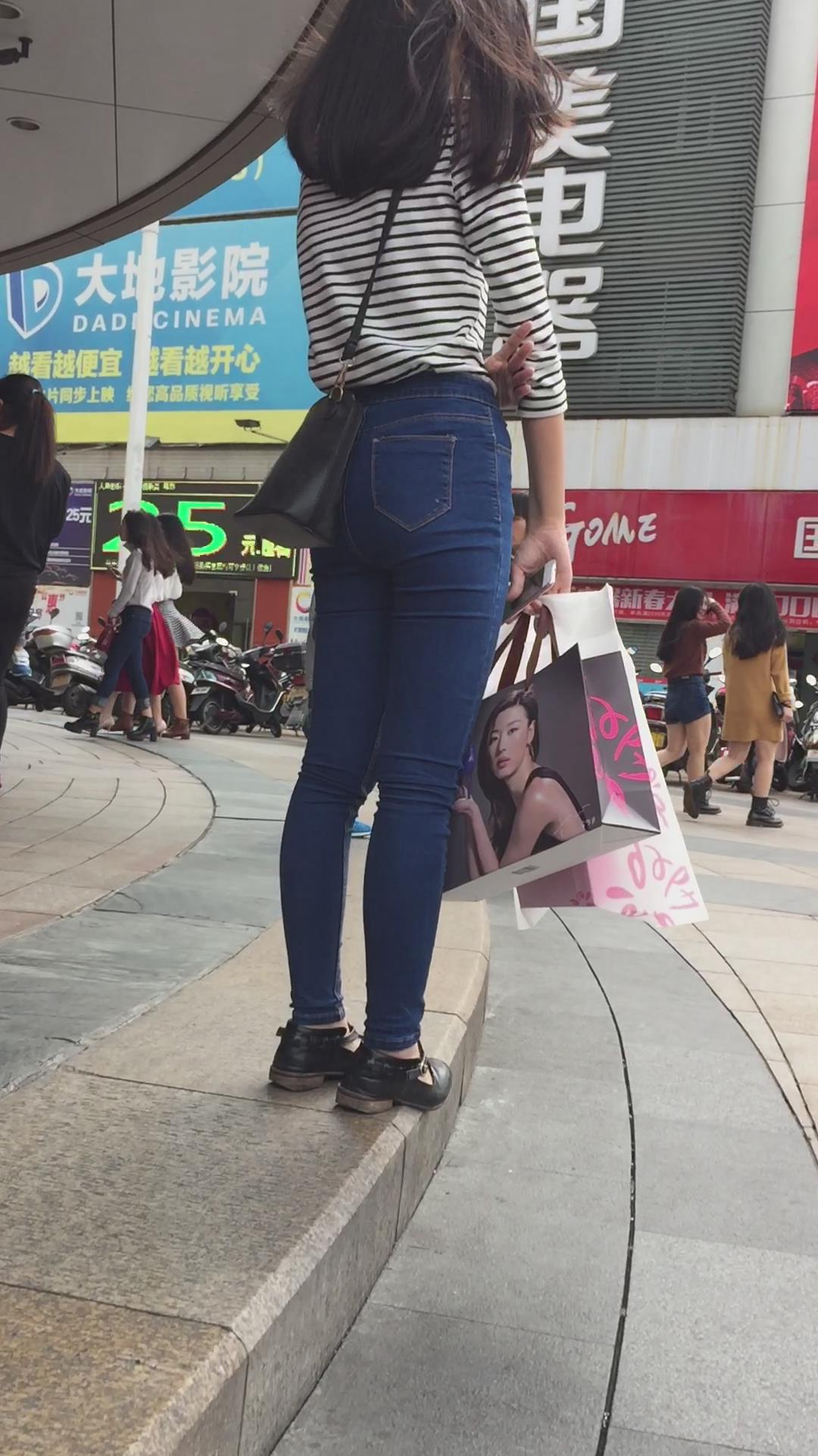 在等人的紧身蓝色牛仔裤小美女,发育很好该有的都有 编号5747