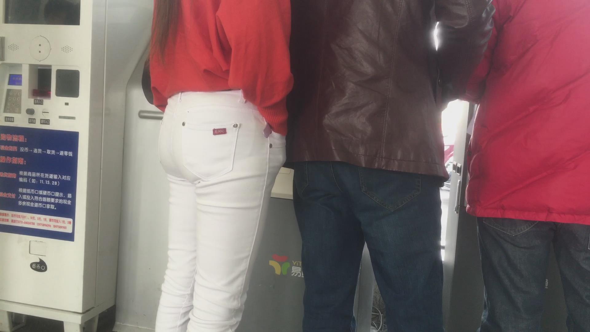 ATM机前取款的白色紧身圆臀小妹妹 编号5756