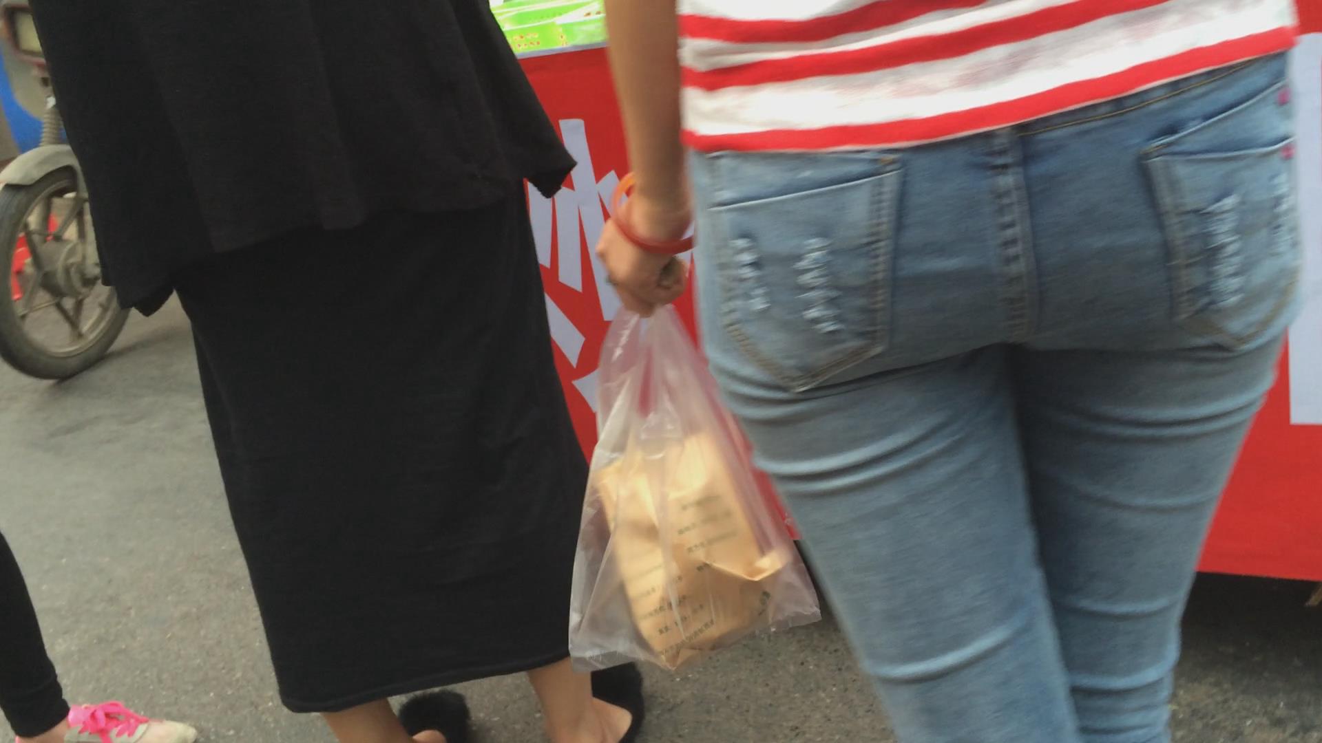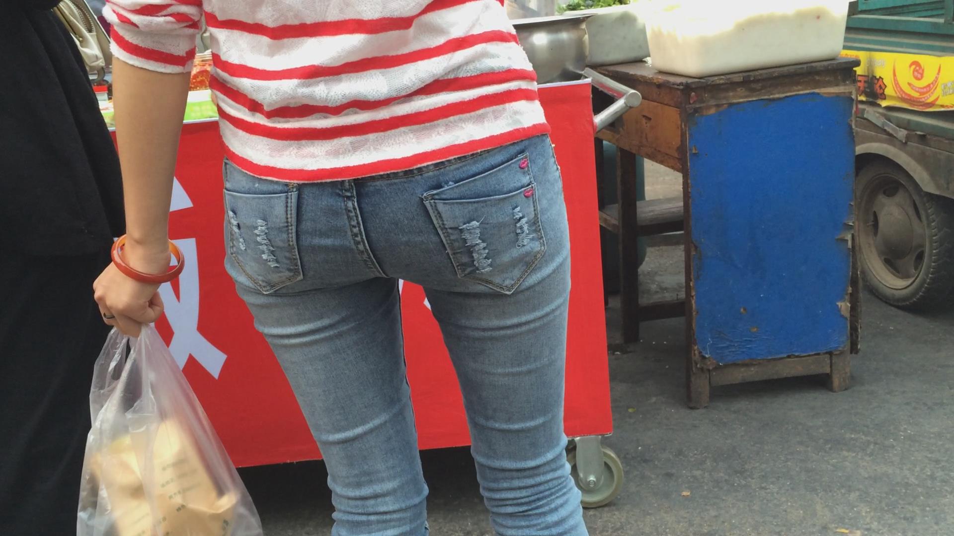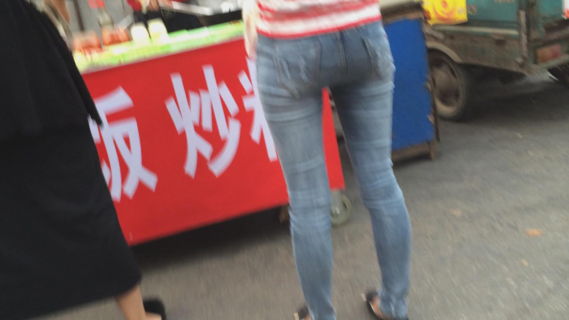 紧身细腿苗条牛仔裤美眉买炒粉吃 编号5769