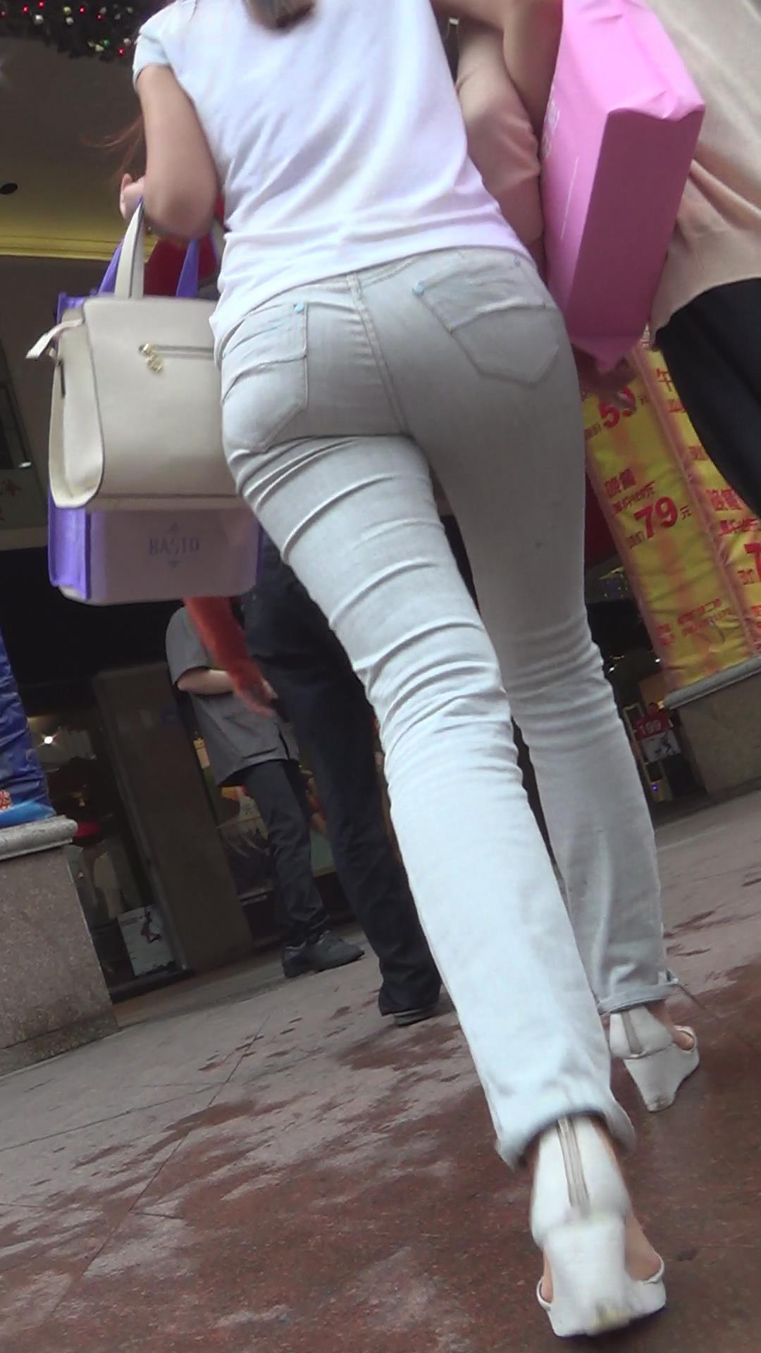 街拍紧身牛仔裤白T恤高挑美女姐姐 编号5791