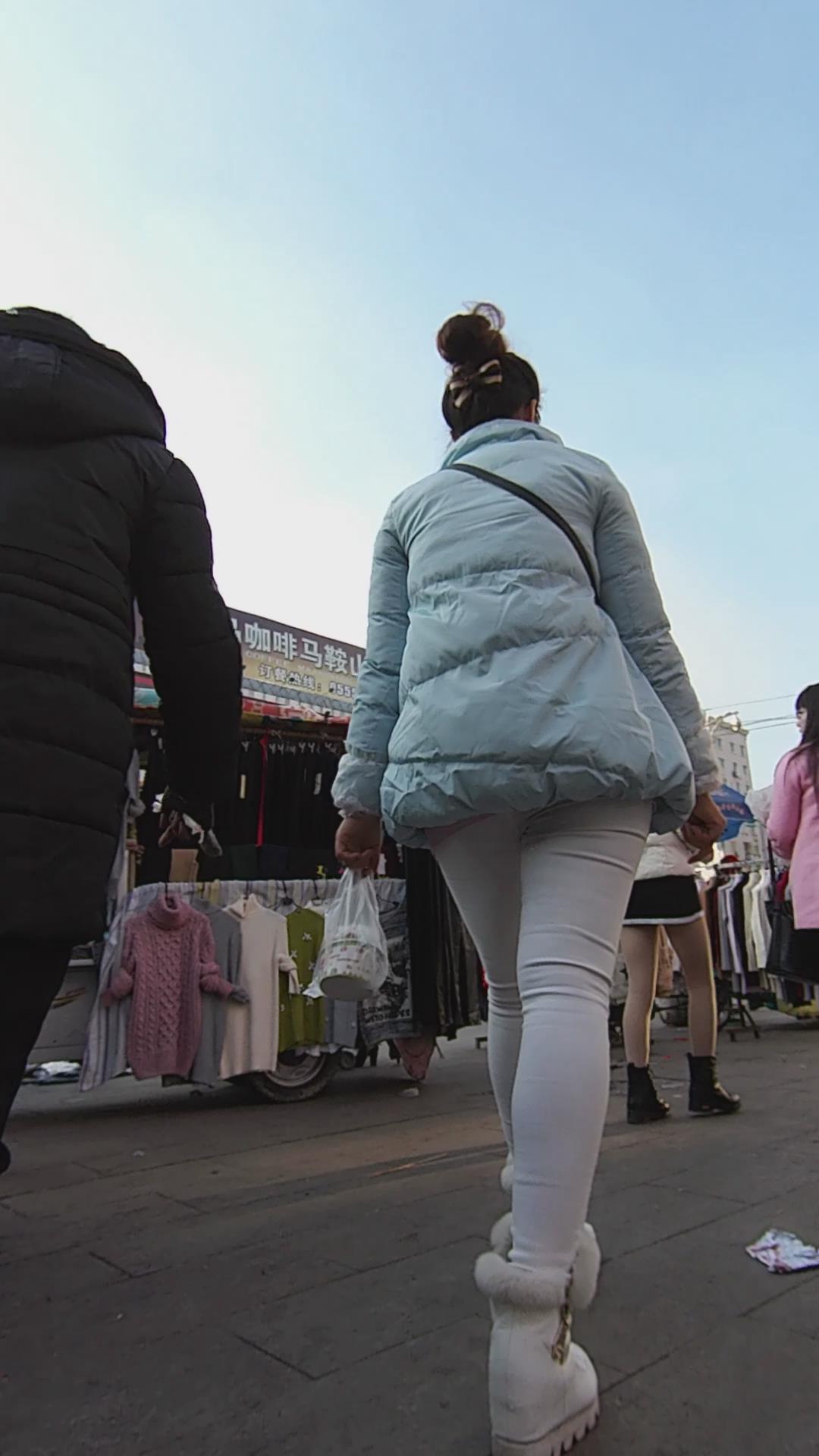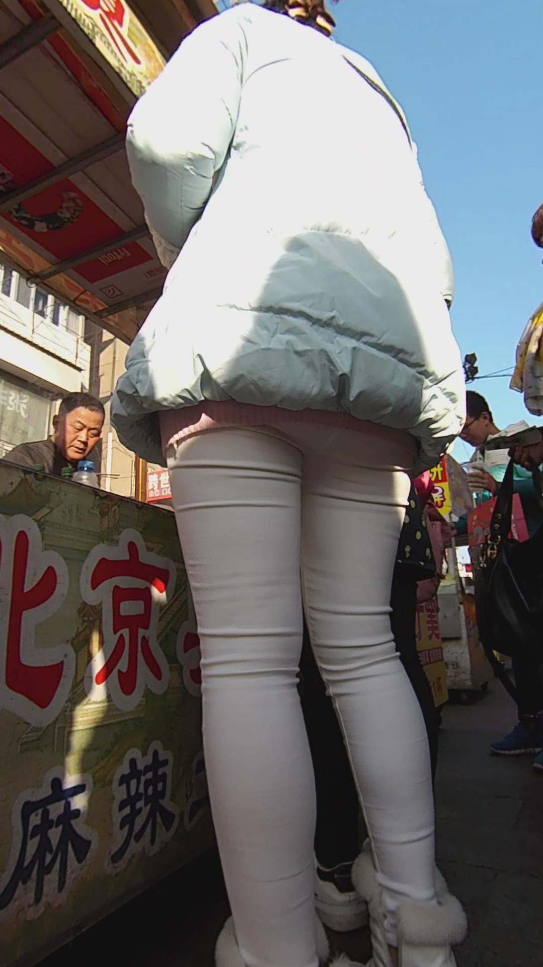 带儿子出门买小吃的紧身白裤年轻妈妈 编号5833