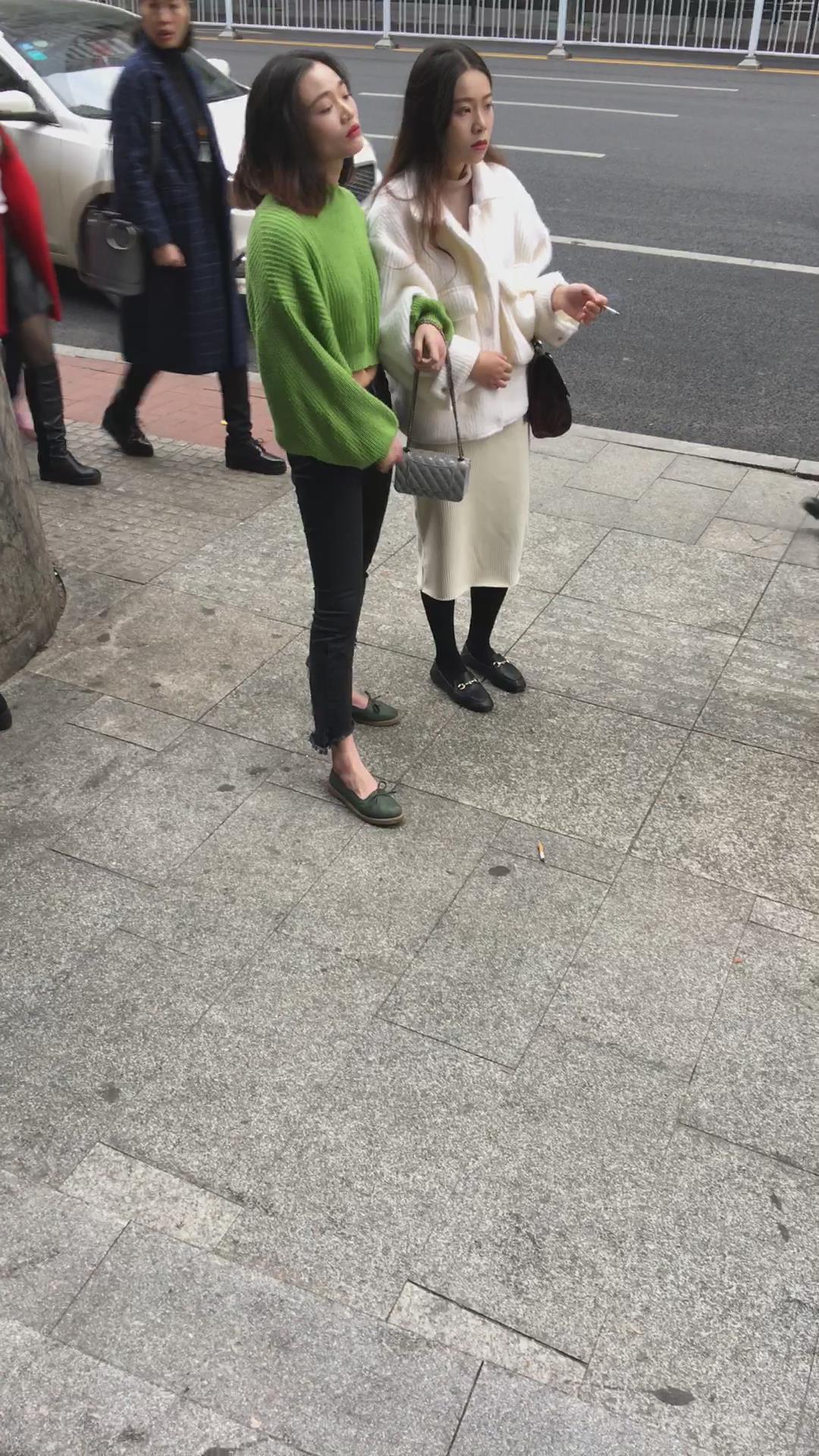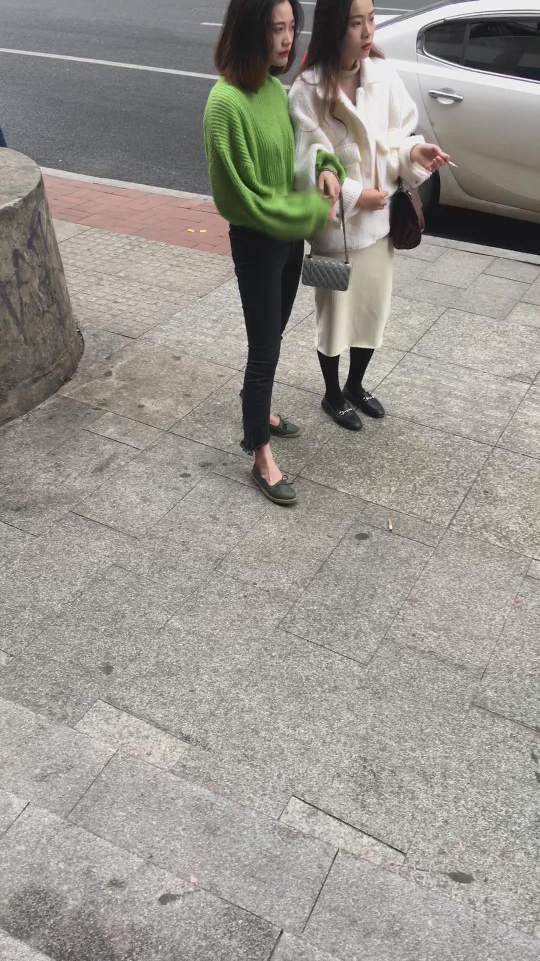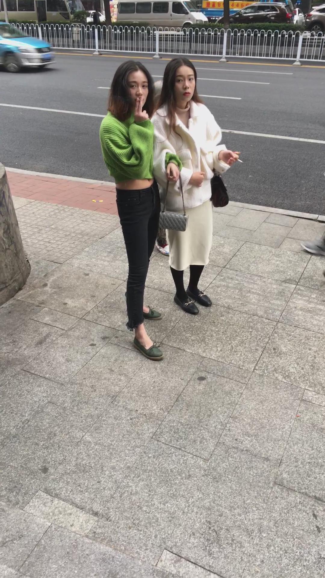街拍路边抽烟的两位美女小姐姐 编号5841