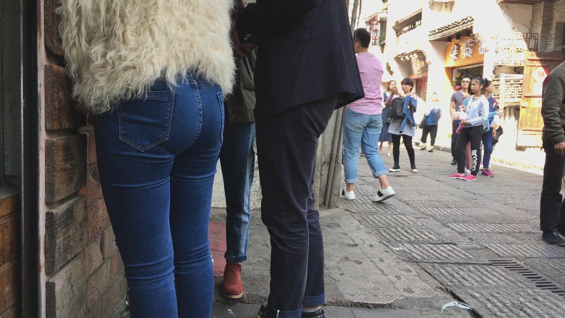 街拍紧到令人窒息的蓝牛丰臀妹子 编号5844