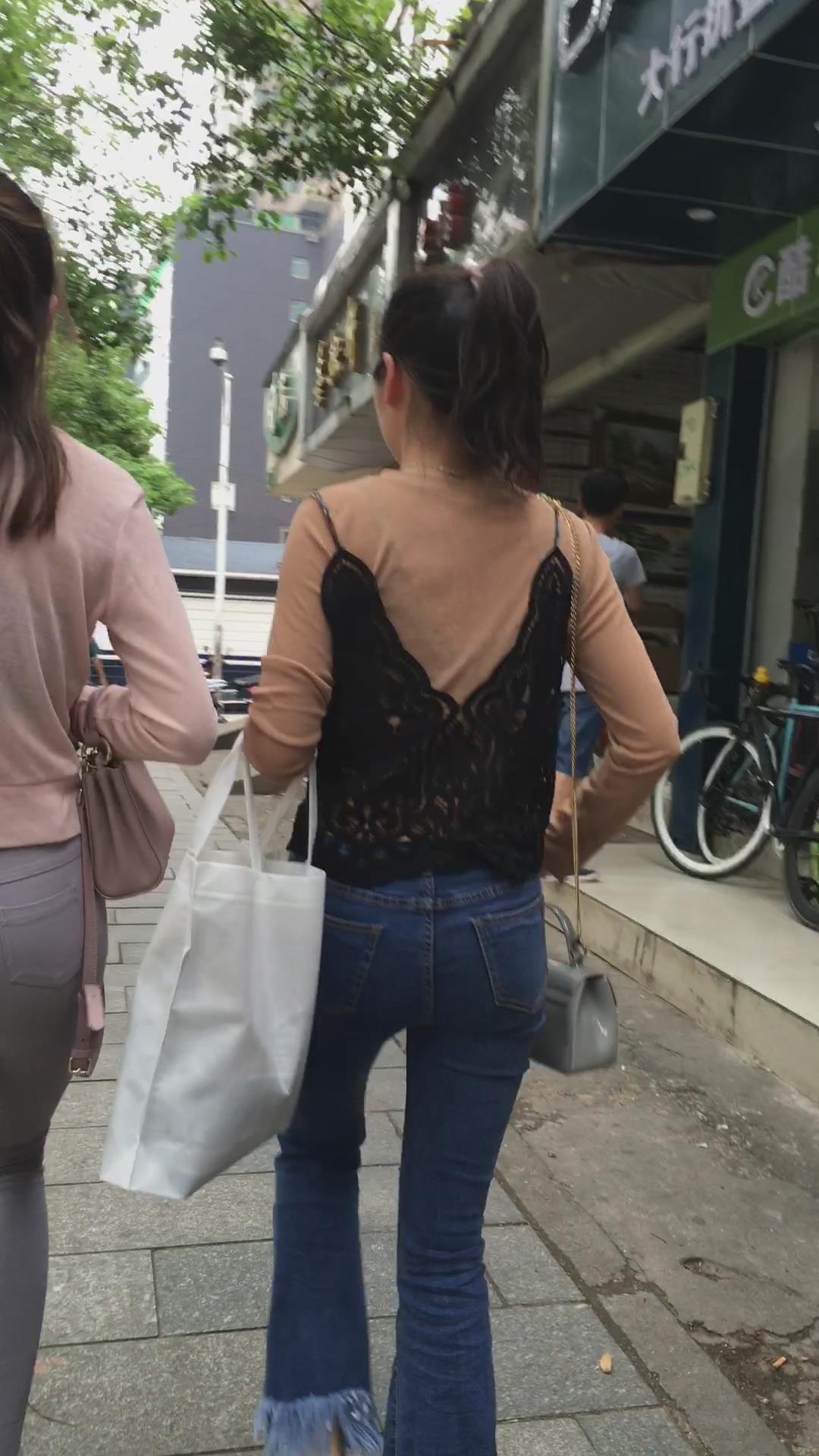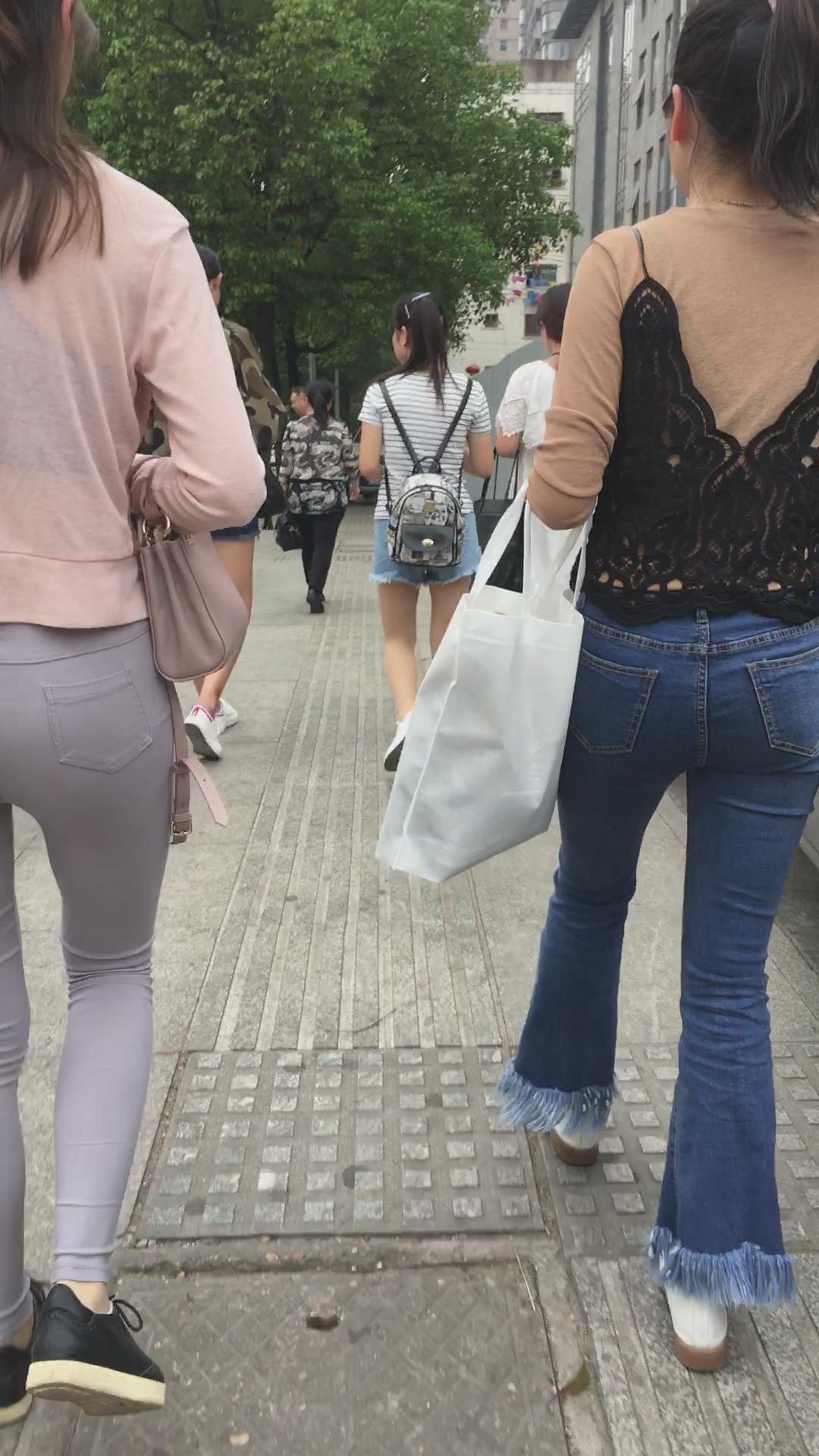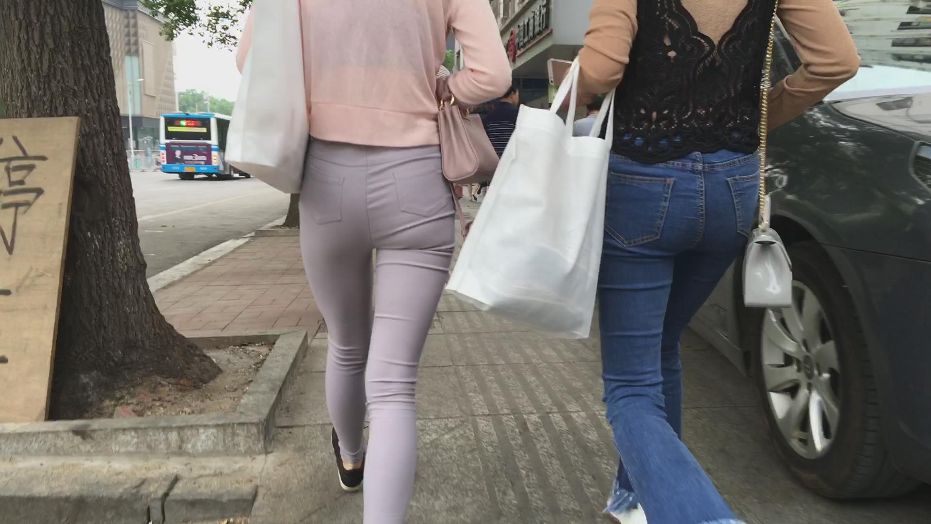 超美紧身苗条小美女跟好闺蜜边走边聊 编号5847