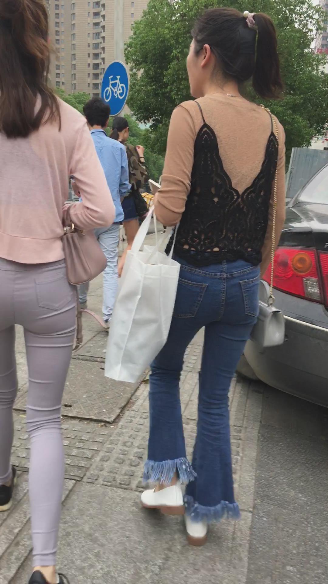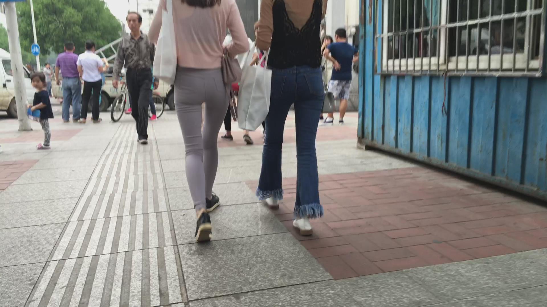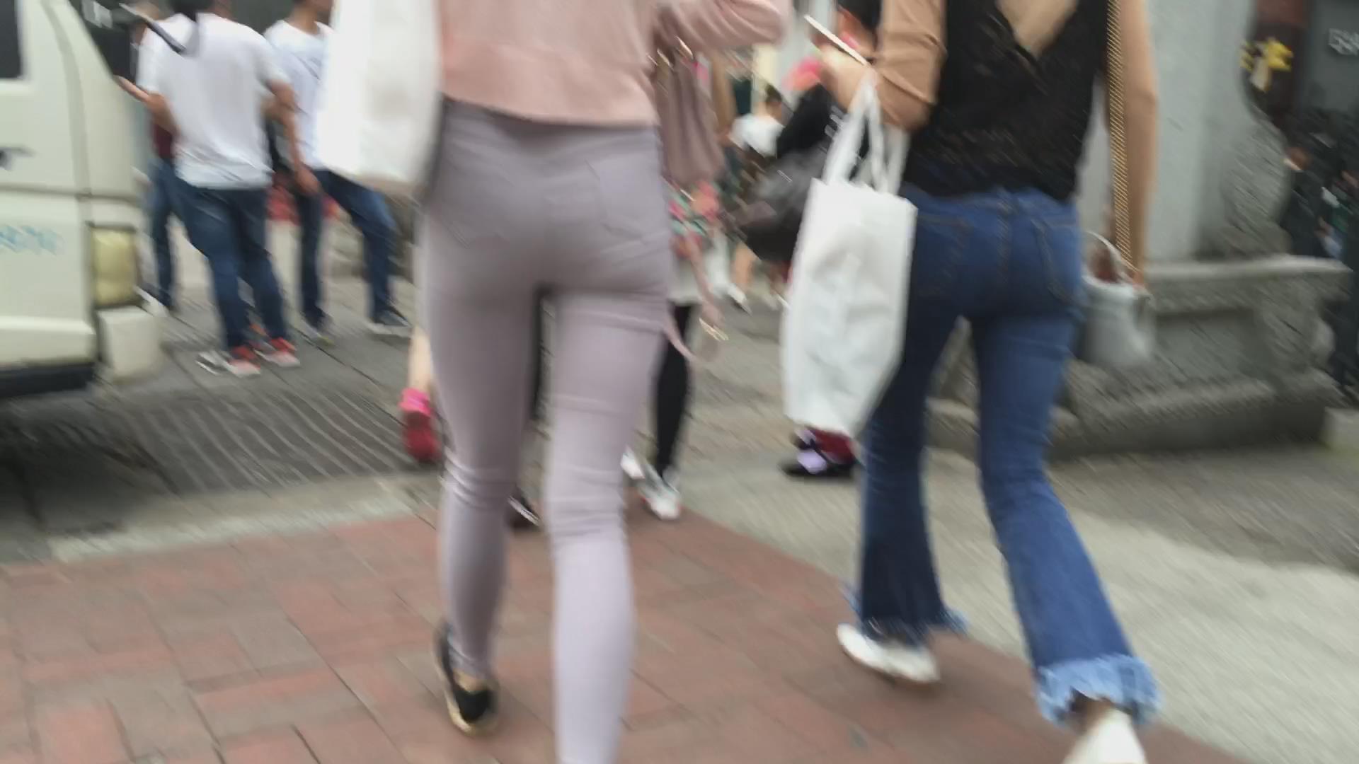 超美紧身苗条小美女跟好闺蜜边走边聊 编号5847
