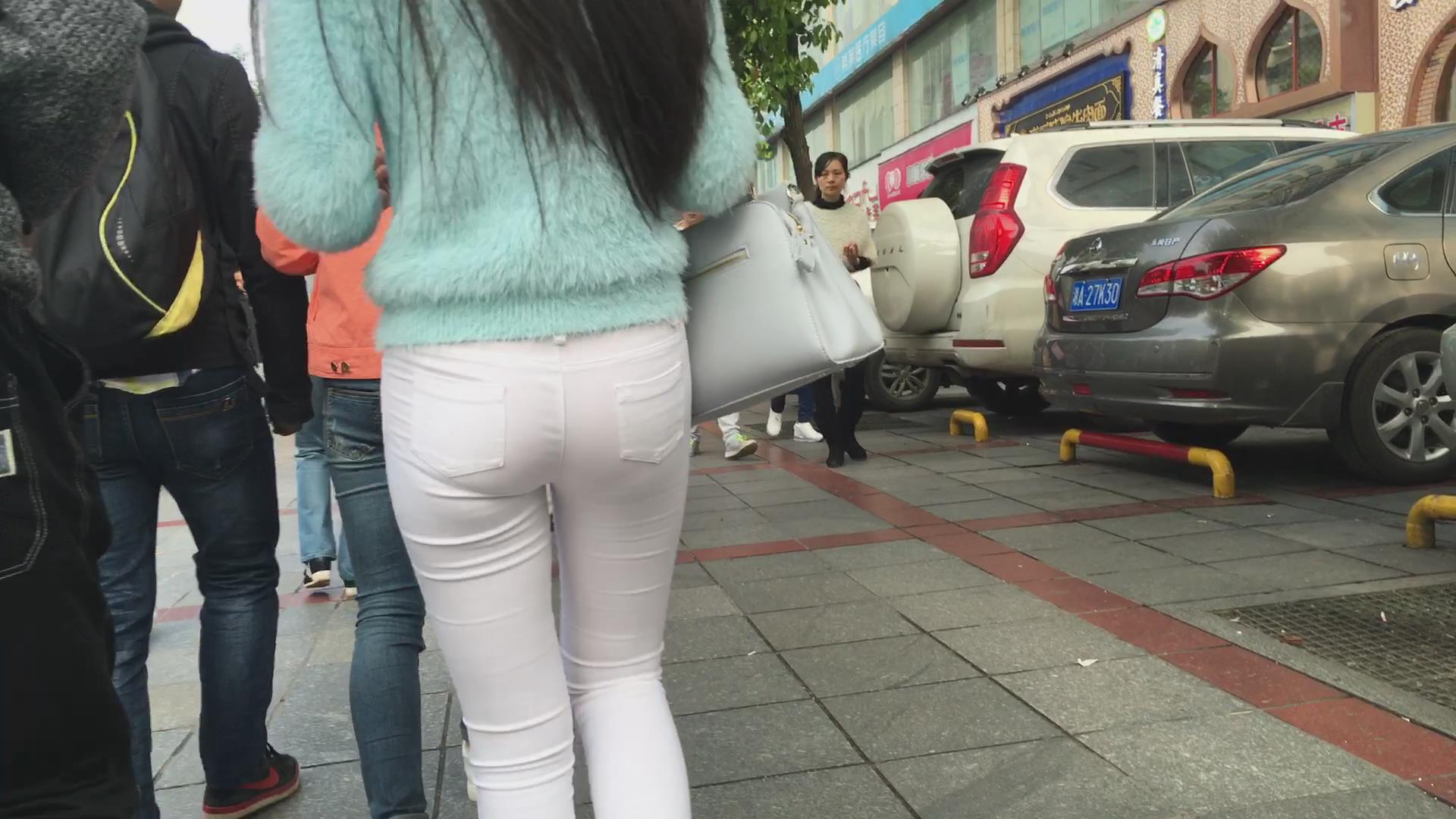 跟拍超级紧身透明白裤美眉,内内清晰可见 编号5853