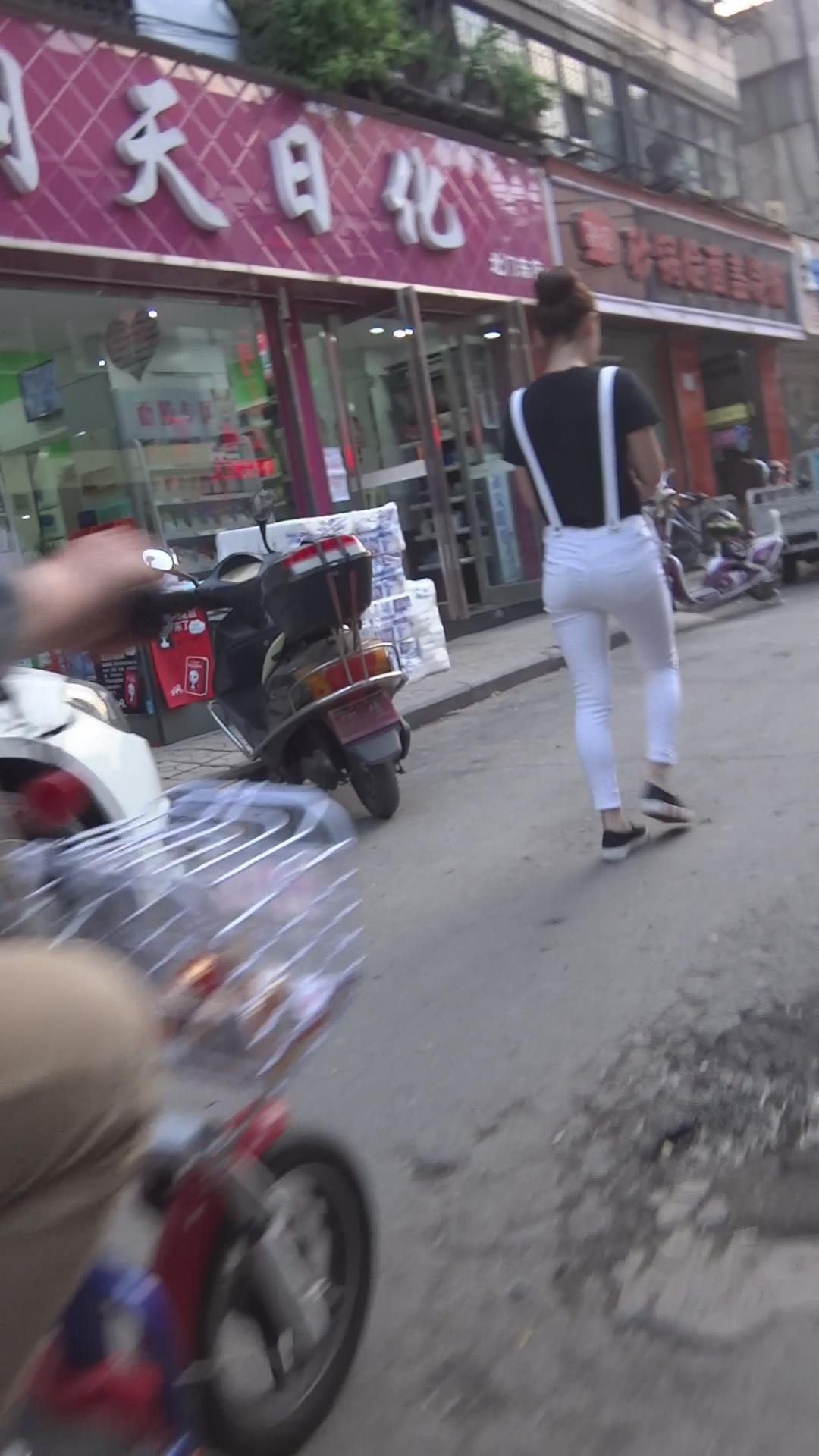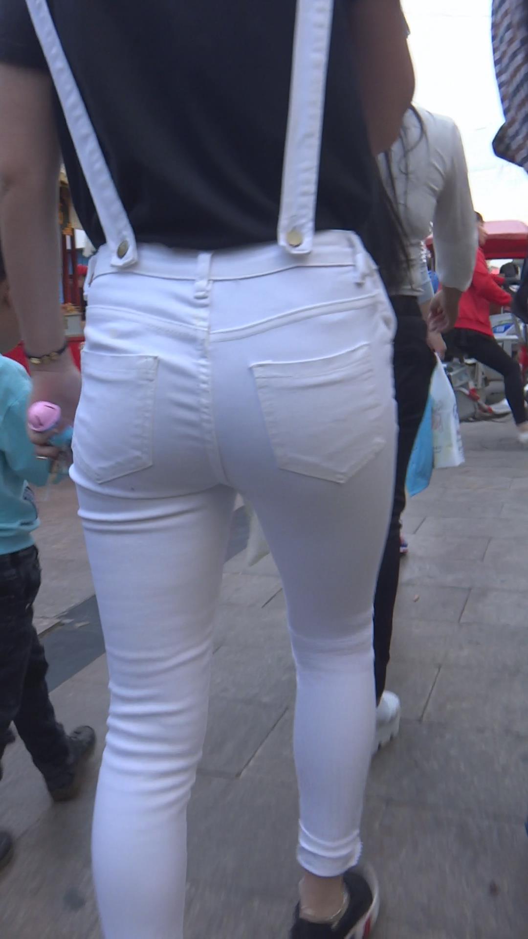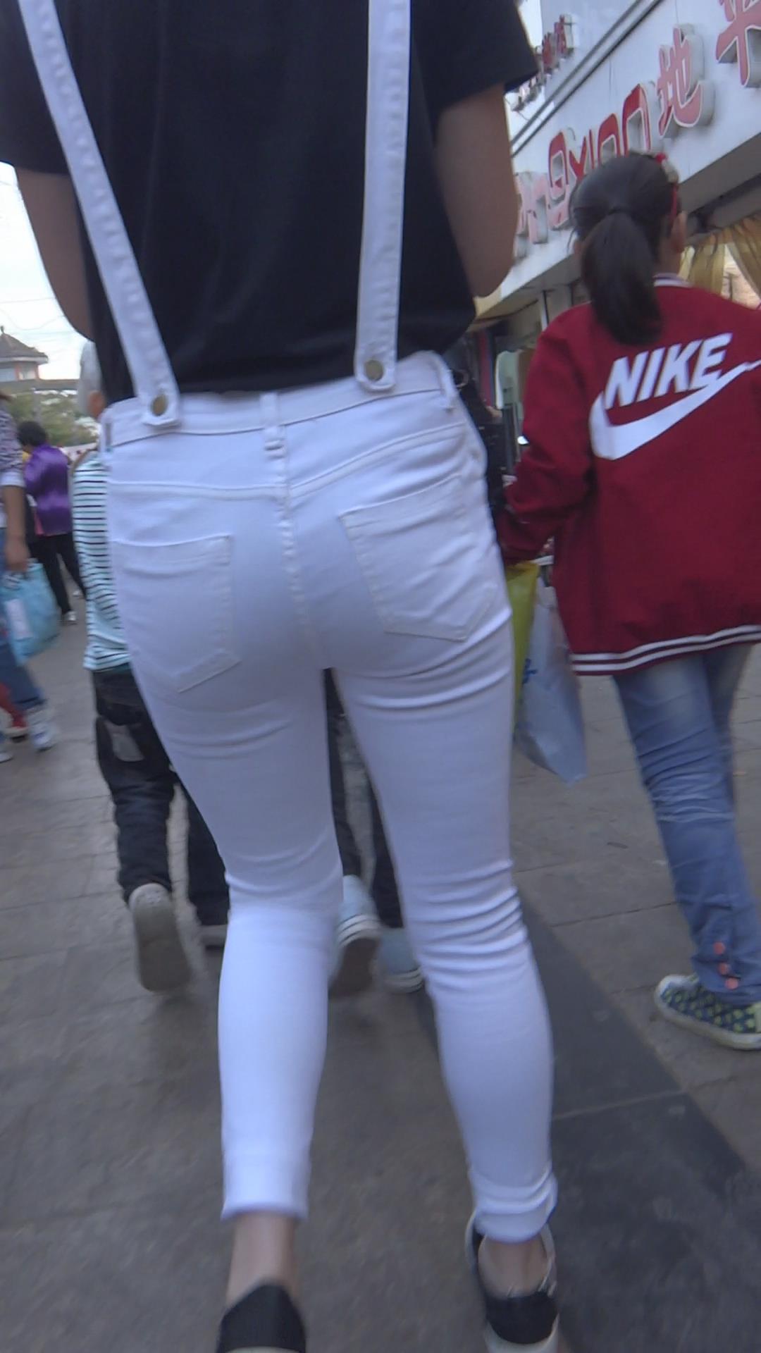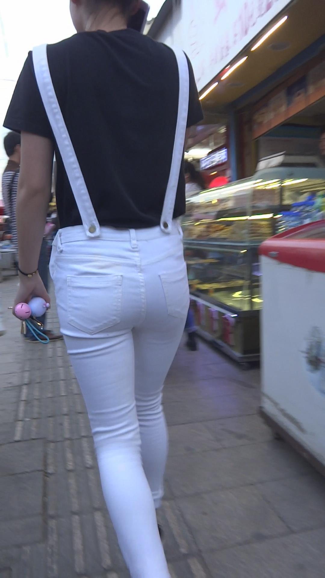 街拍紧身白裤小清新学妹 编号5863