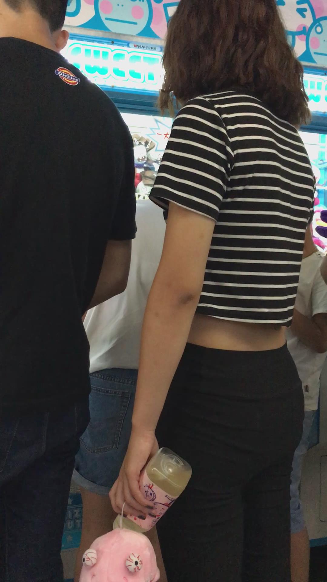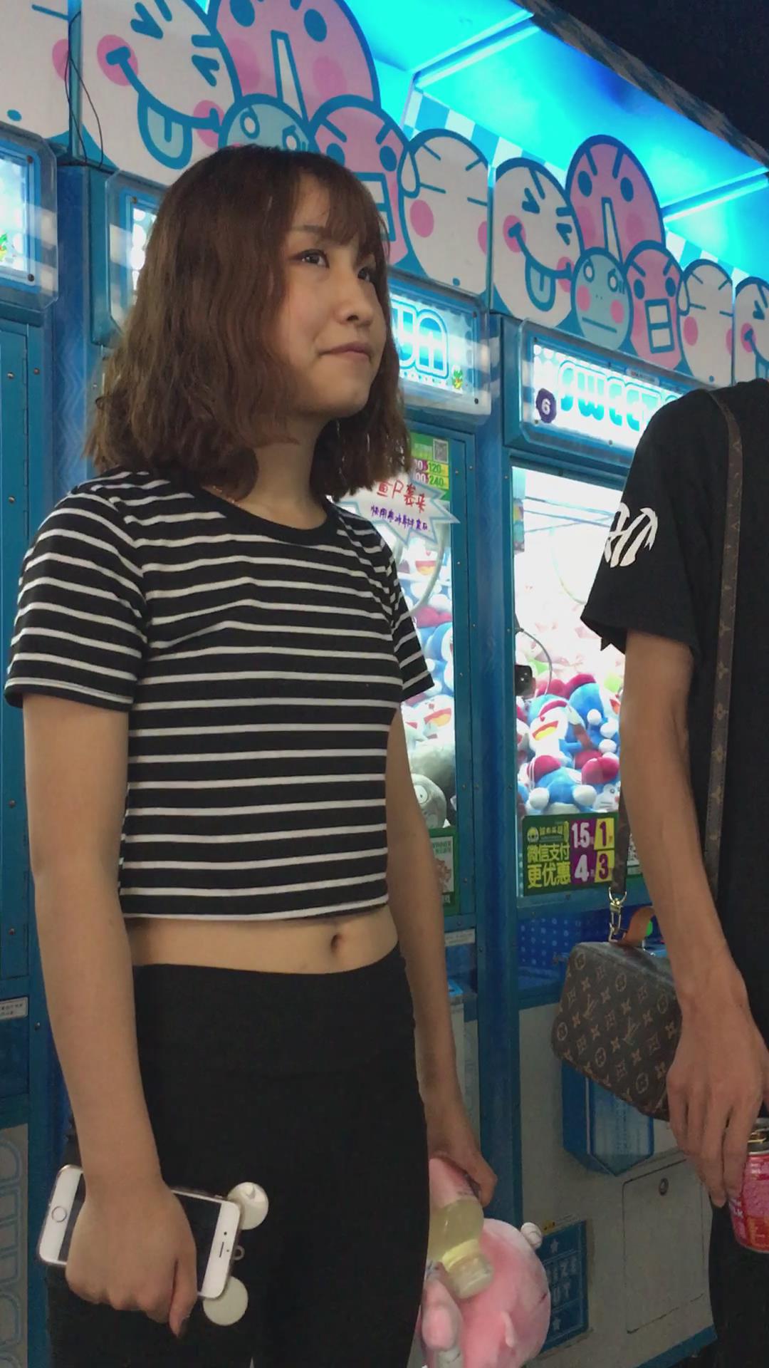夹到娃娃挺开心的露脐清秀女孩 编号5866