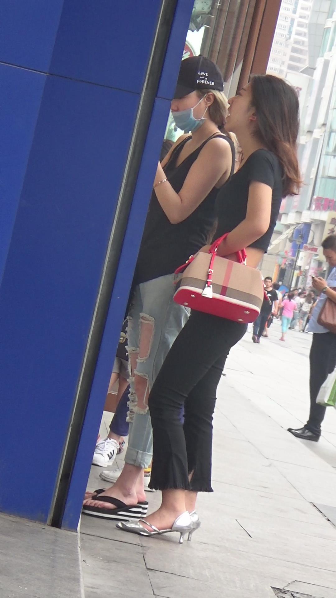 街拍超好身材的美腿破洞牛仔裤姐妹花 编号5867