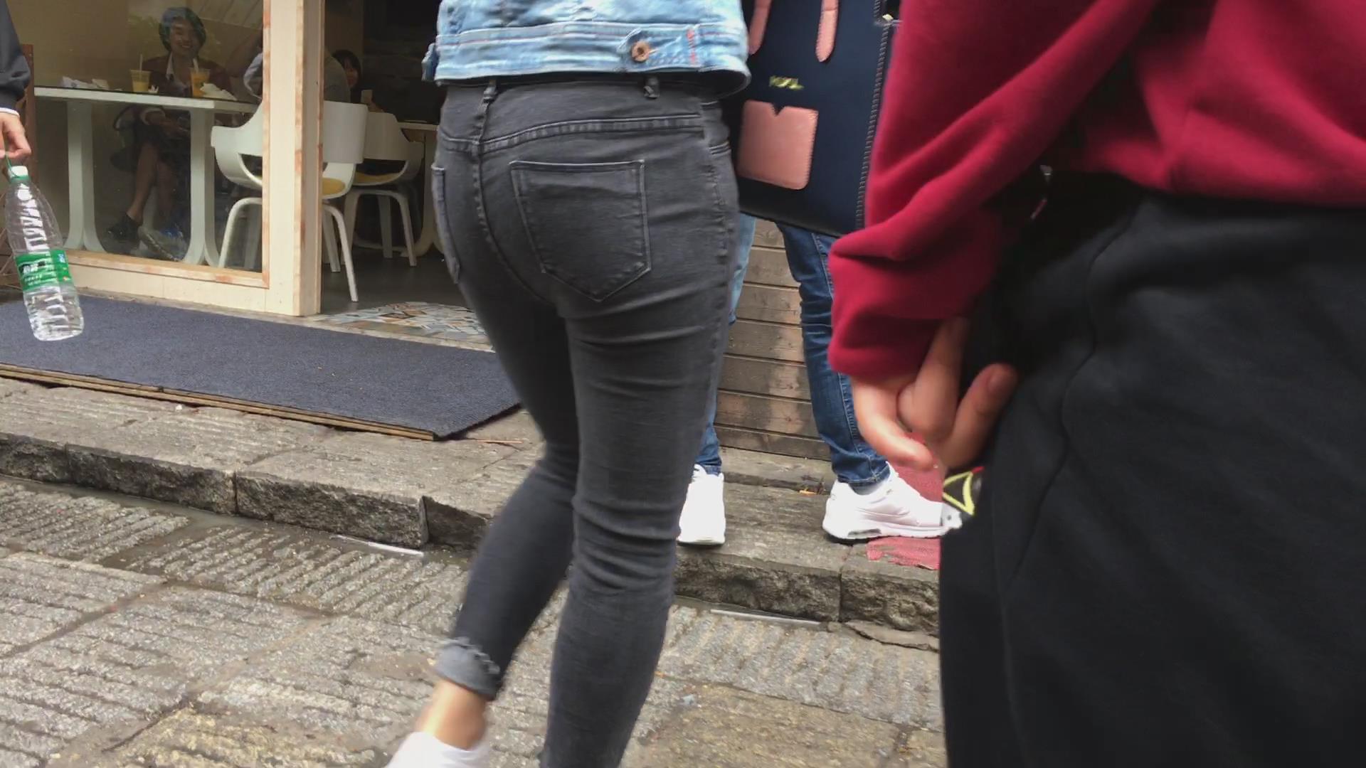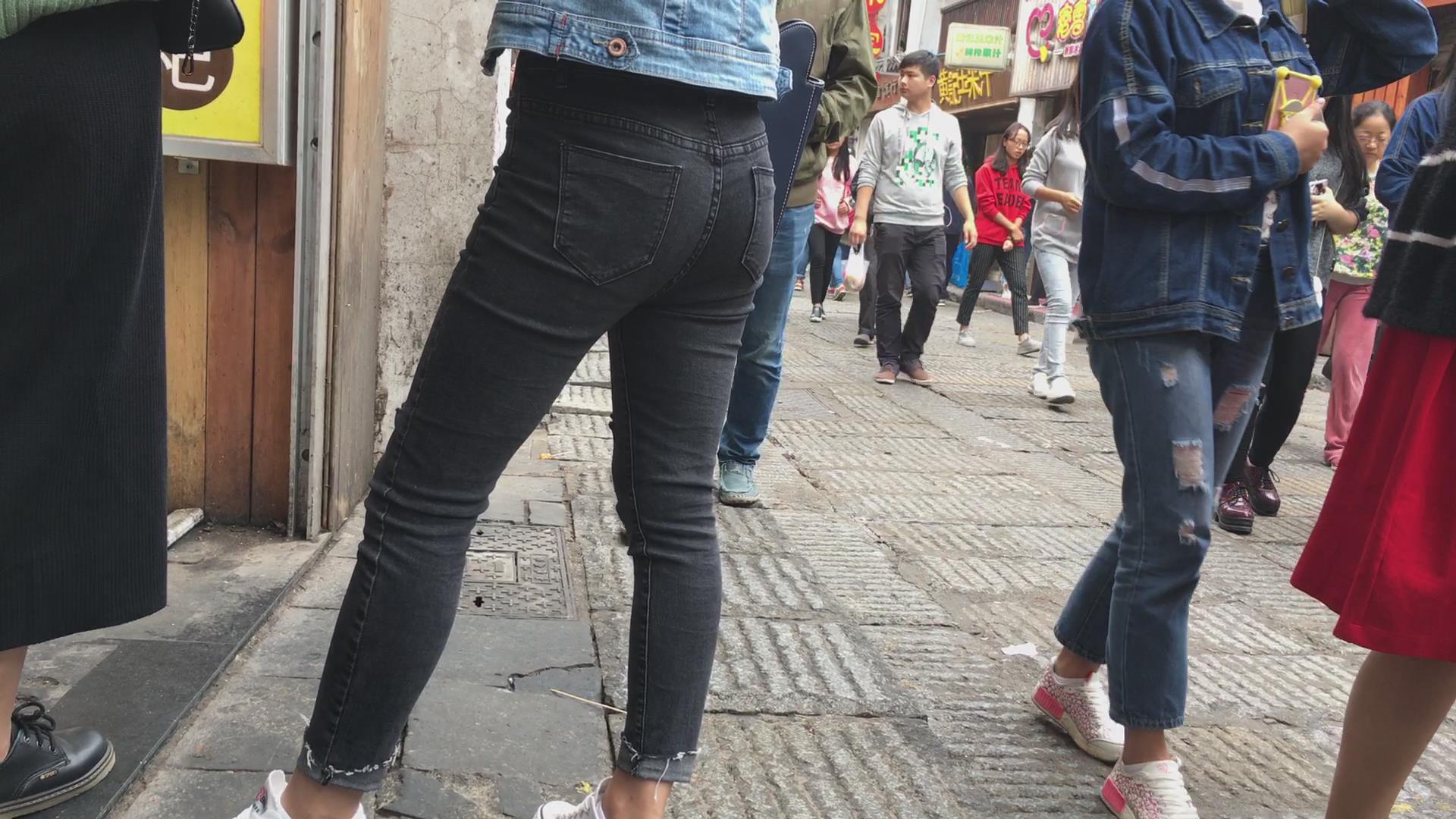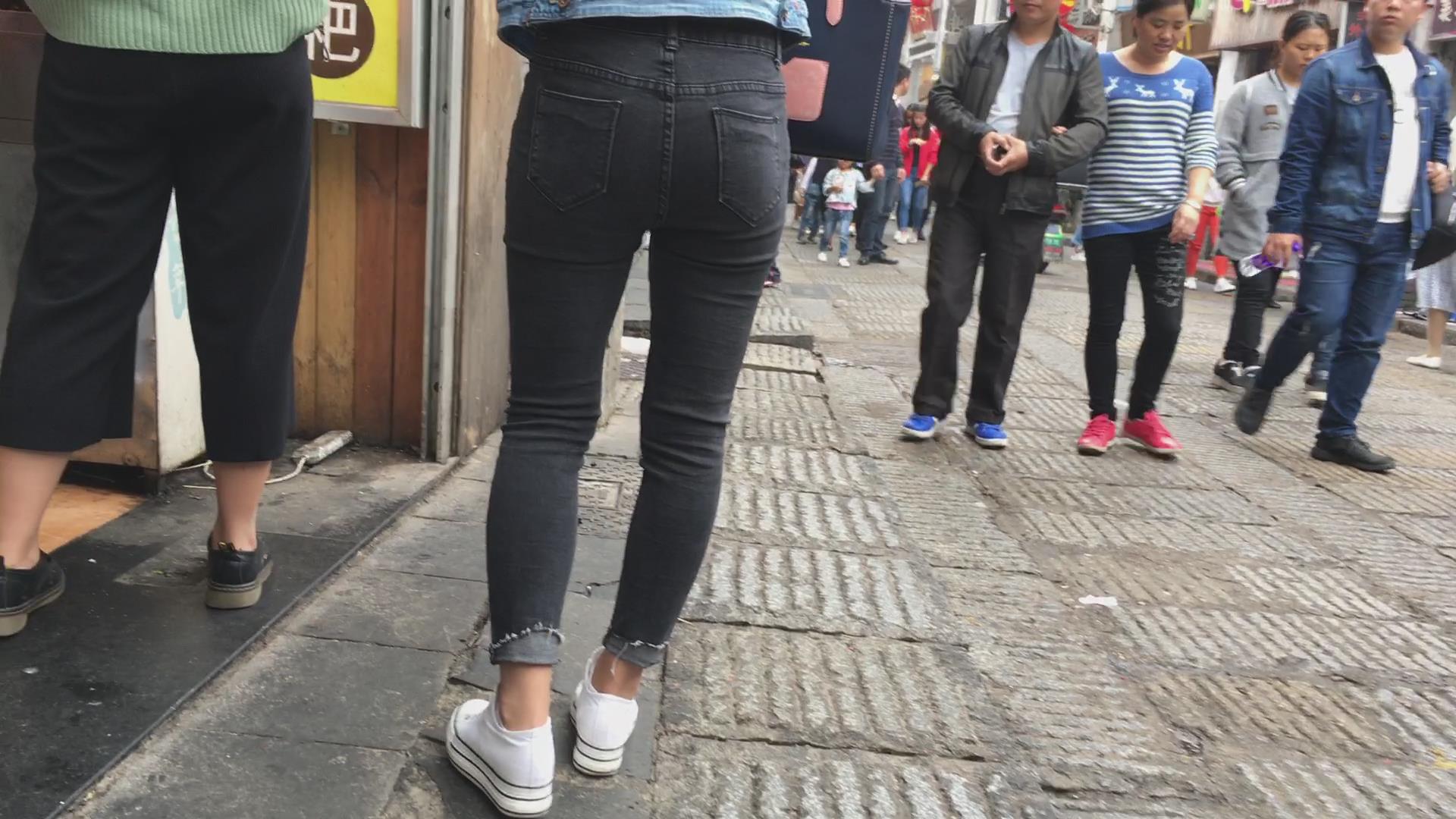 黑色紧身翘臀牛仔裤美眉 编号5868