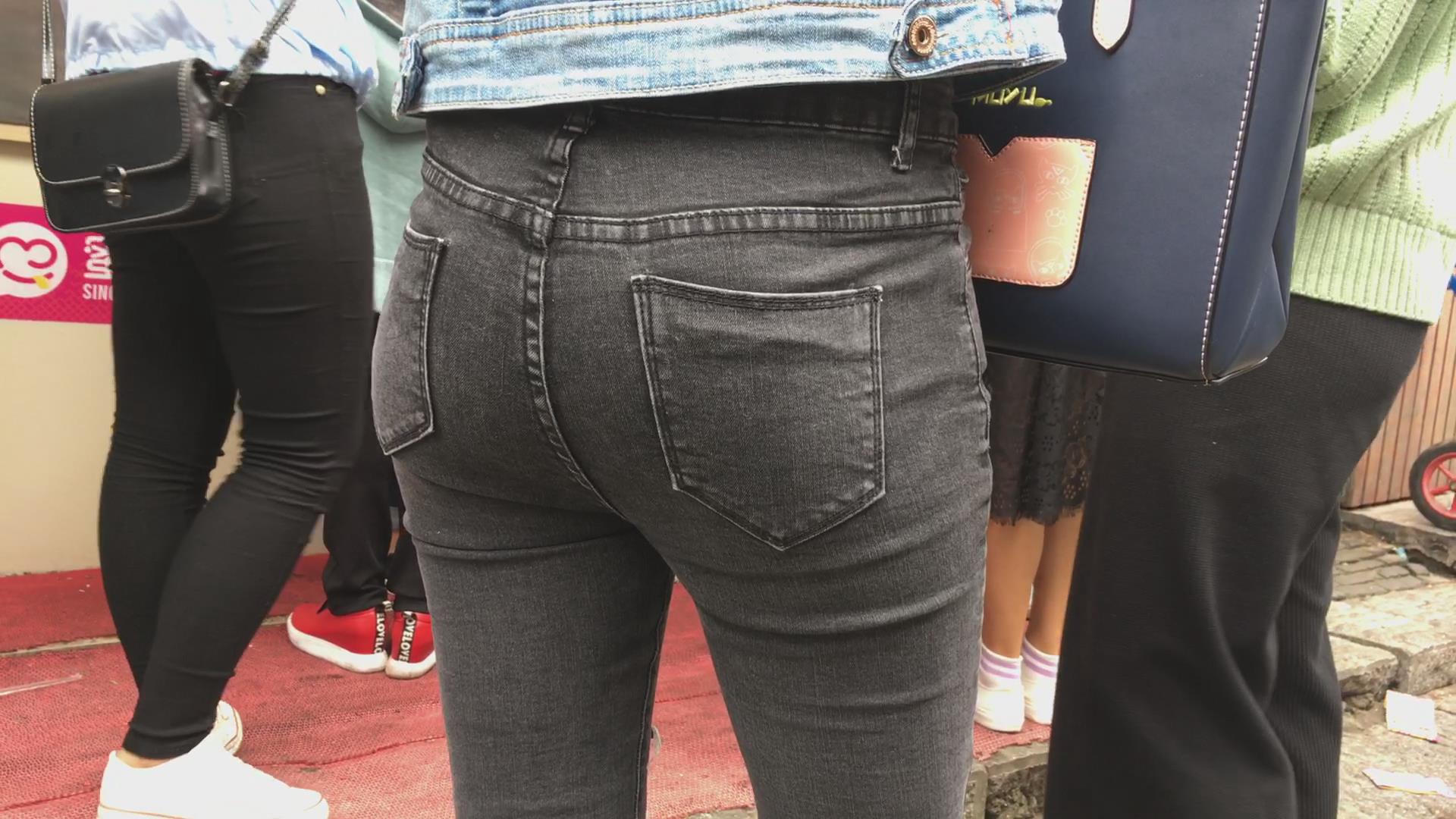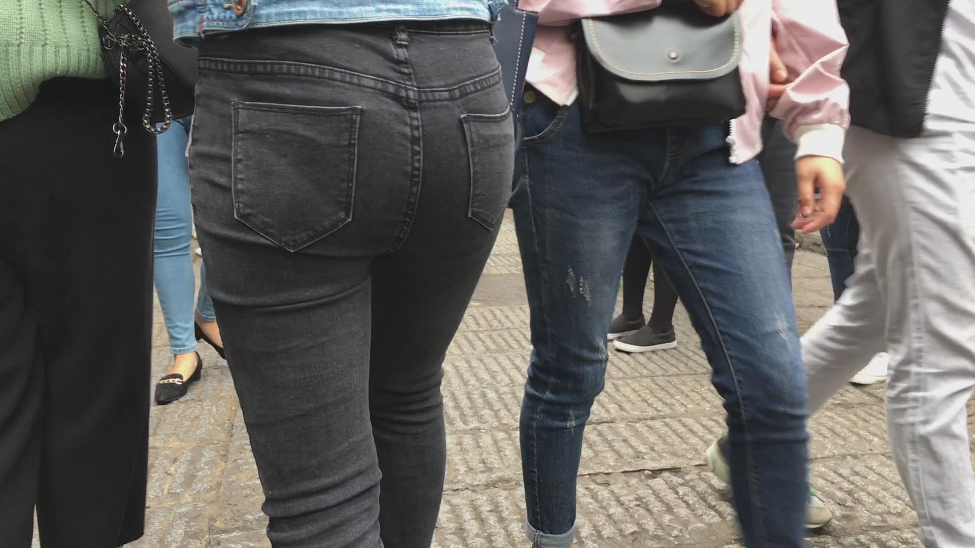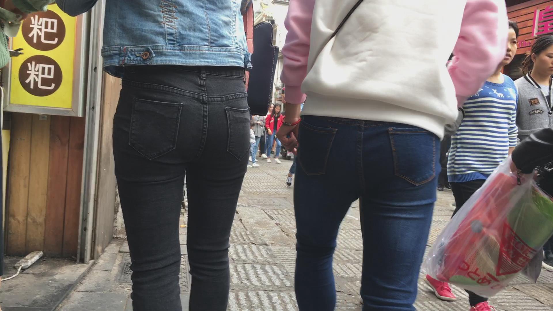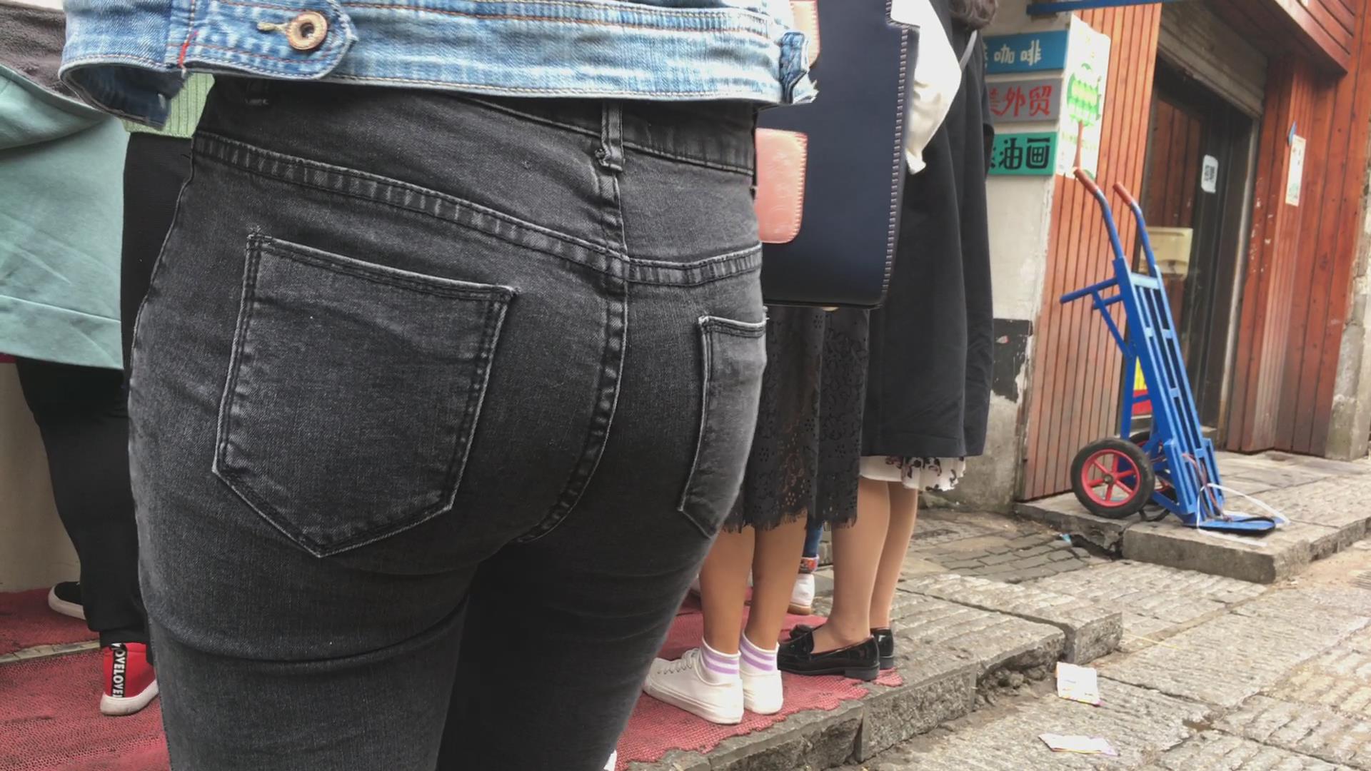 黑色紧身翘臀牛仔裤美眉 编号5868