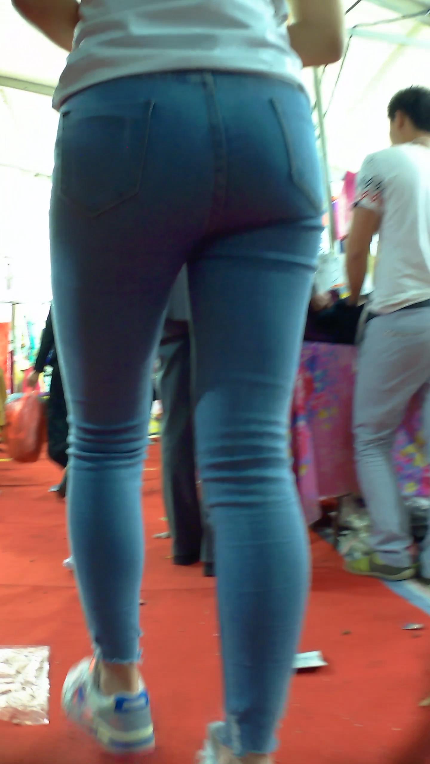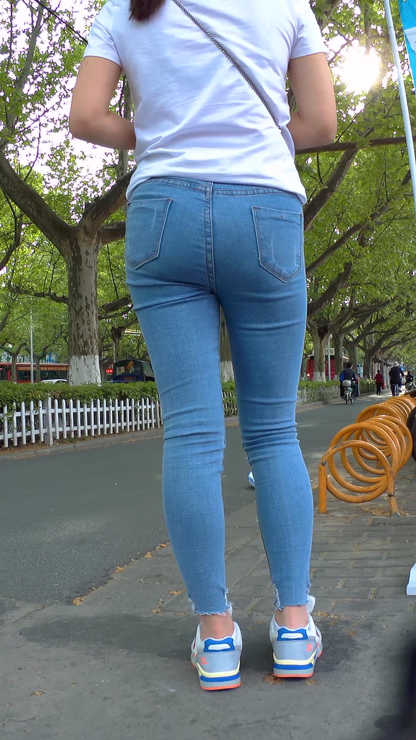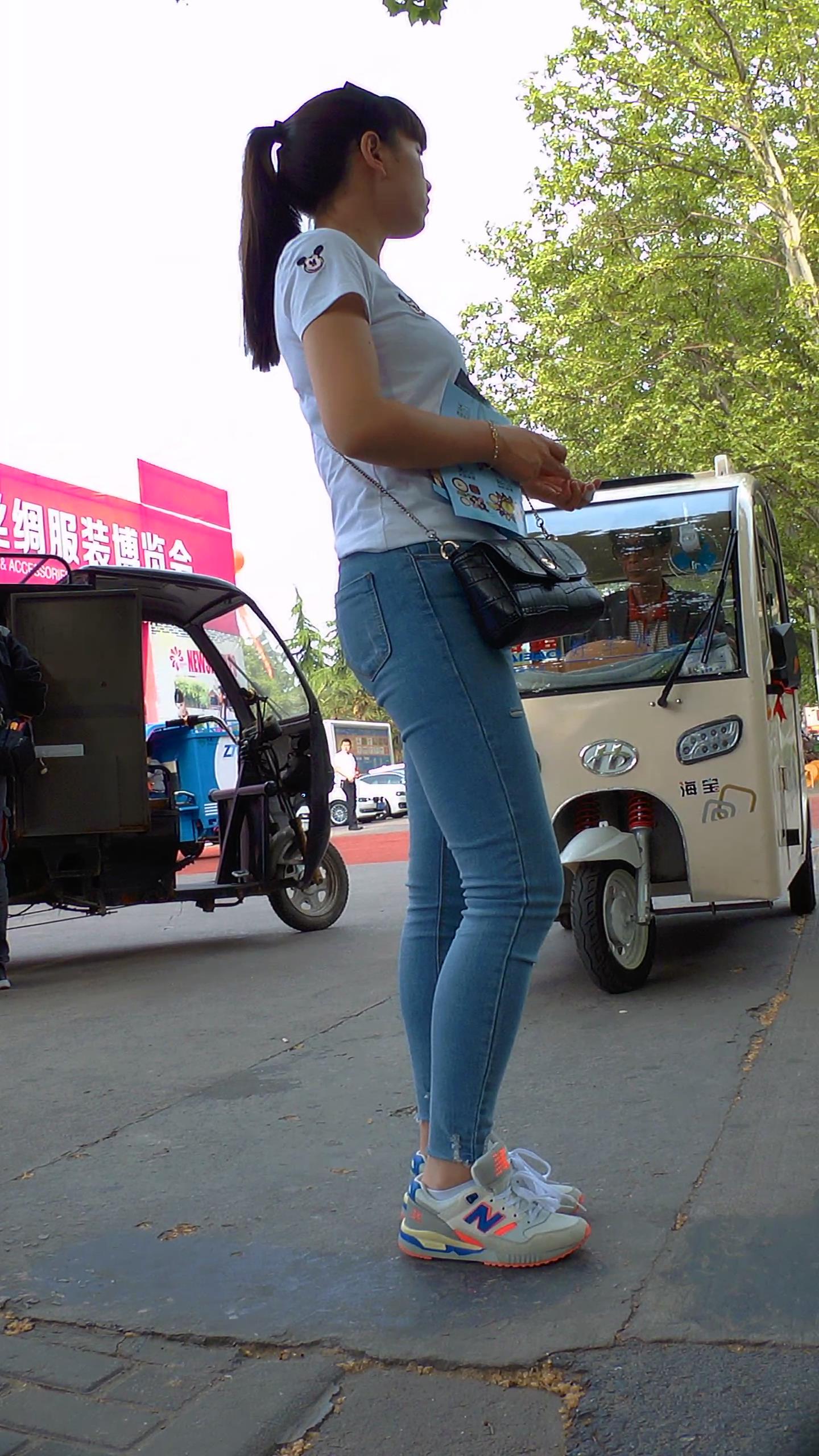 紧身蓝牛马尾辫少妇 编号5876