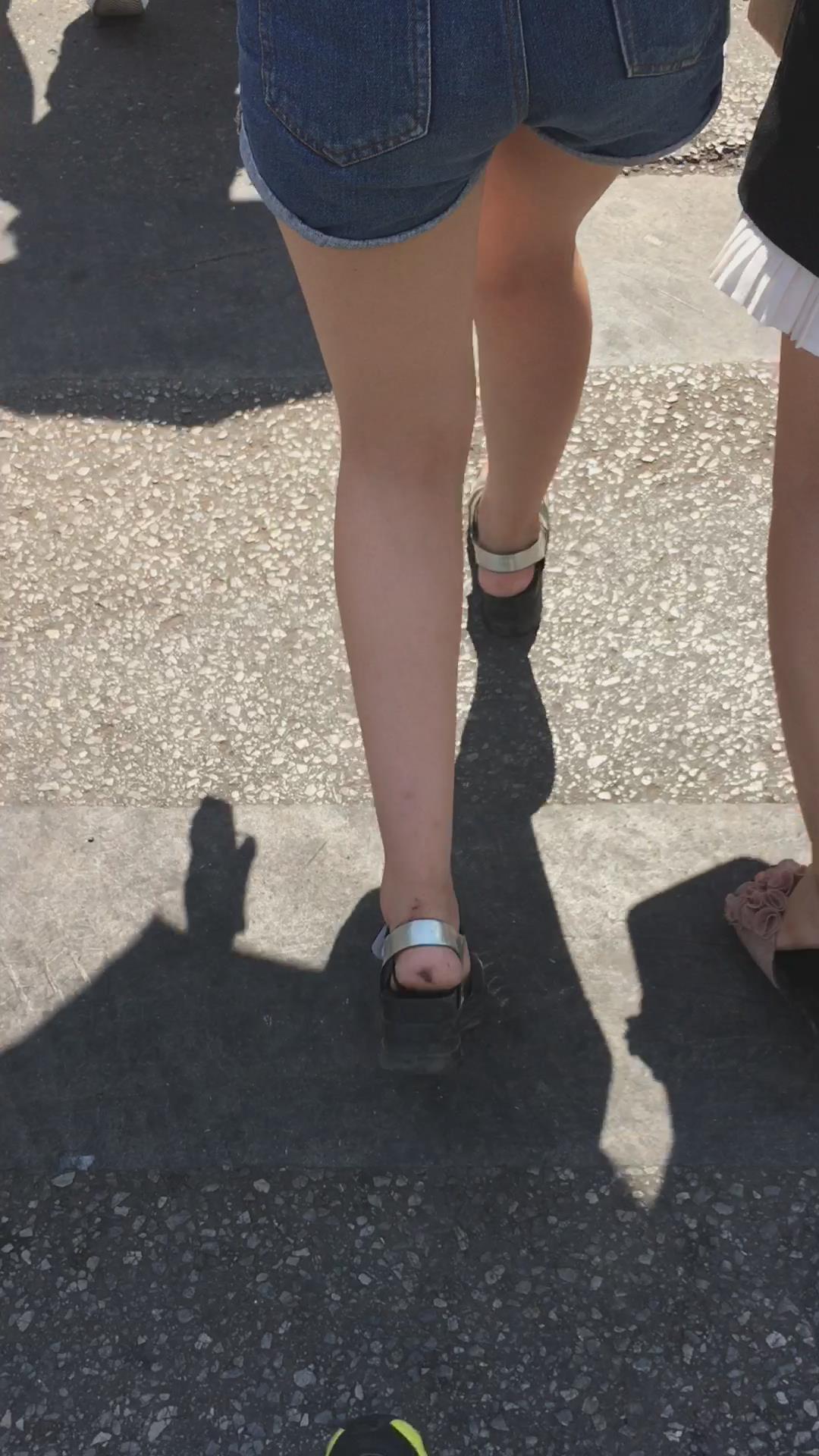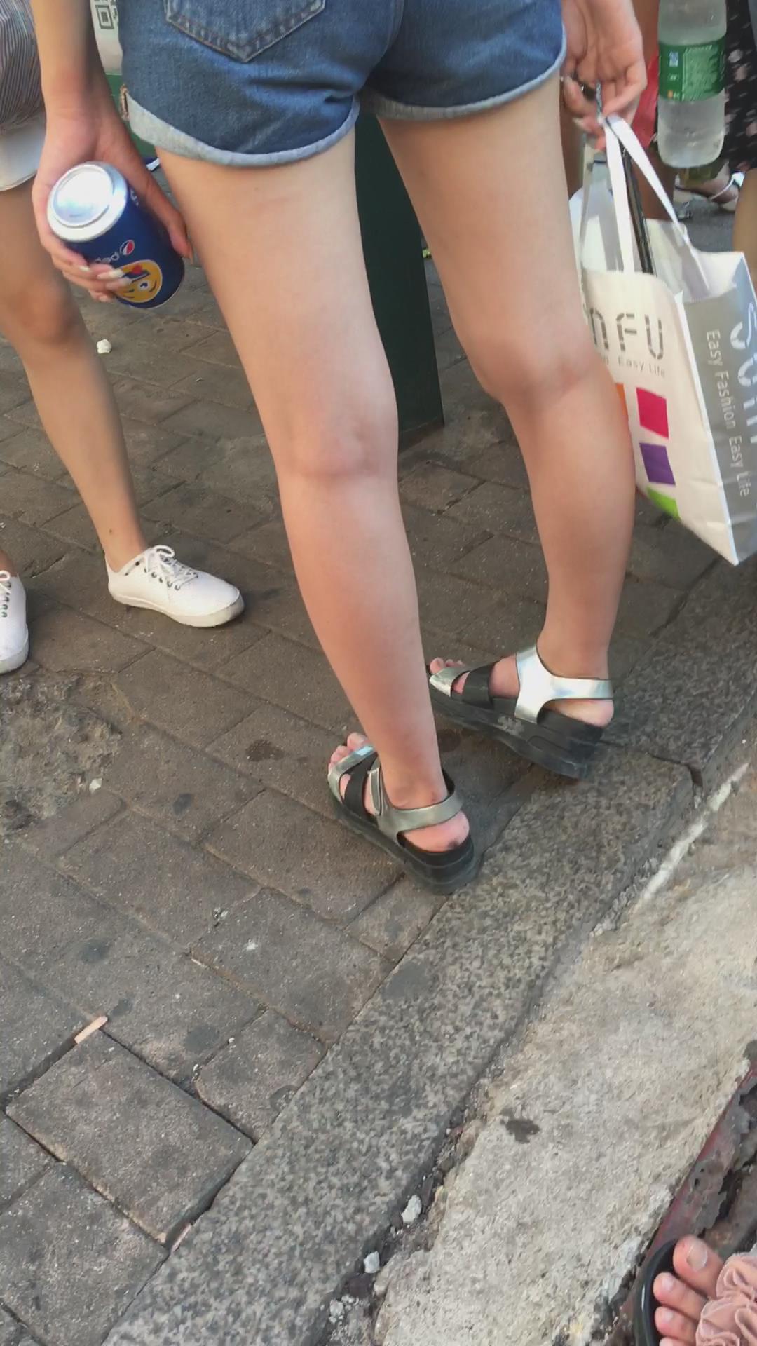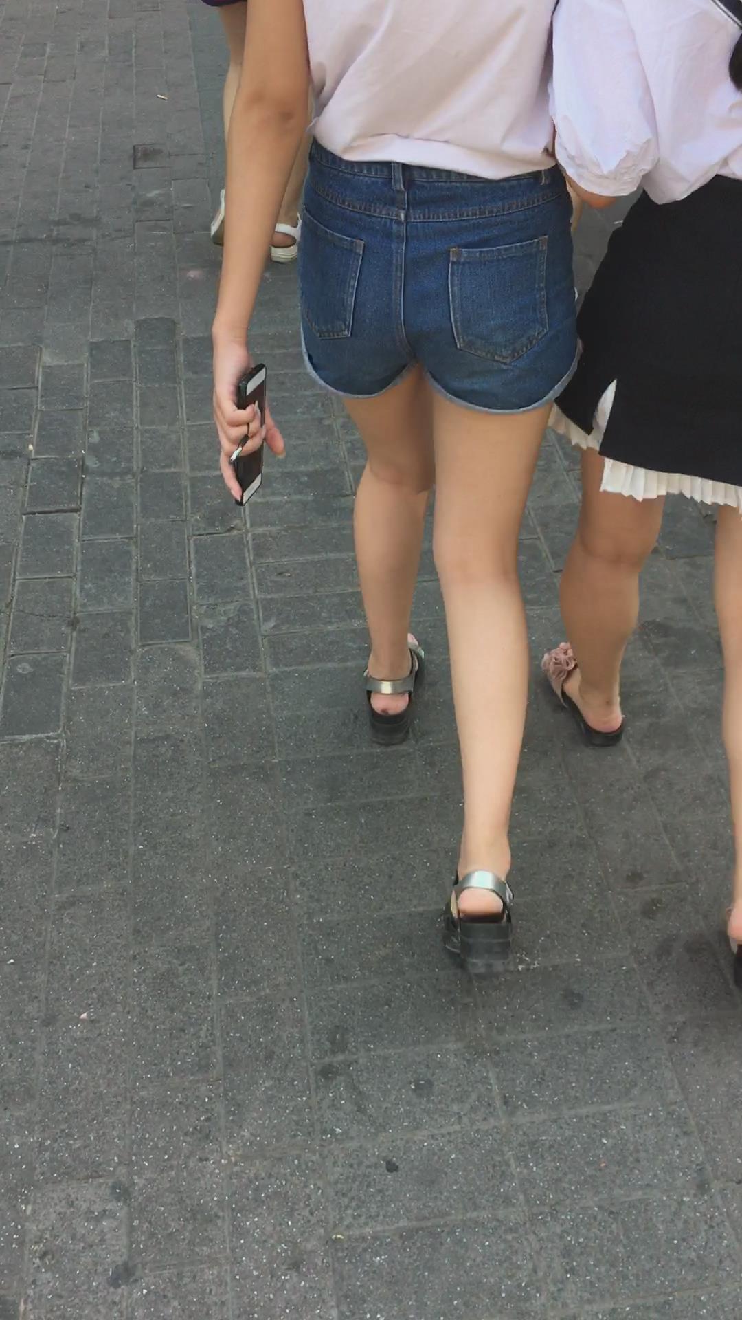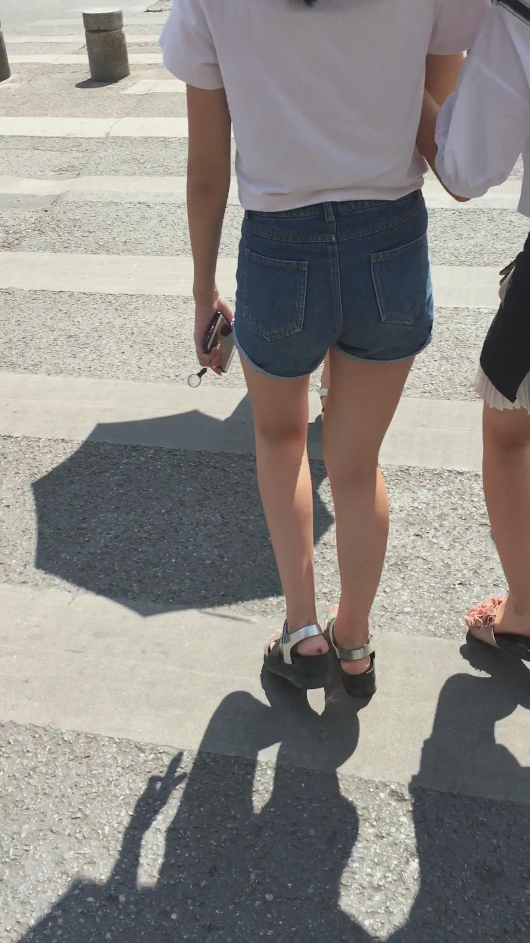 街拍高腰热裤白T恤清纯小姑娘 编号4485