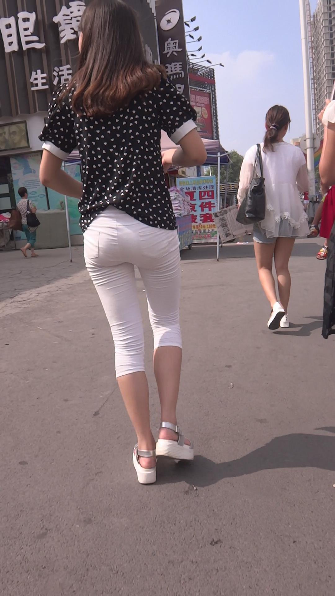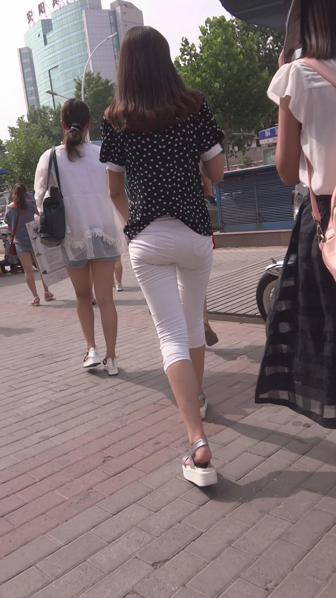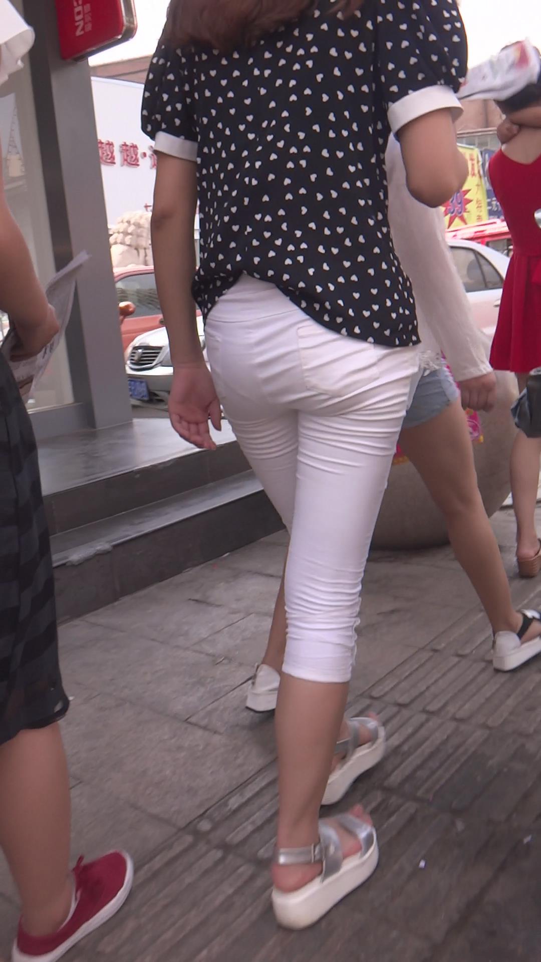 街拍紧身白裤性感美少妇 编号5901
