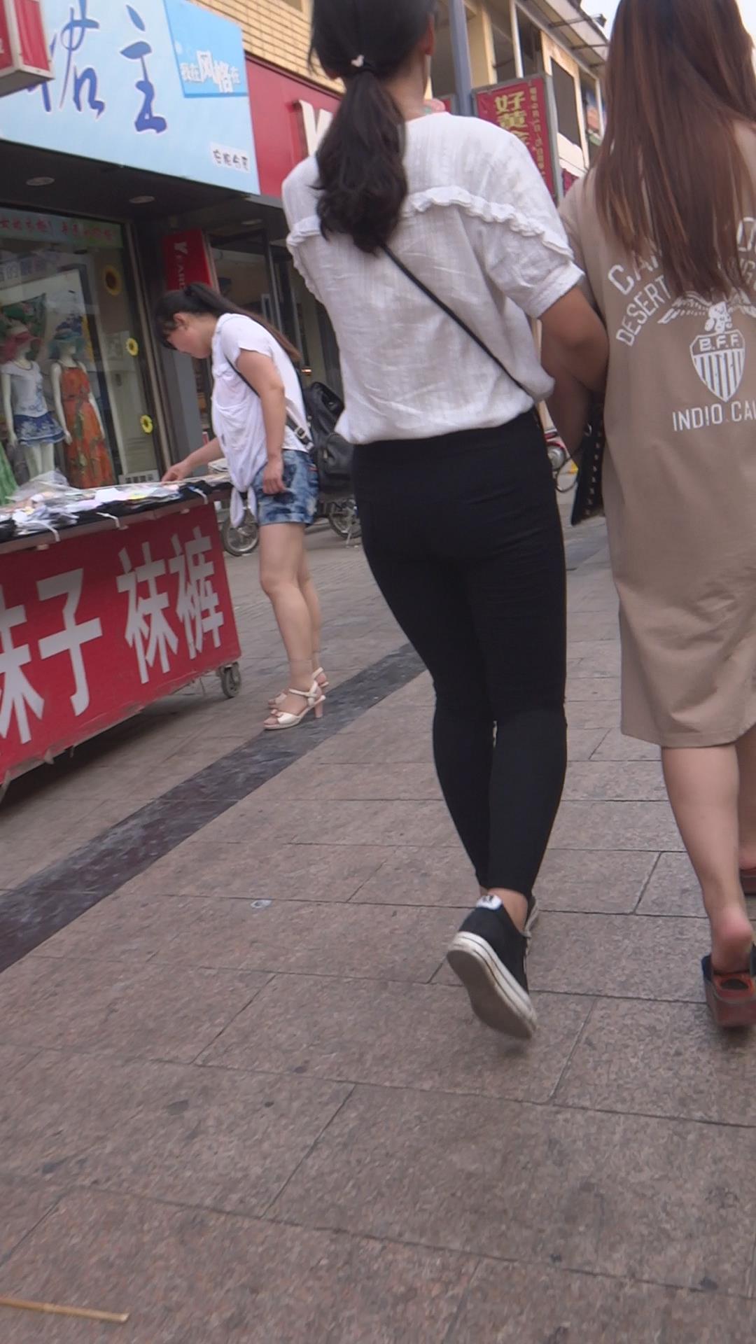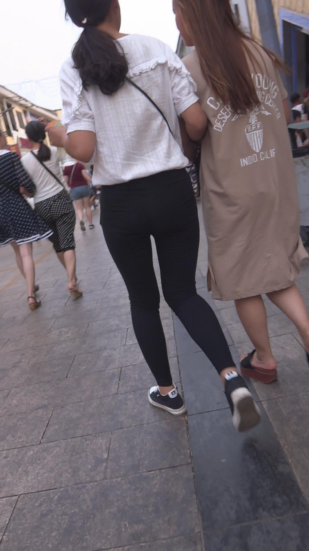 街拍黑色紧身裤美女姐妹花 编号5902