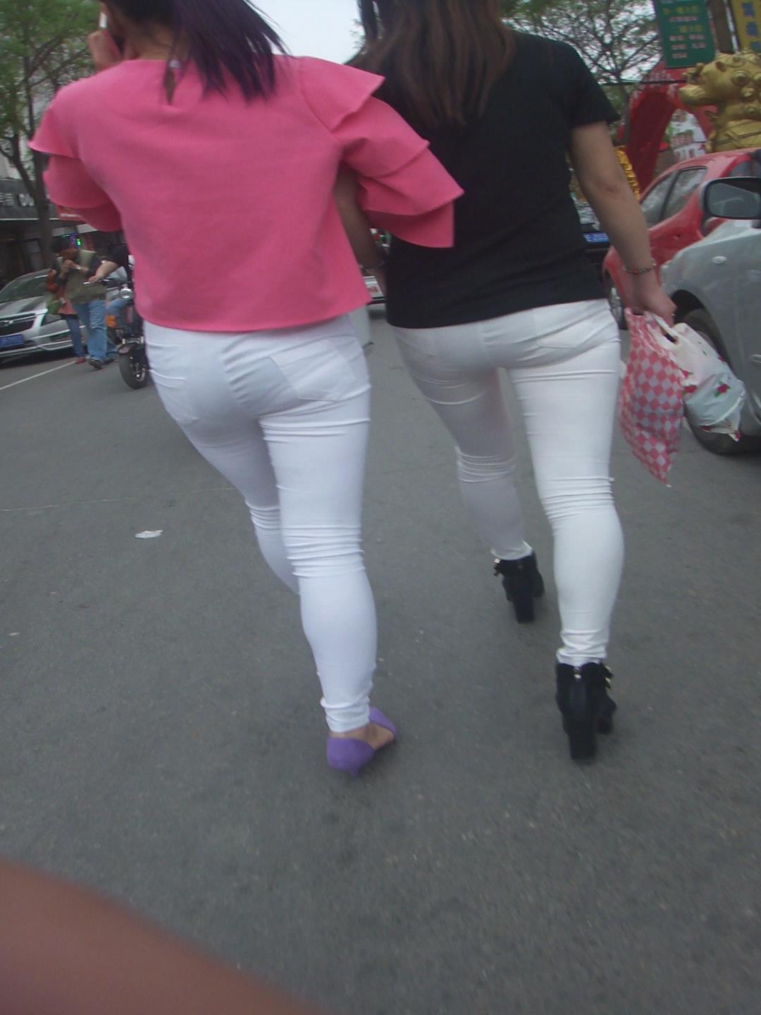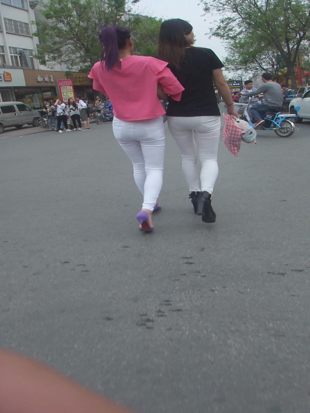 街拍极品紧身裤两姐妹,青春秀丽 编号5904