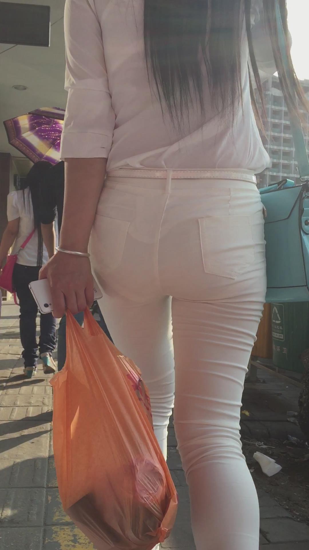 白色紧身裤丰臀美眉,内内印痕很清晰 编号5908