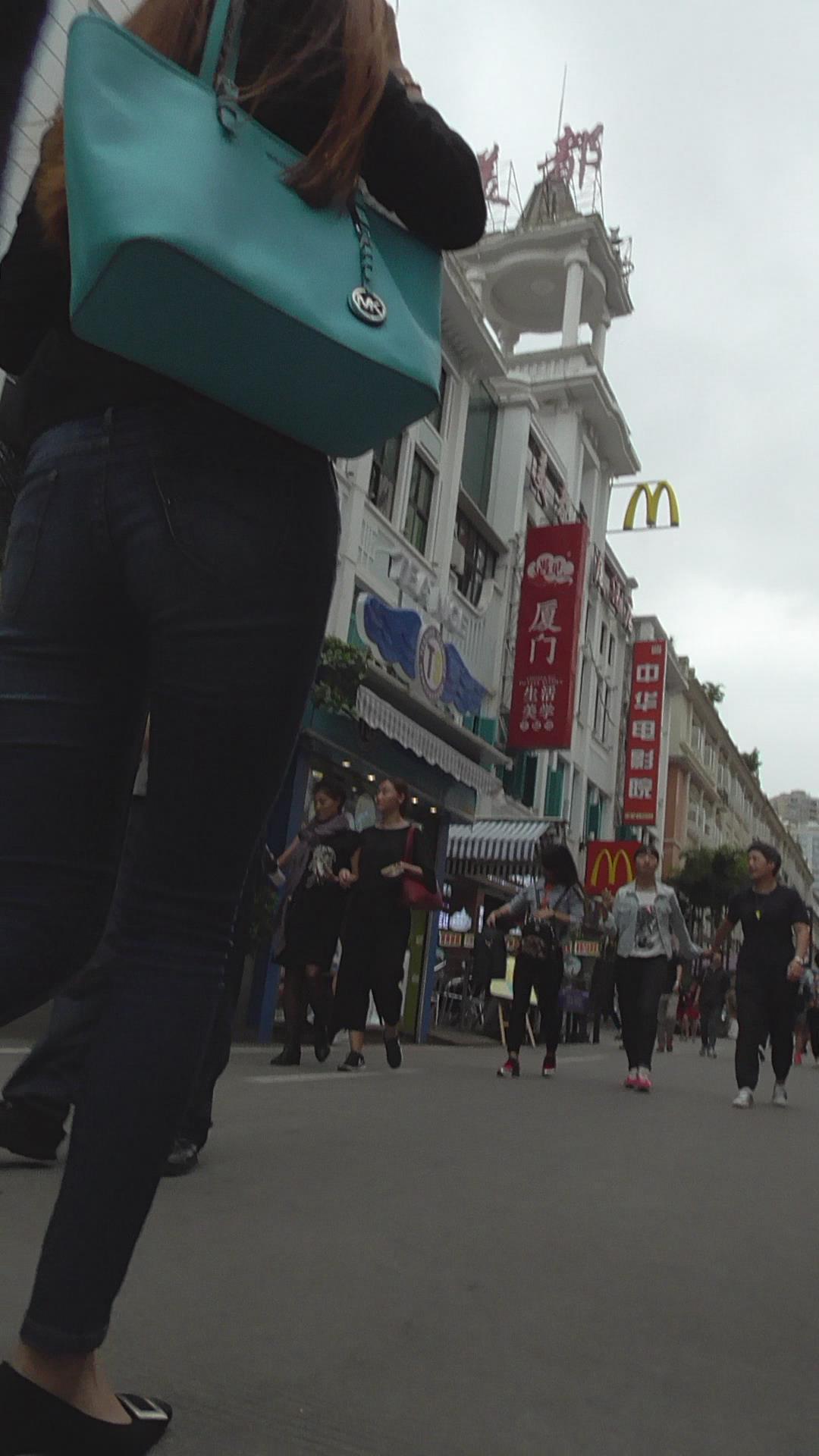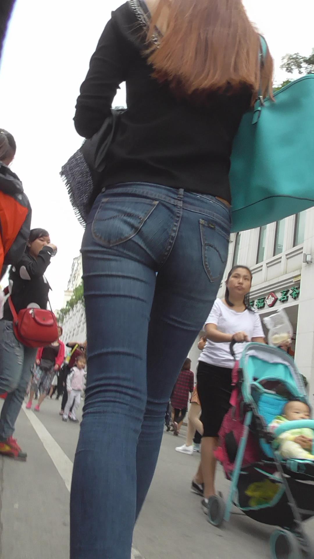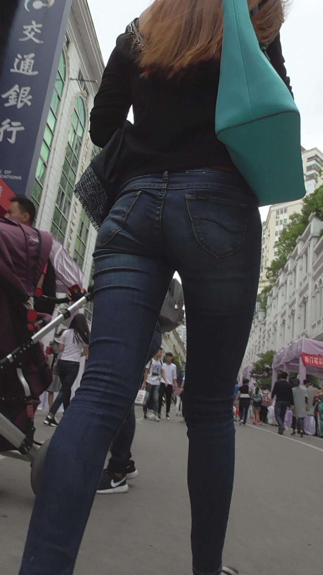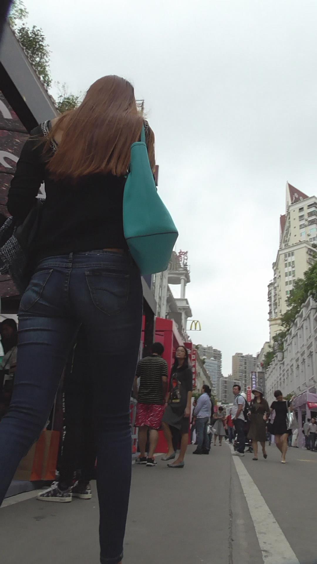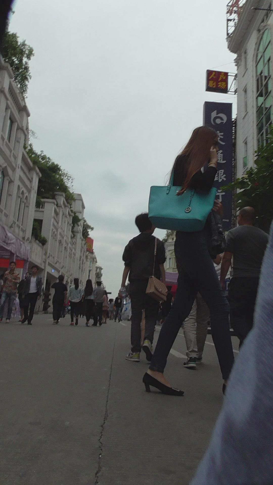 街拍高挑紧身蓝牛美女 编号5918