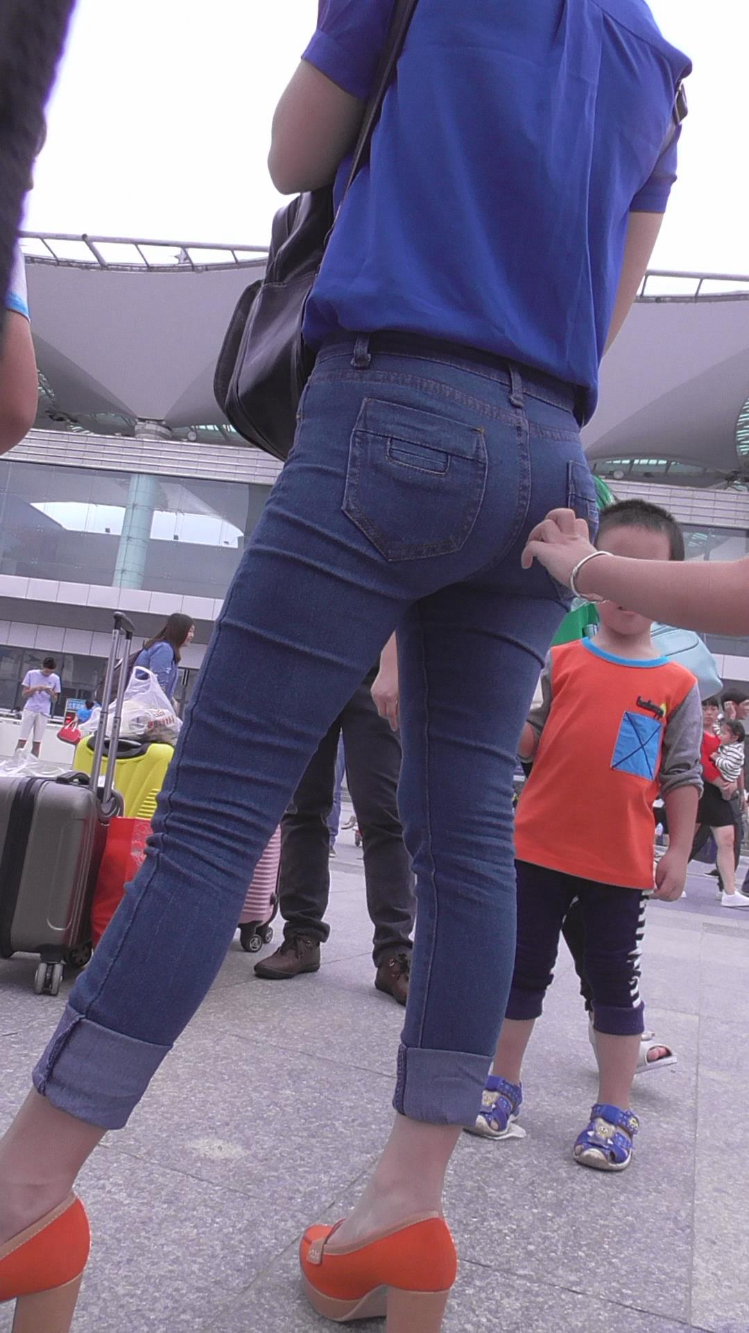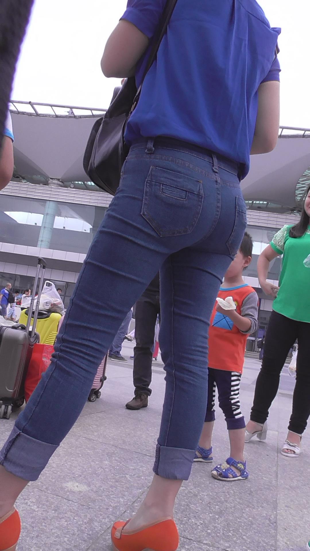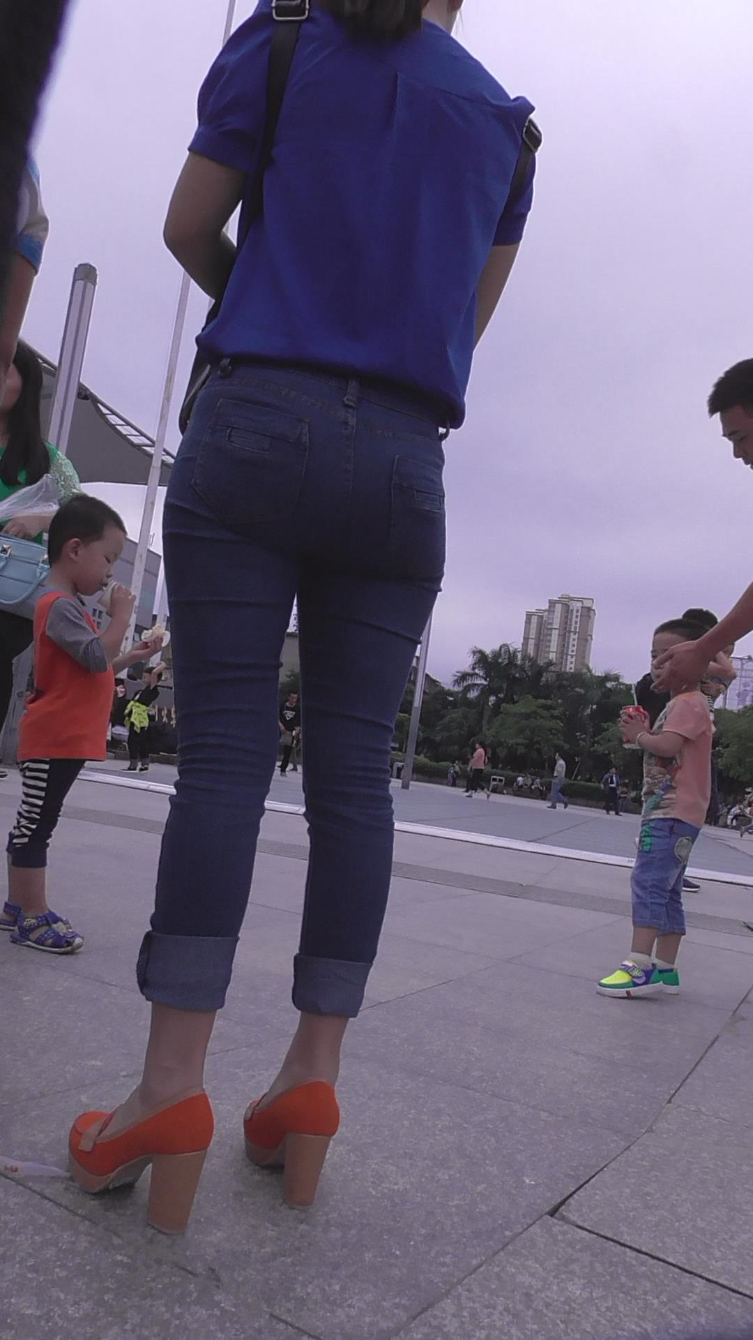 街拍极品宽臀紧身蓝色牛仔裤少妇 编号5919