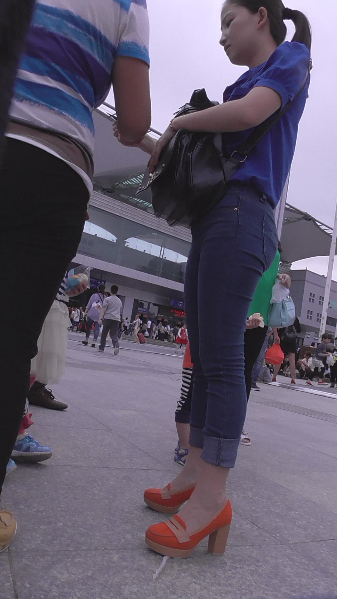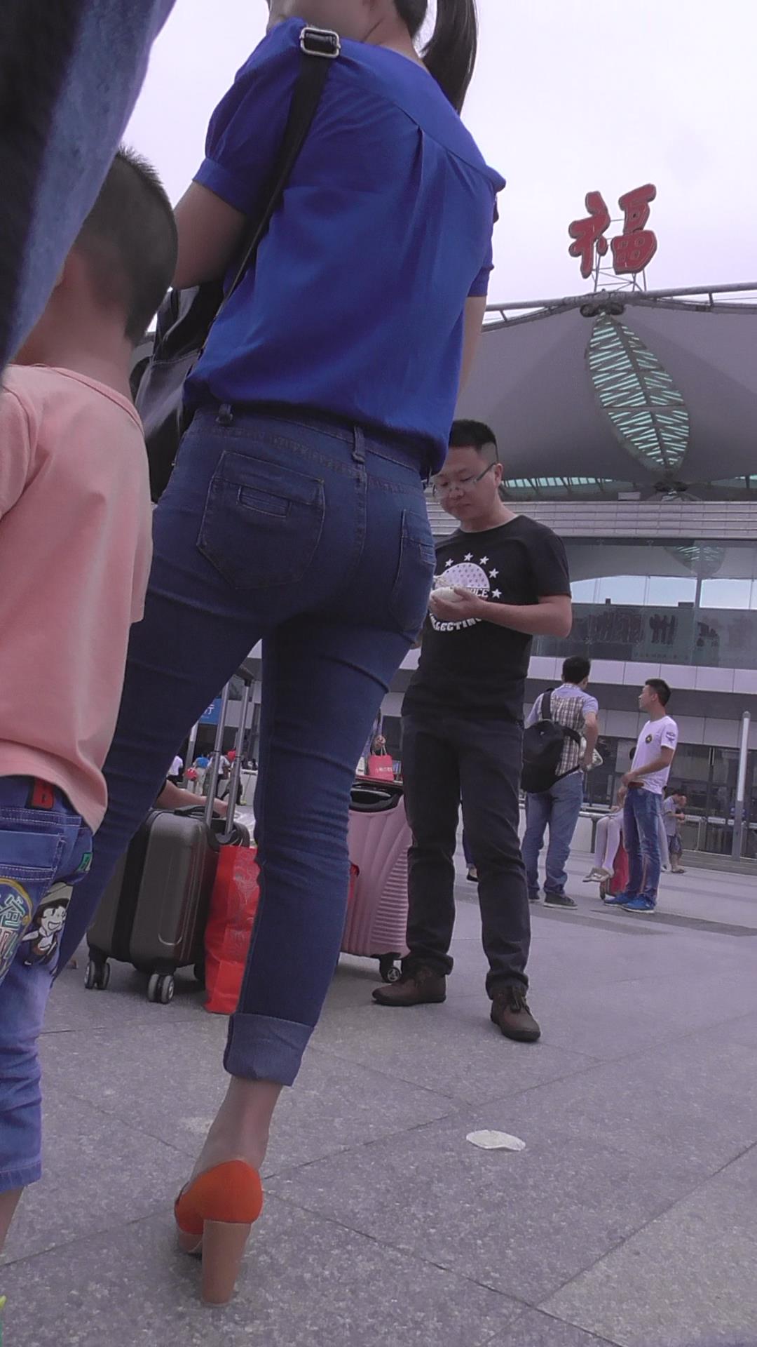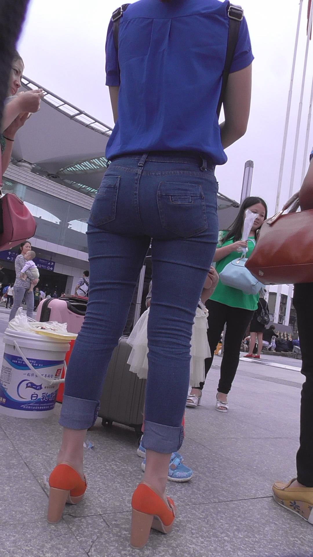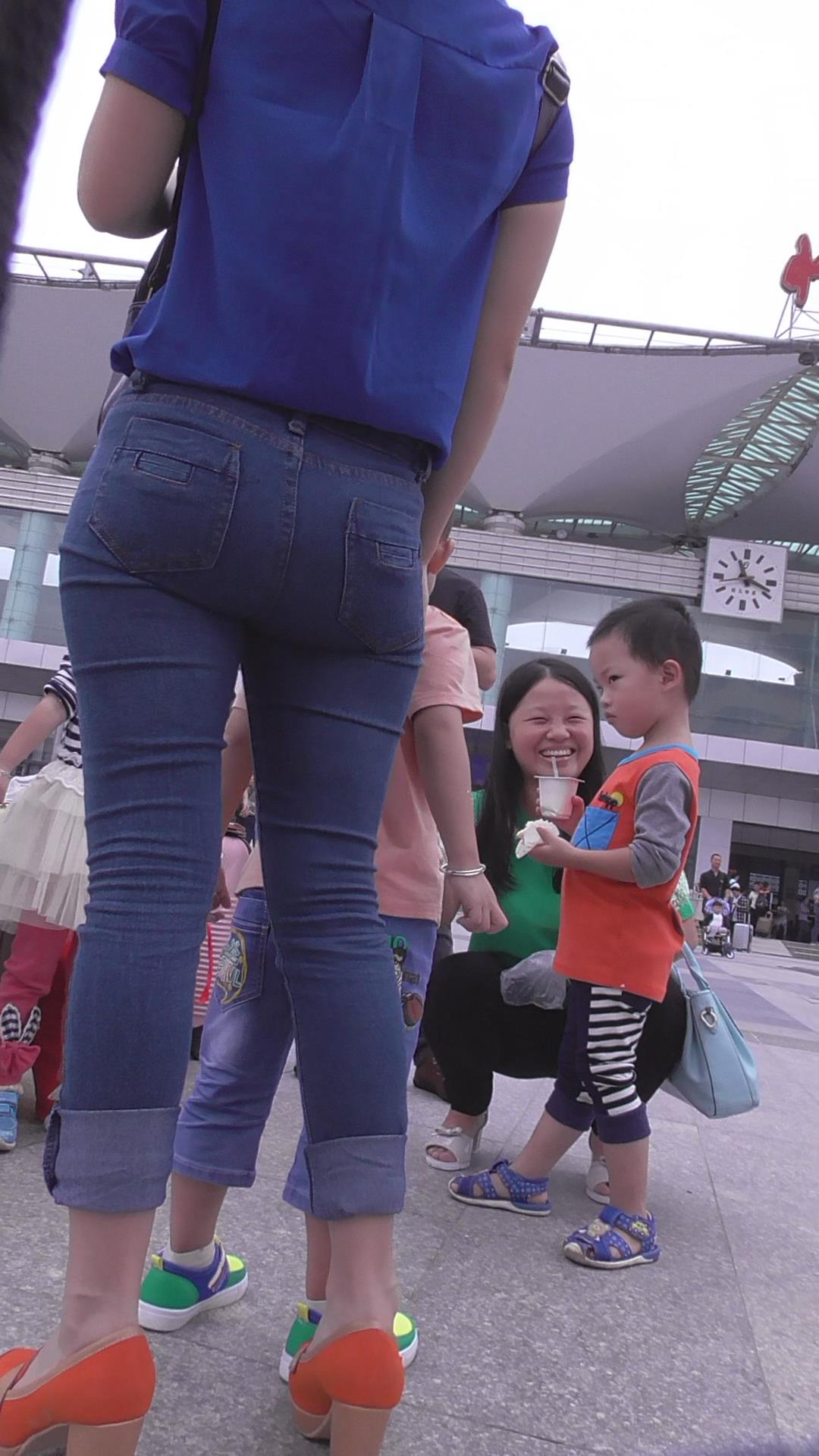 街拍极品宽臀紧身蓝色牛仔裤少妇 编号5919