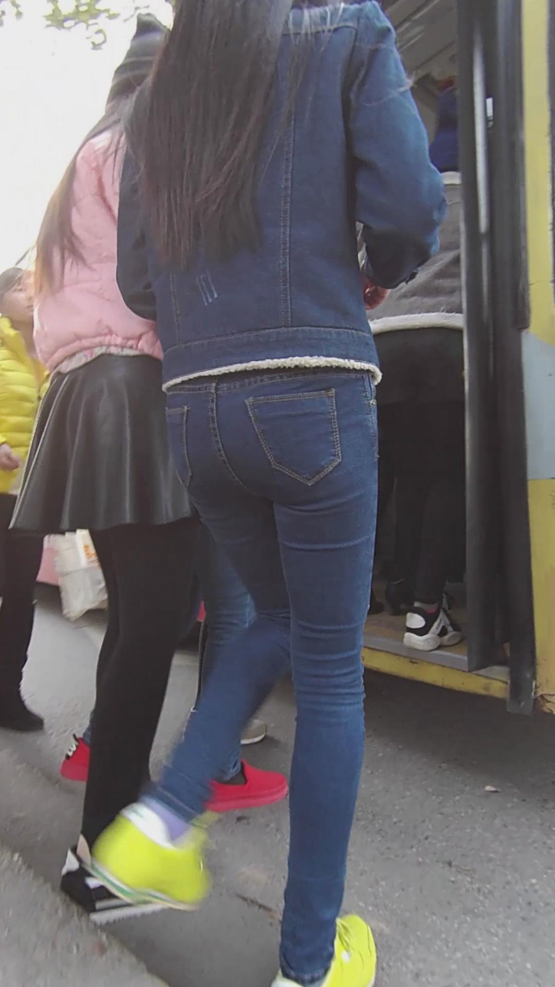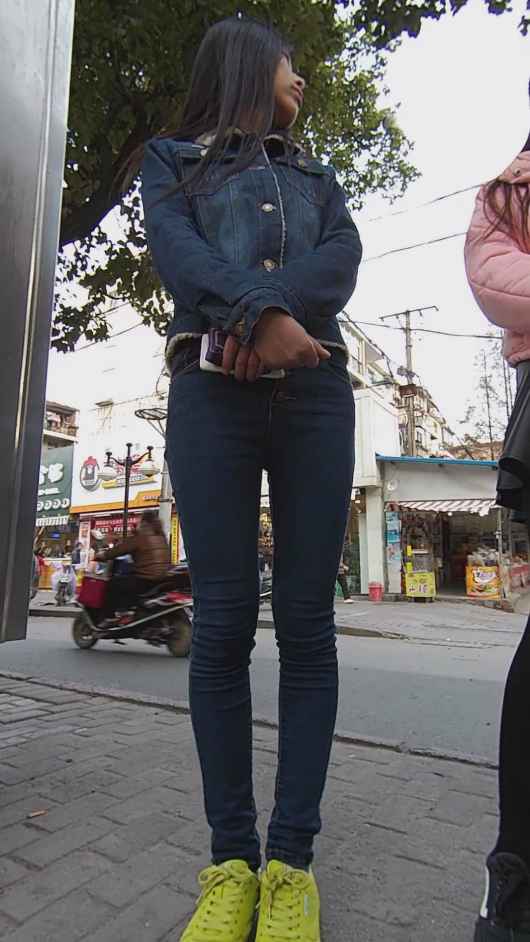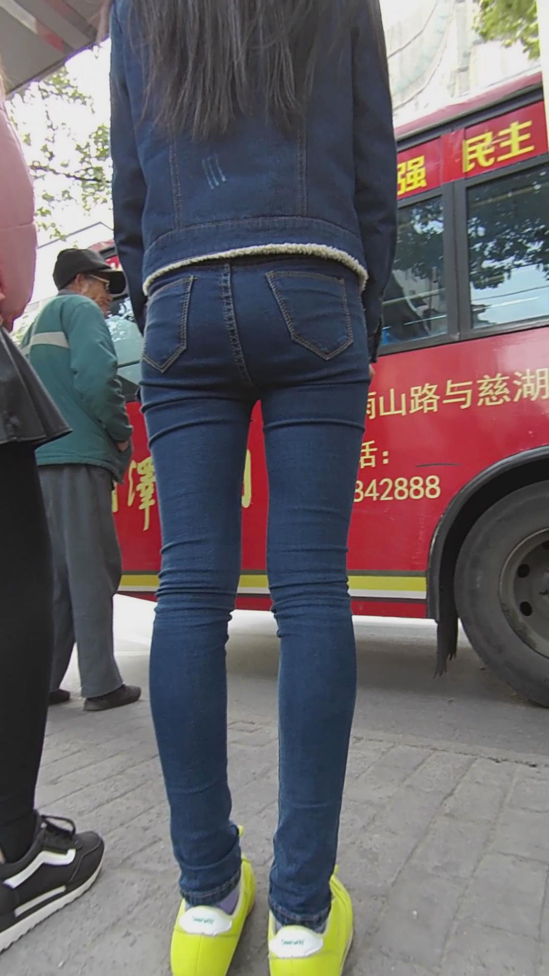 等公交的长腿蓝牛性感美女 编号5936