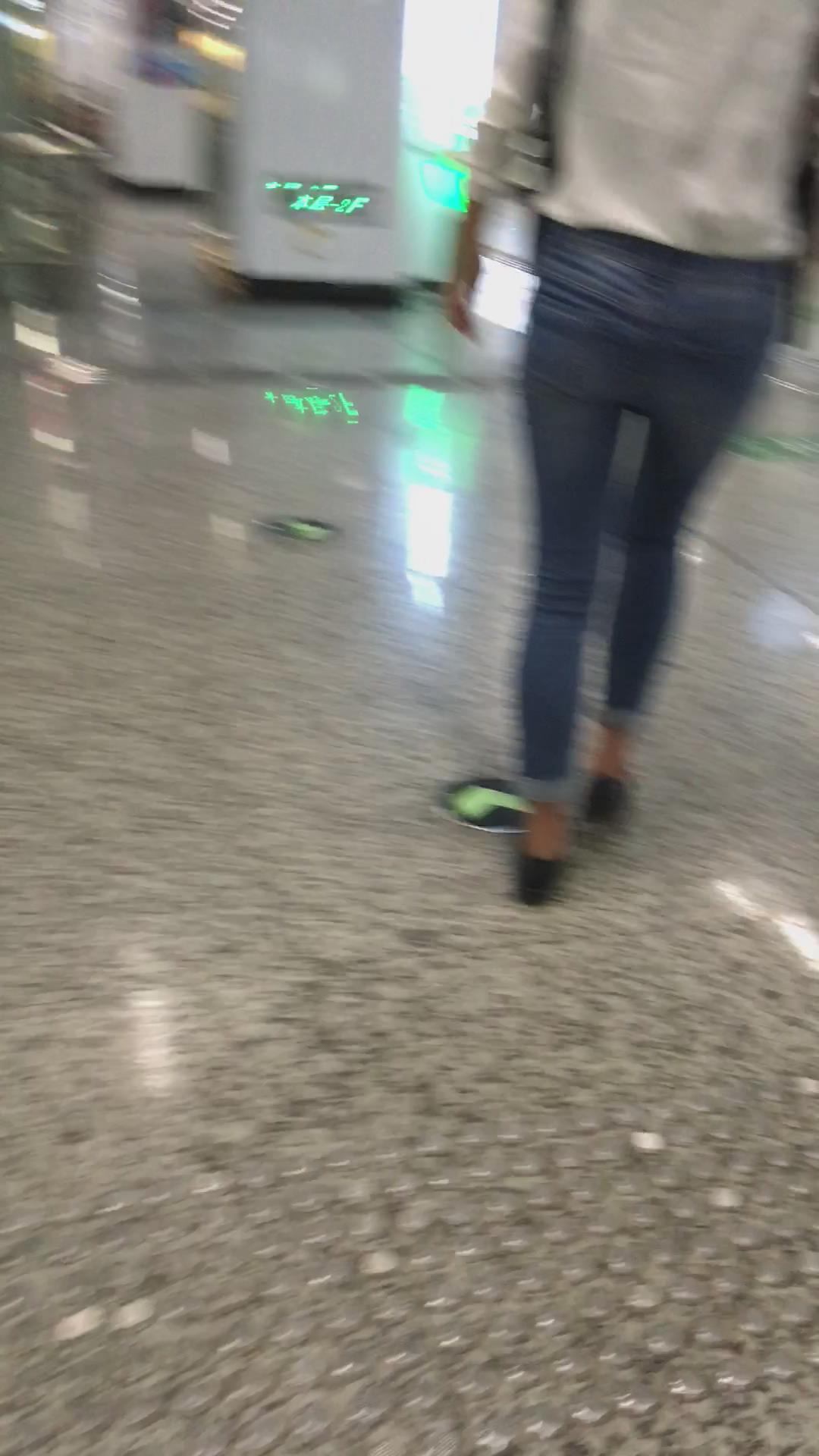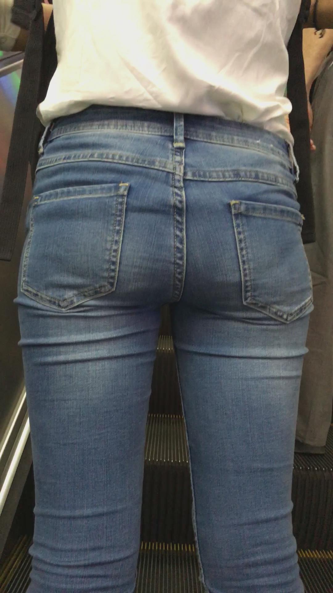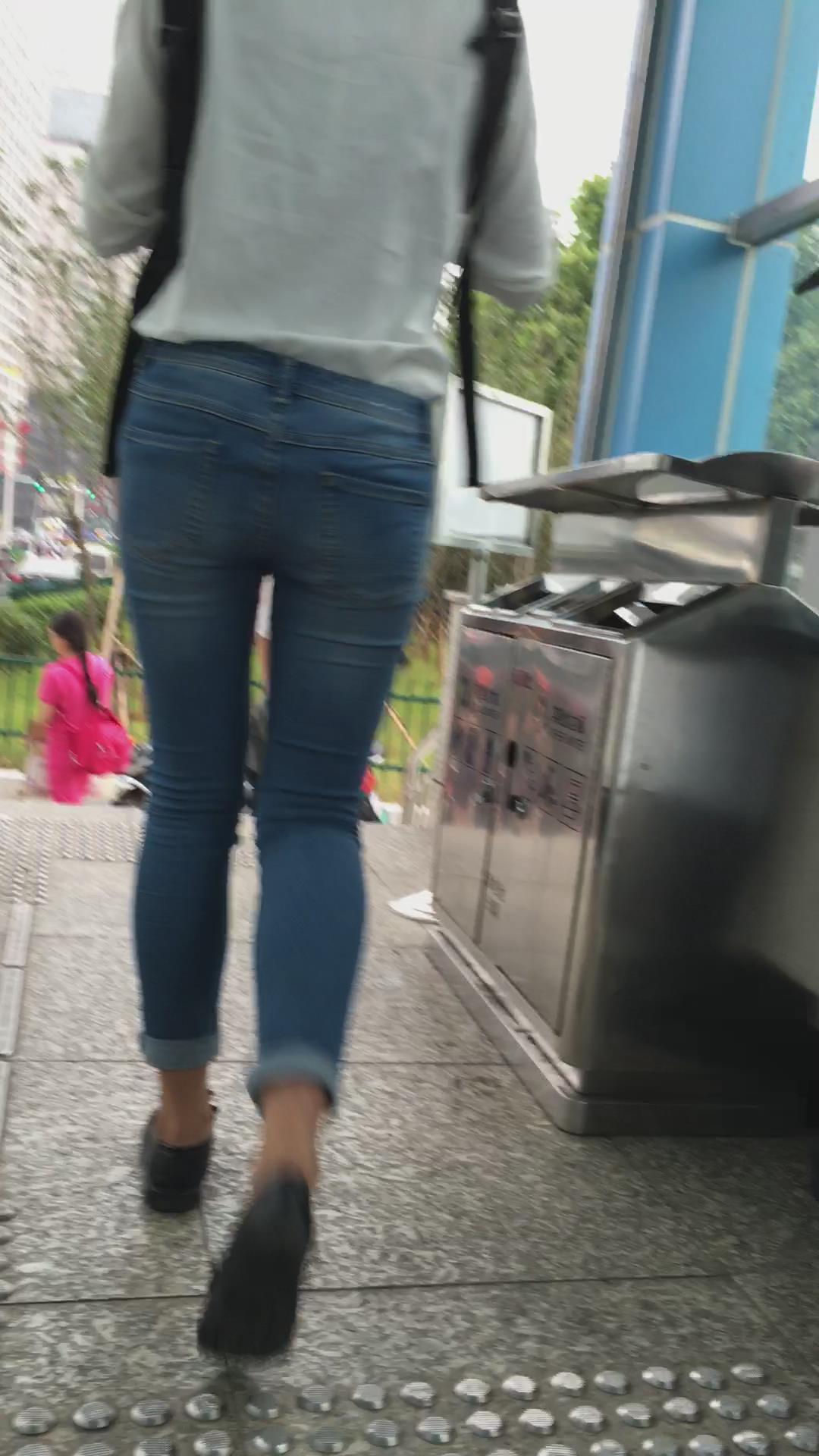 宽臀紧身蓝色牛仔裤的清秀小美女。 编号5953