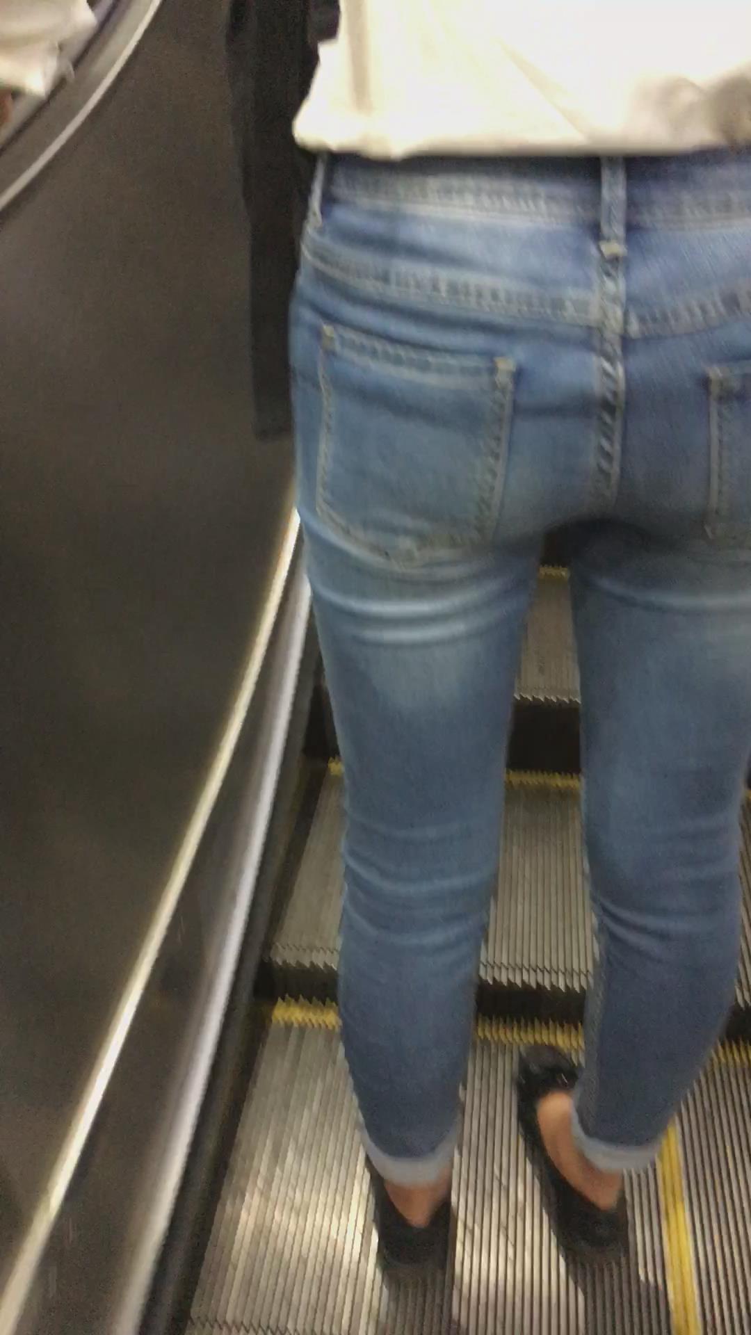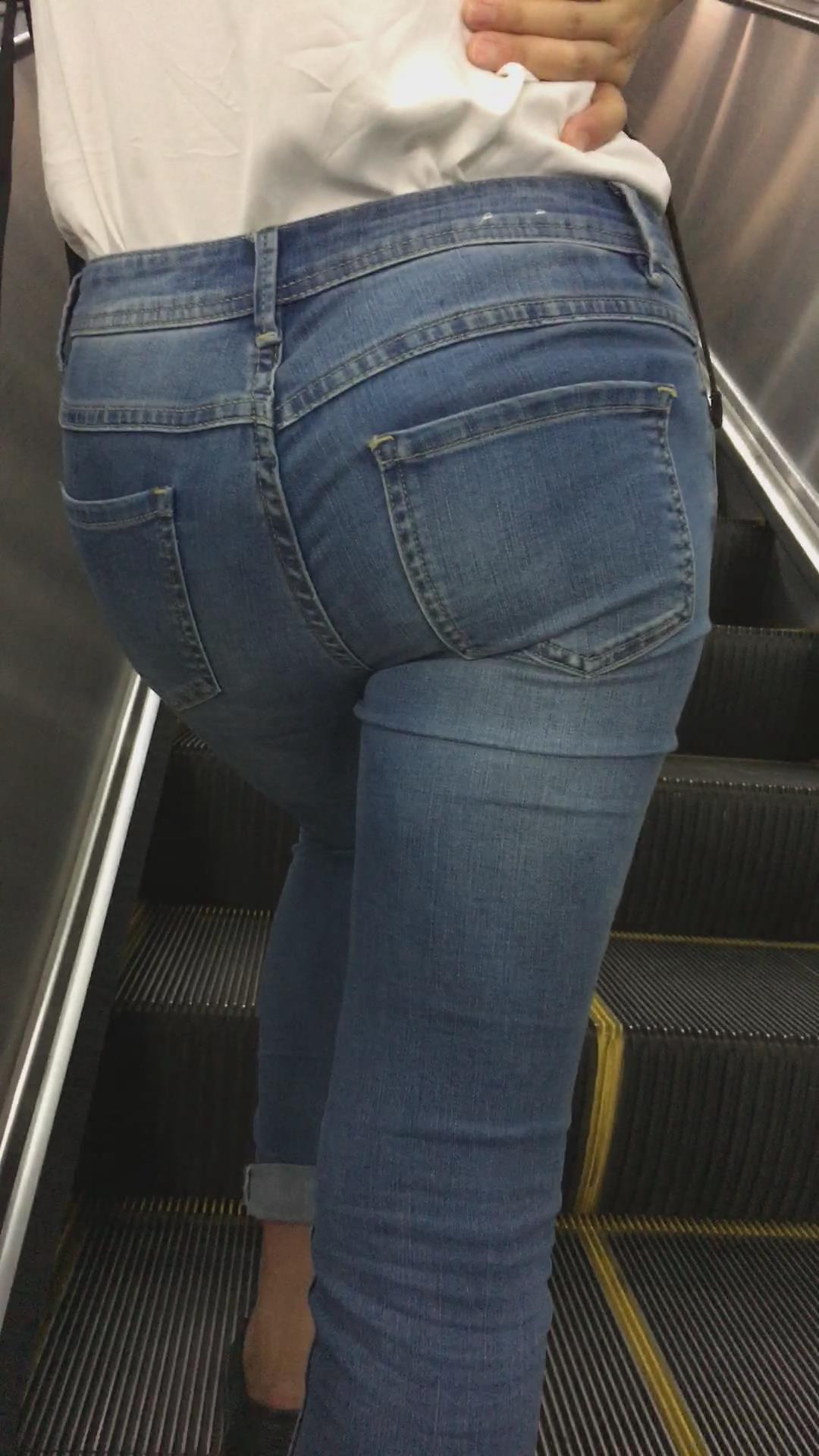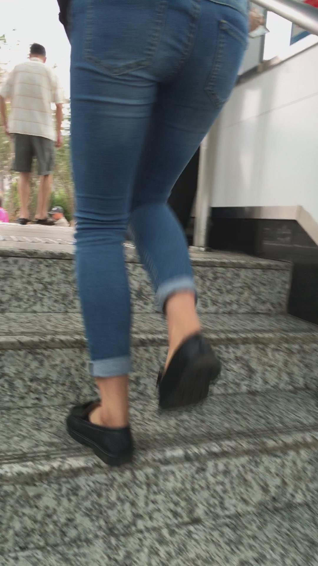宽臀紧身蓝色牛仔裤的清秀小美女。 编号5953