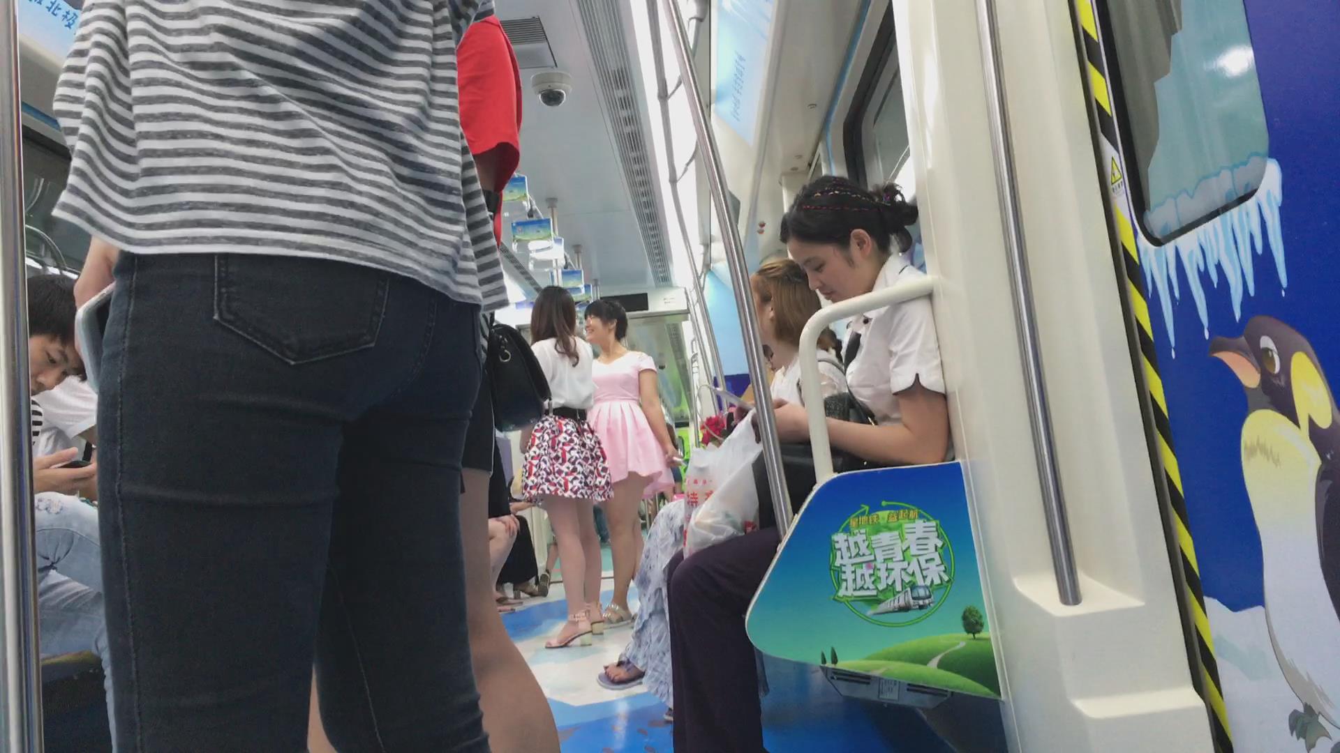 地铁拍摄紧身黑牛学生妹。 编号5956