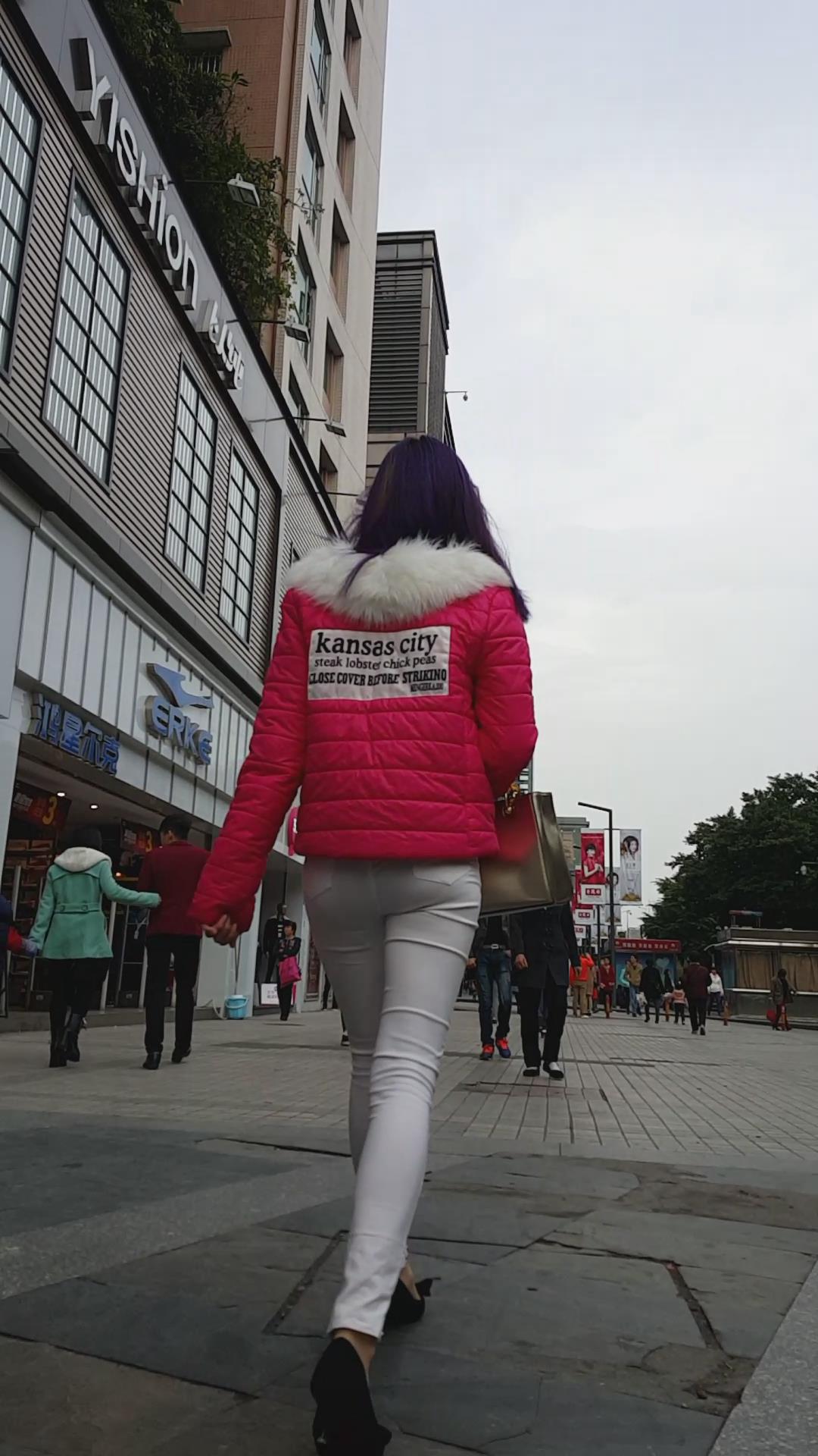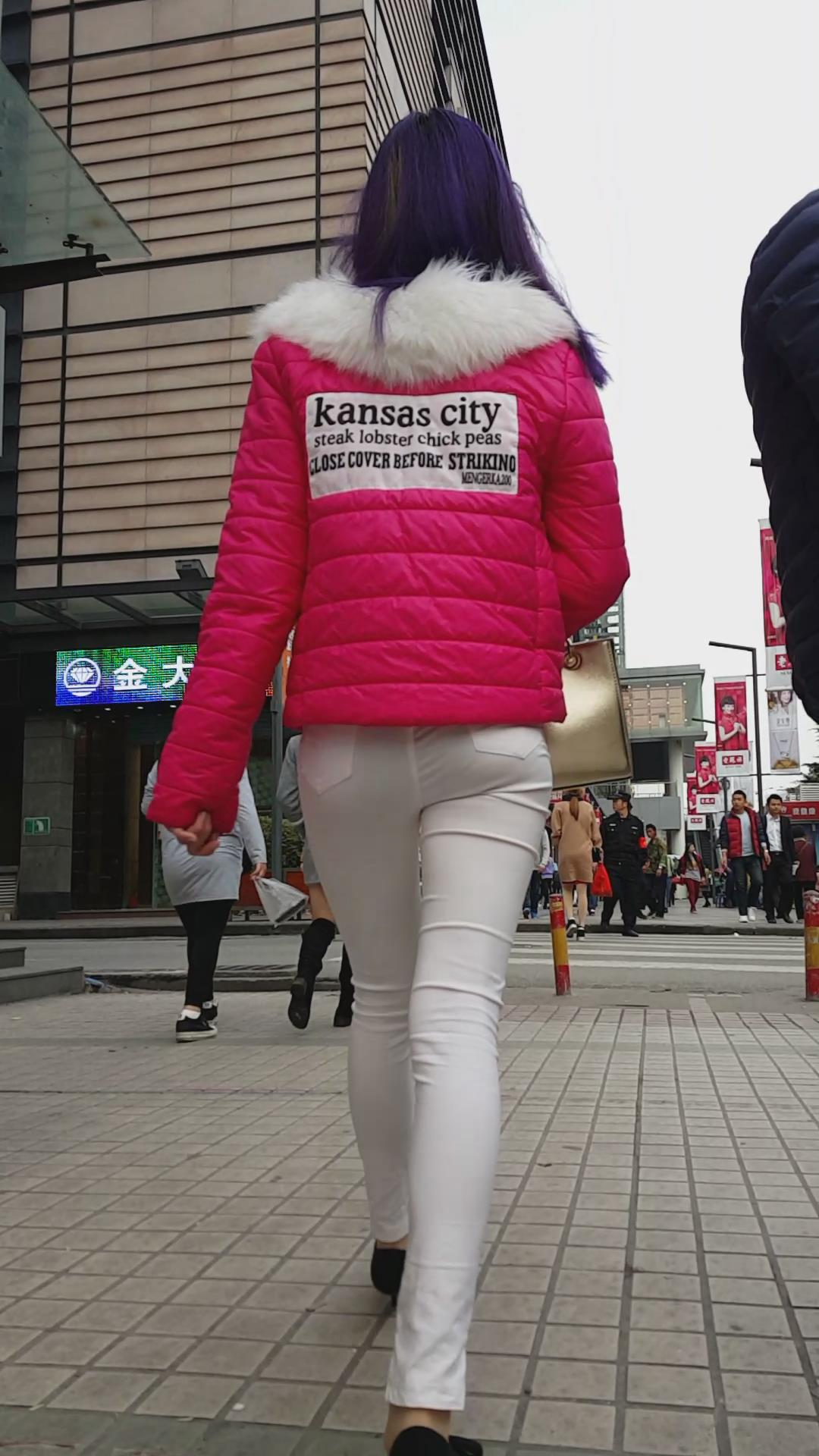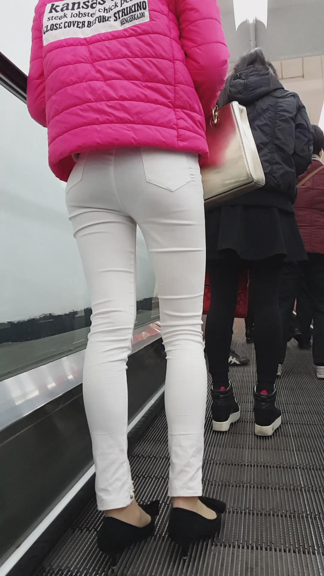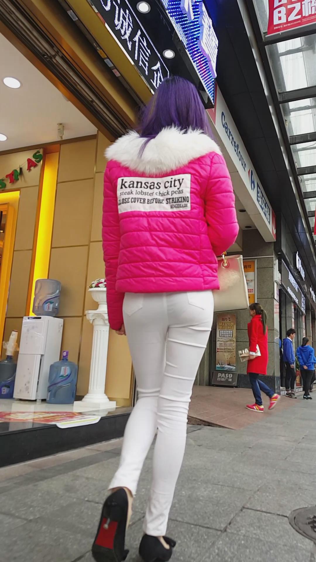 街拍白色紧身裤青春活力妹子 编号5958