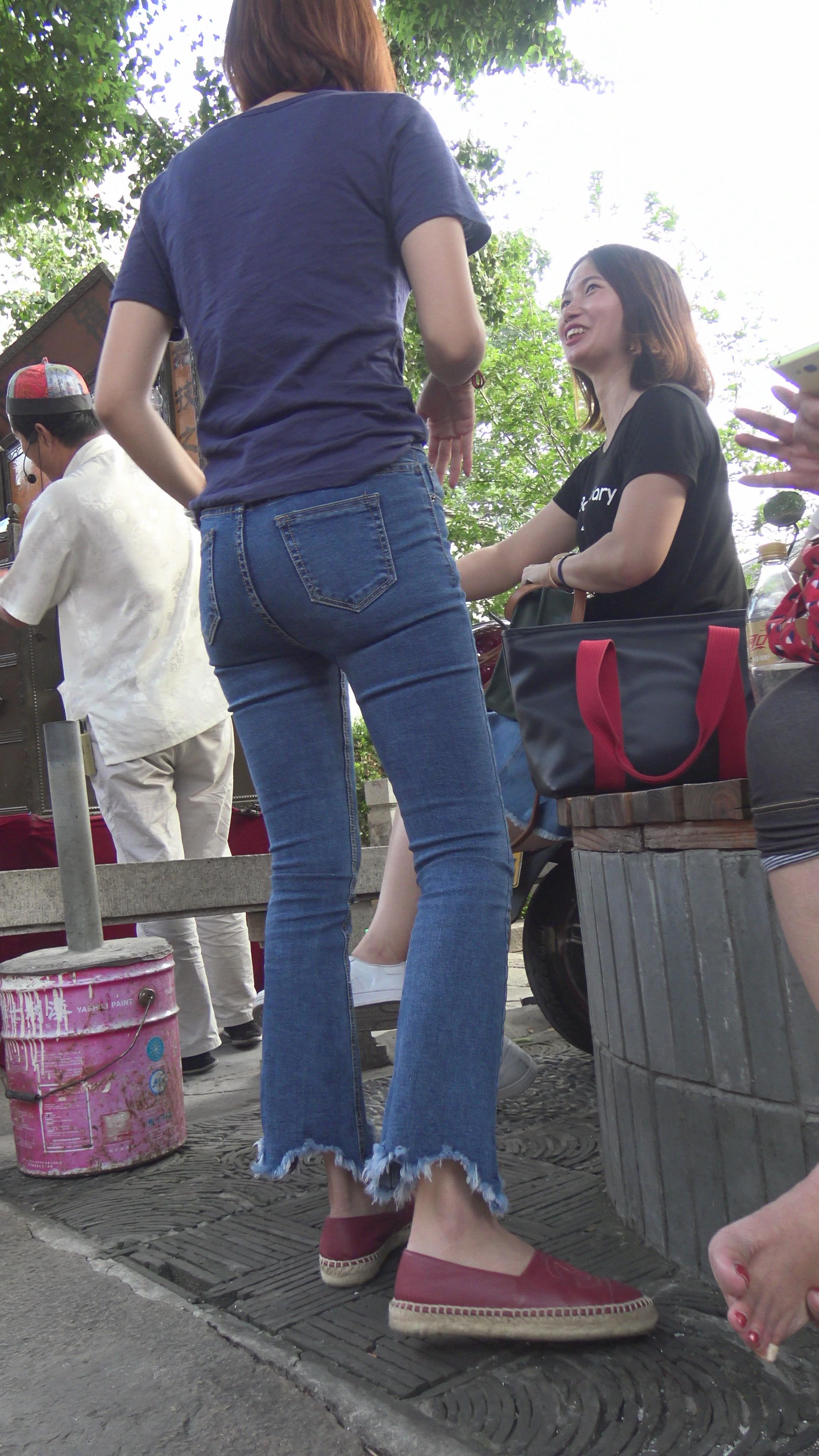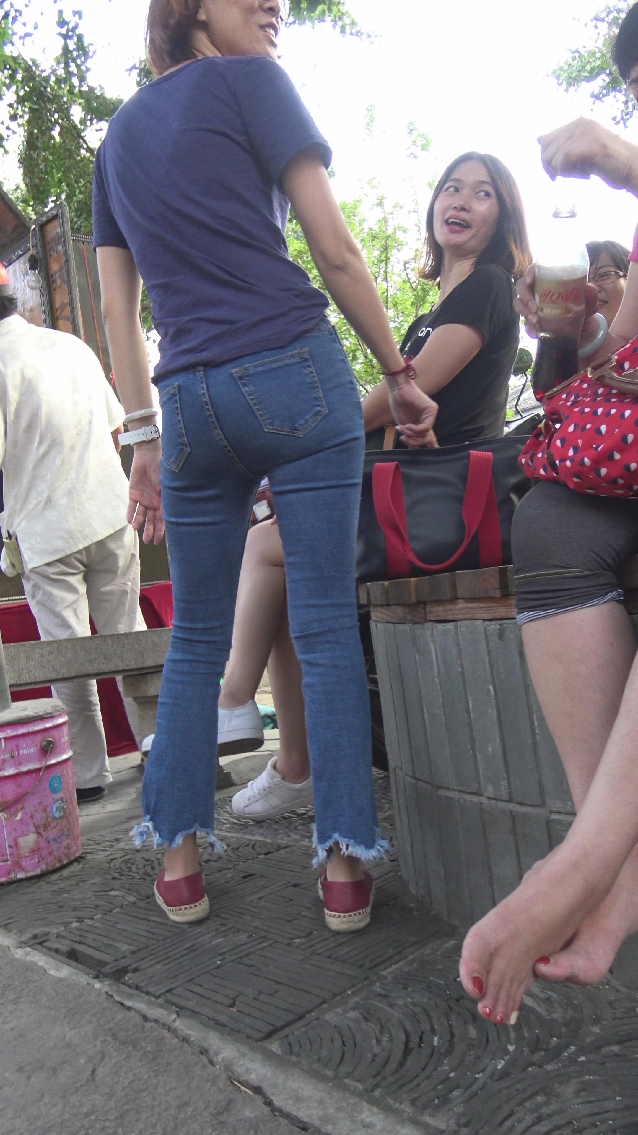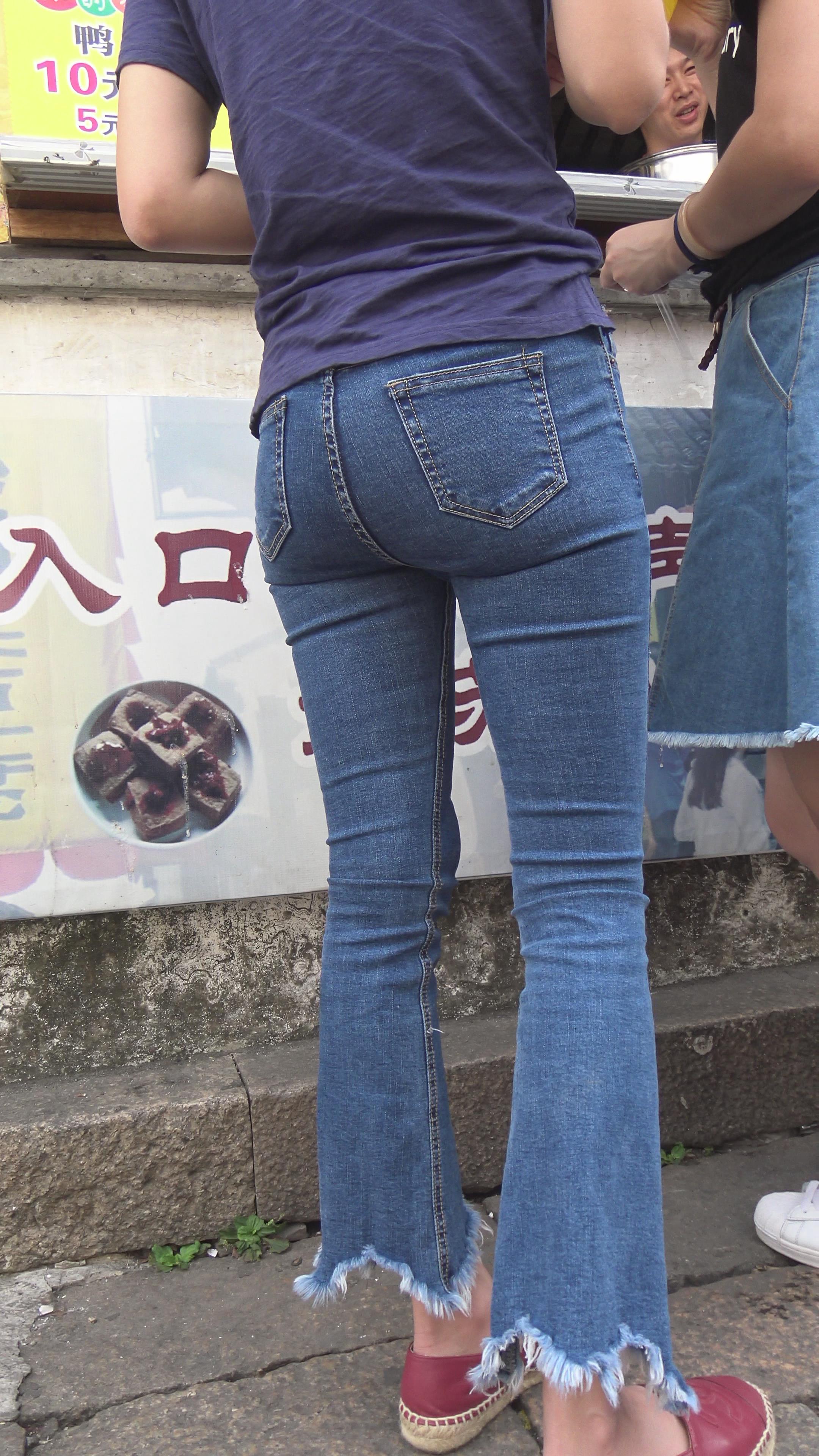 4k-超近距离特写紧身蓝牛美眉的圆臀。 编号5977