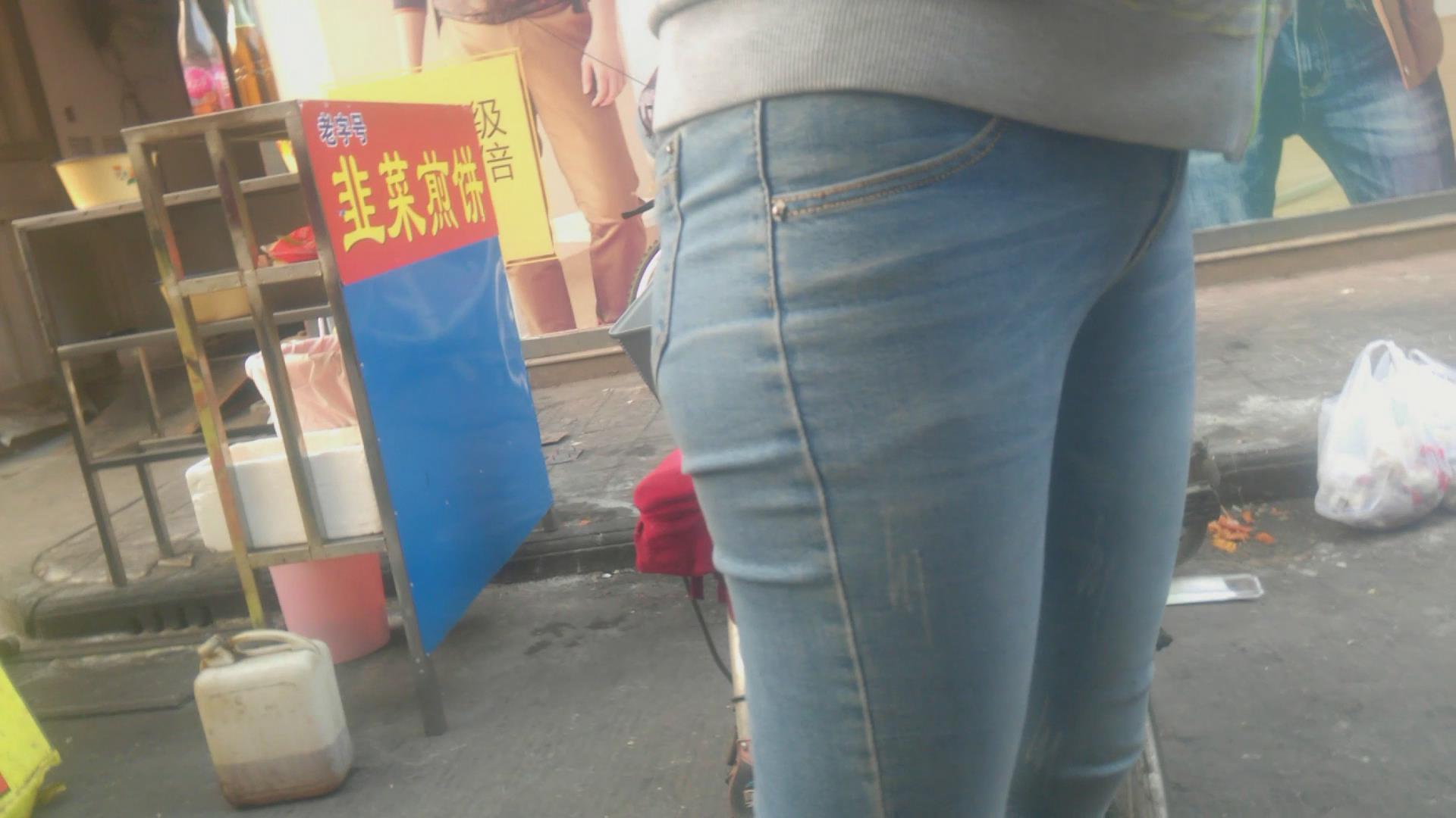 街拍极品清纯紧身蓝色牛仔裤小美女 编号5979