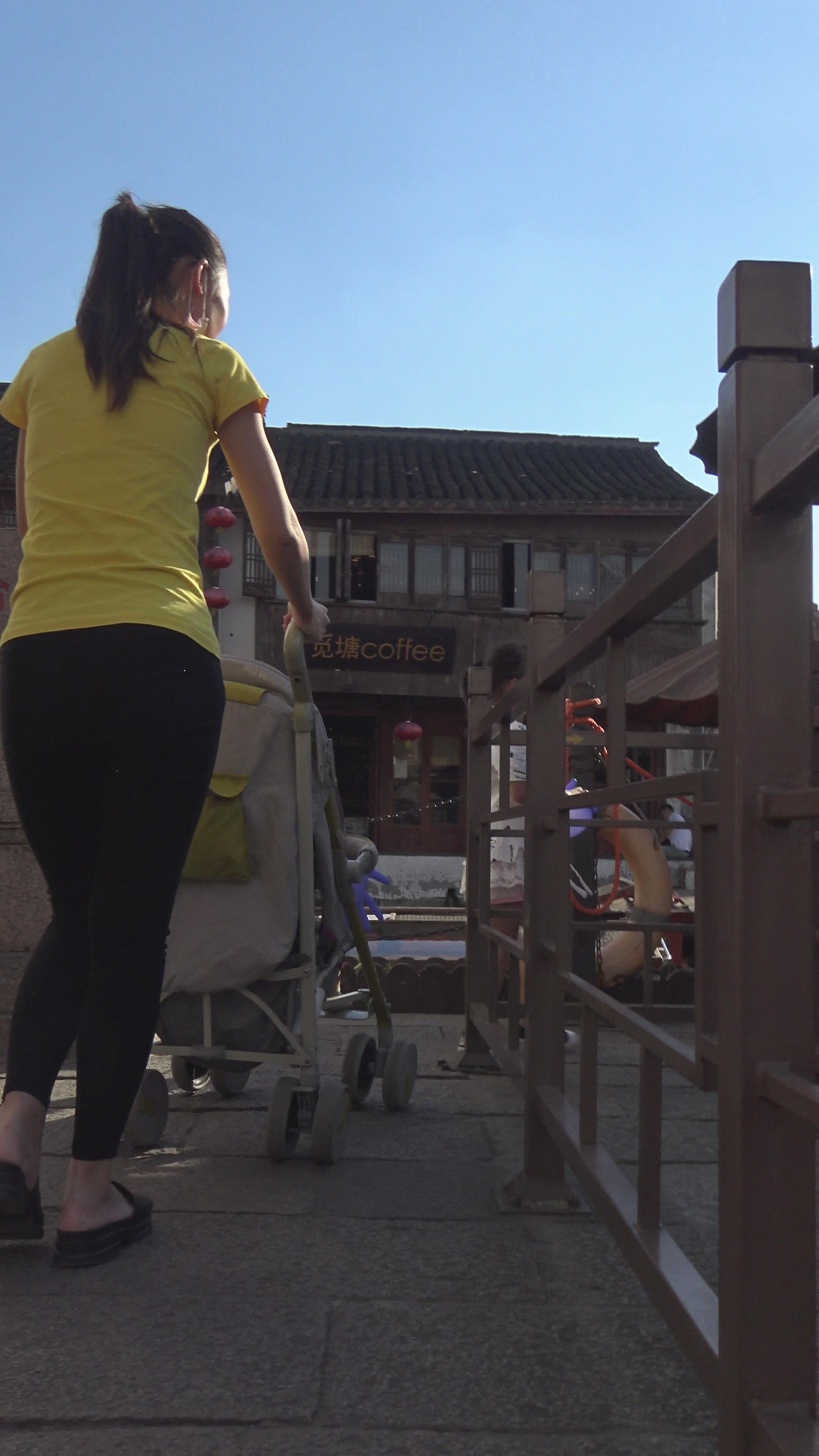 4k-街拍亭亭玉立马尾辫少妇带女儿逛街(上) 编号5986