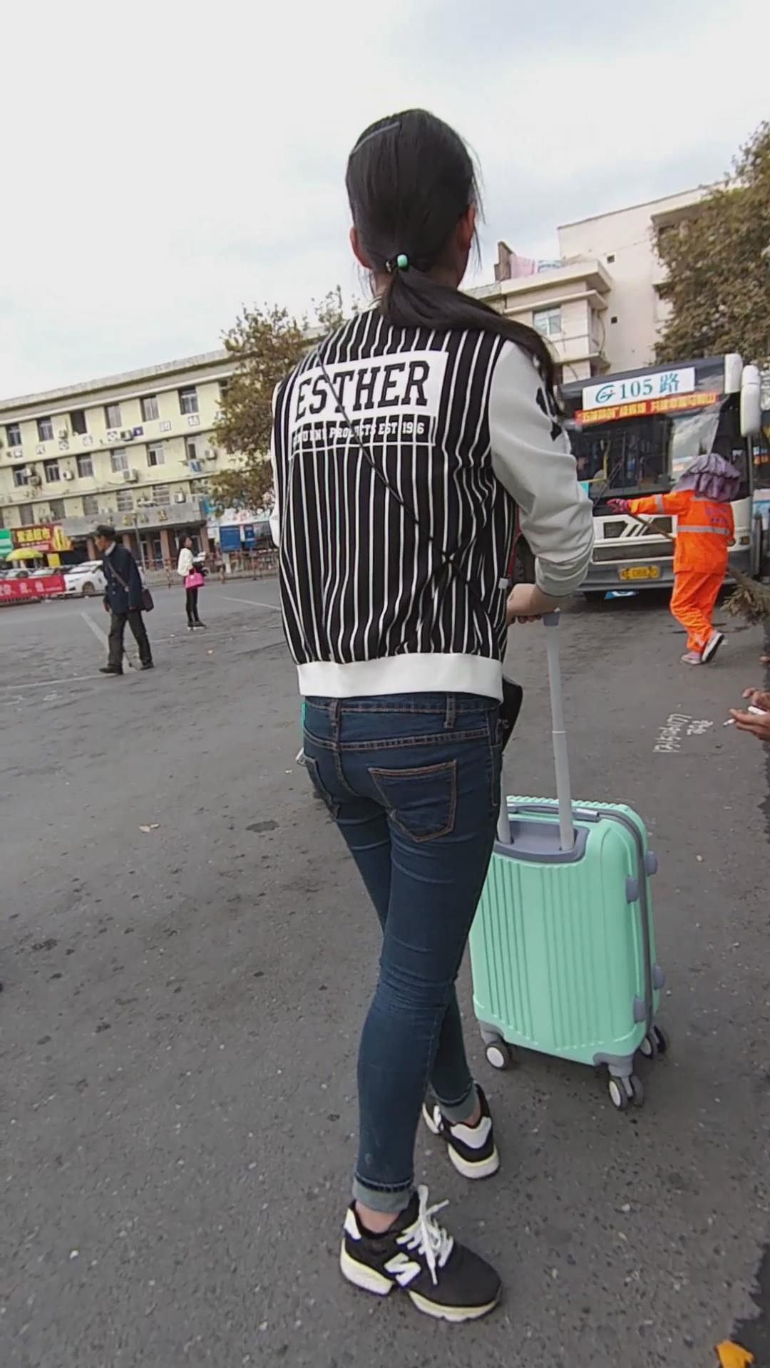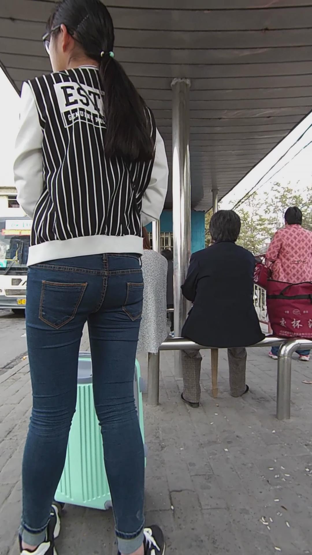 360度全方位拍摄等公交的蓝牛美眉 编号5988