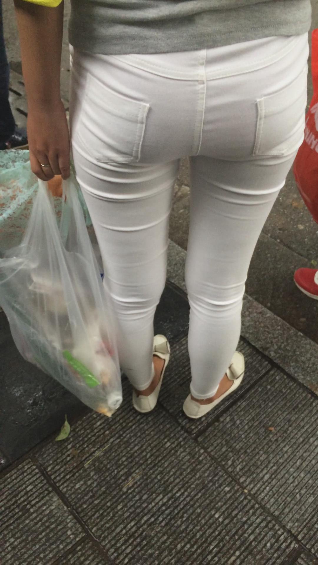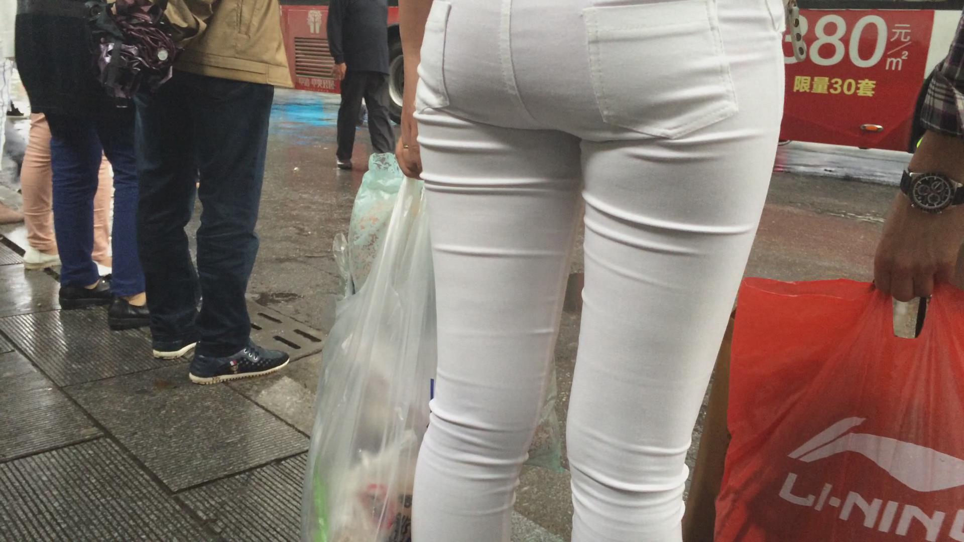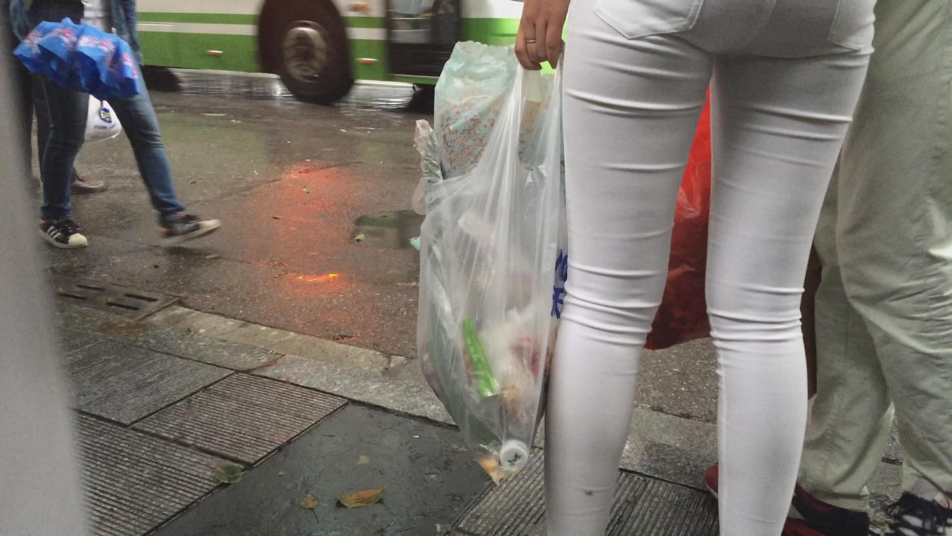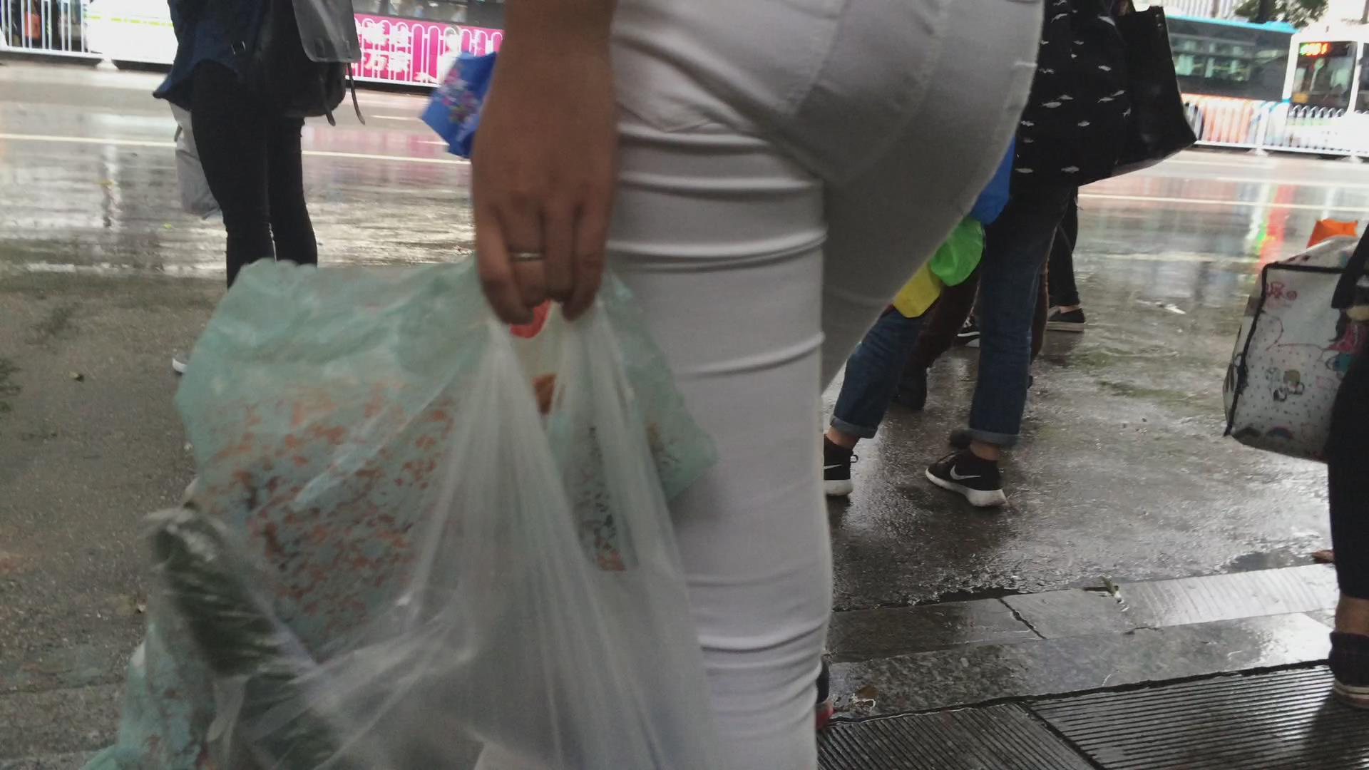 街拍极品紧绷宽臀白裤美眉等公交。 编号5995