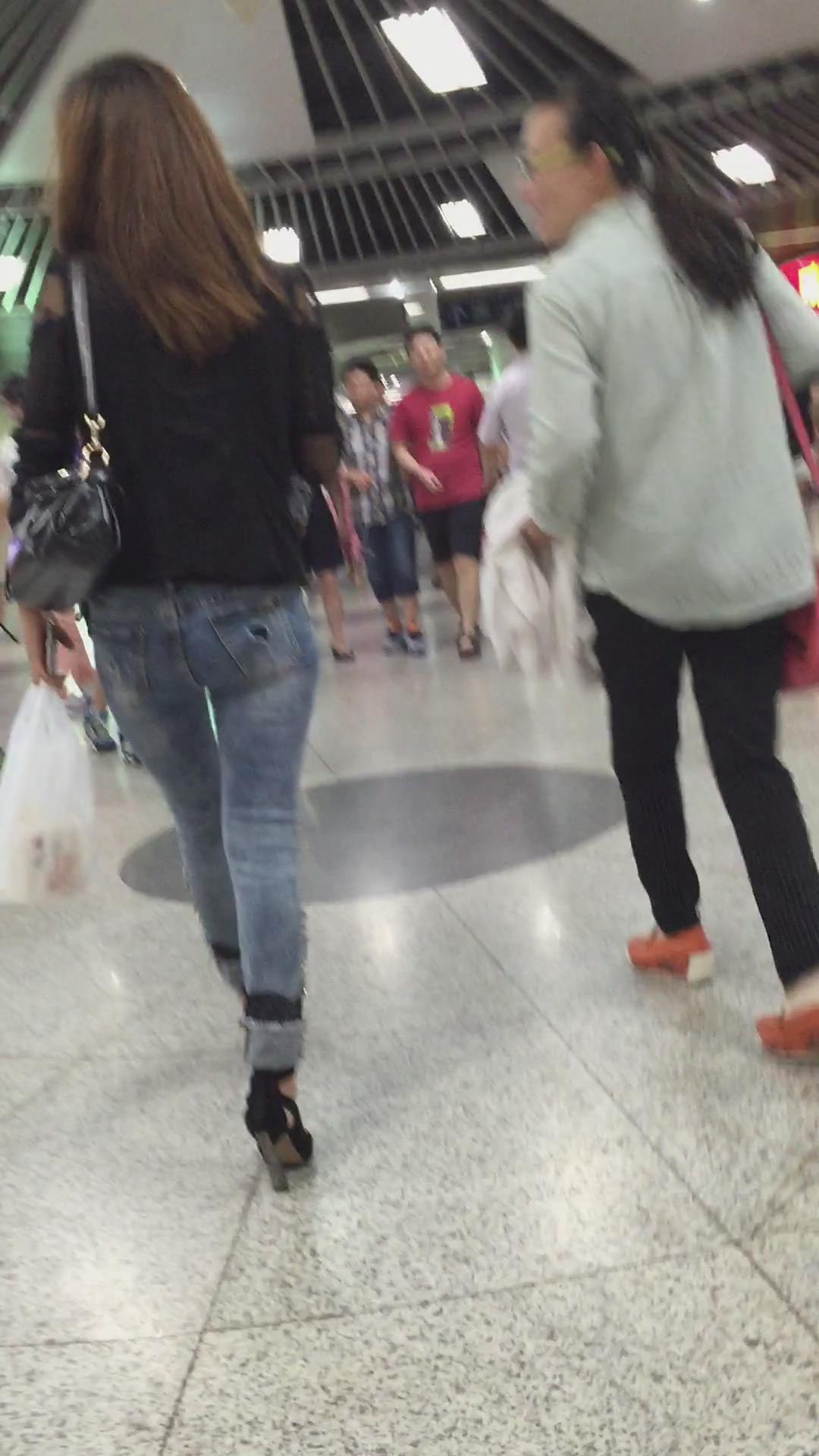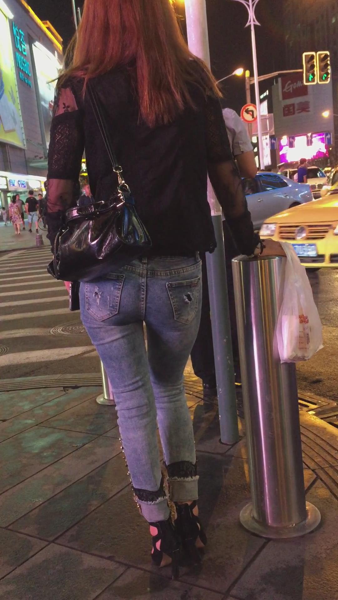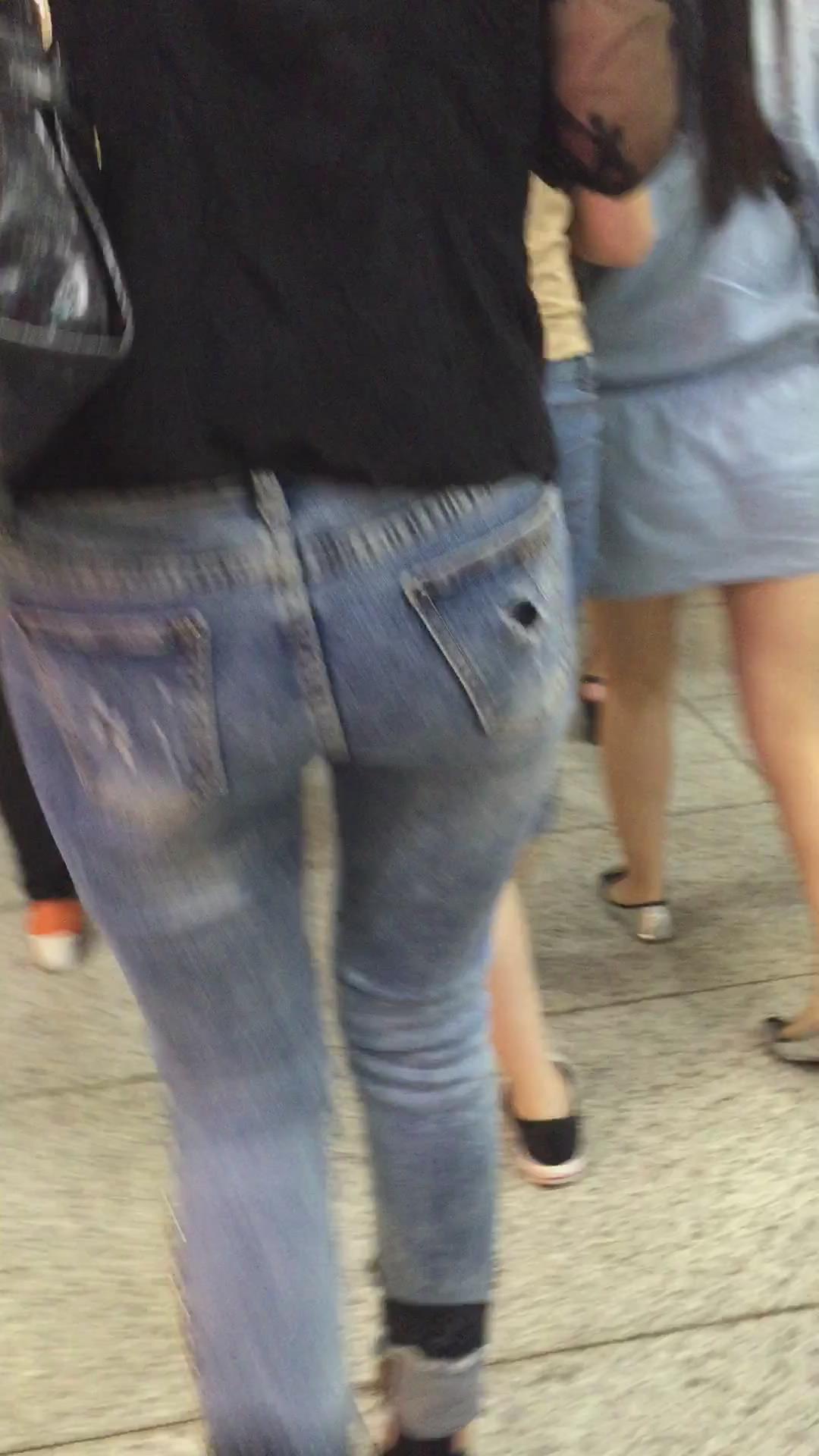 街拍紧身蓝牛宽臀漂亮美女姐姐。 编号5997