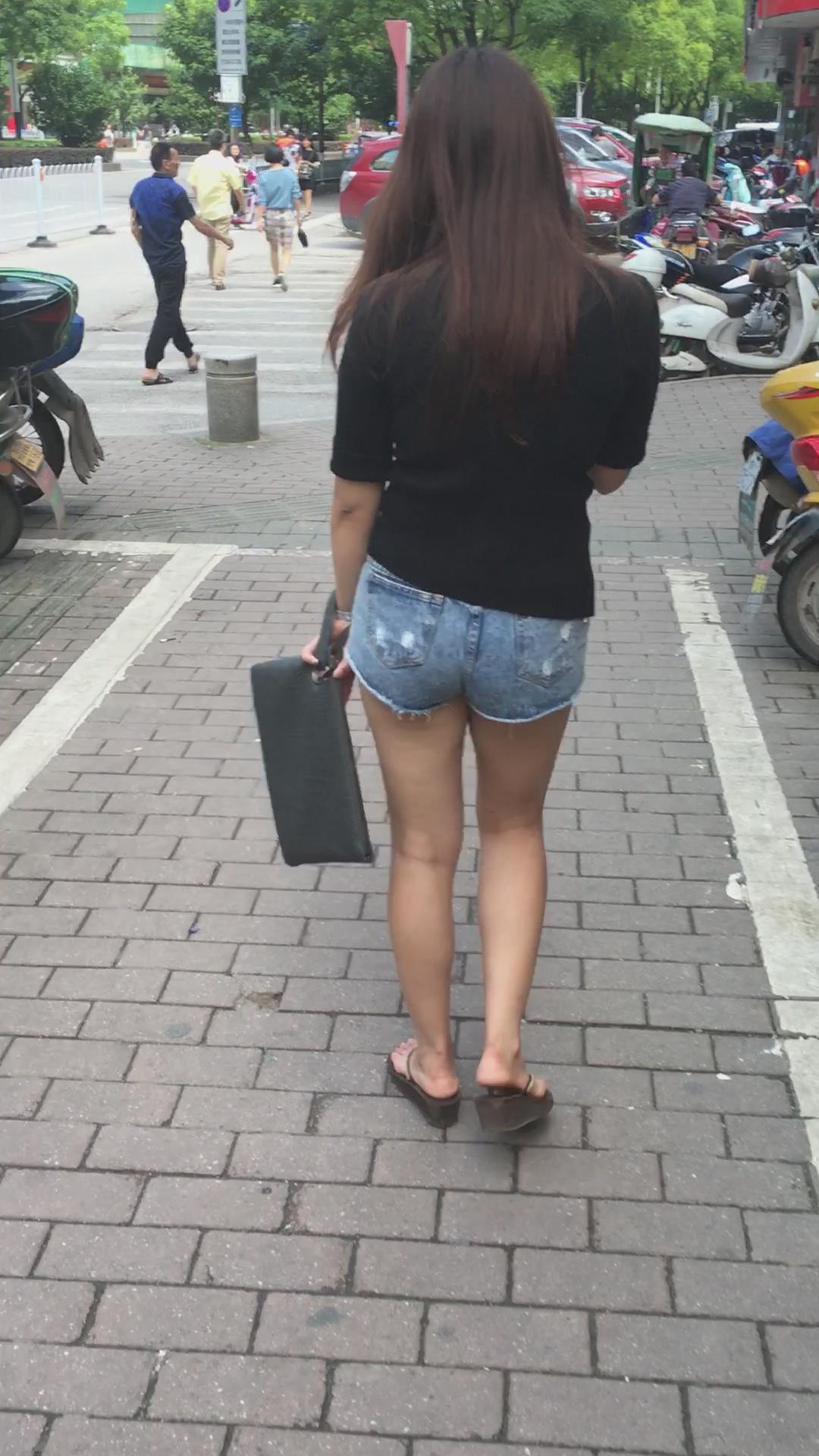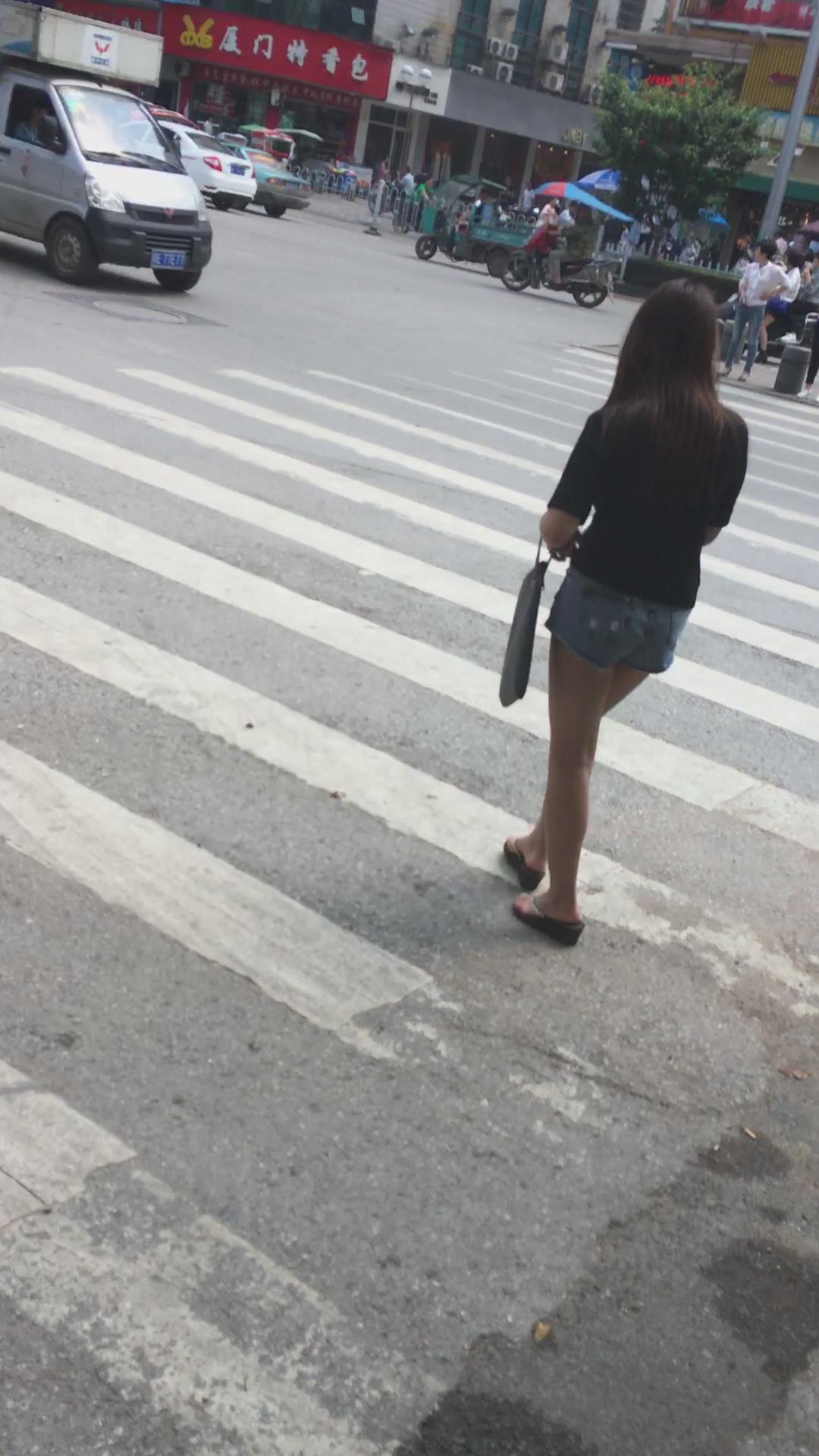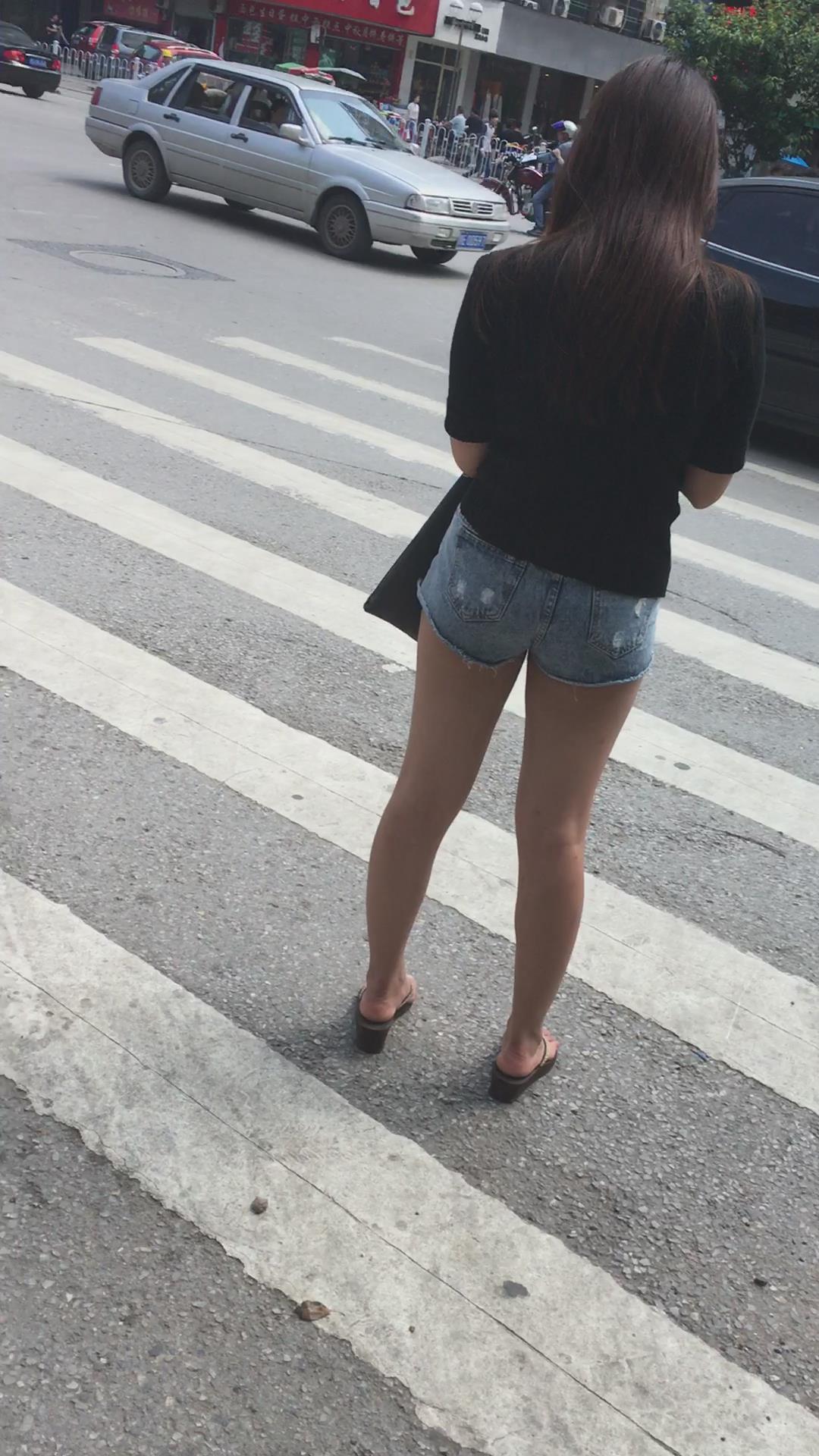 黑T恤超短牛仔热裤街拍圆臀美腿美眉 编号4496