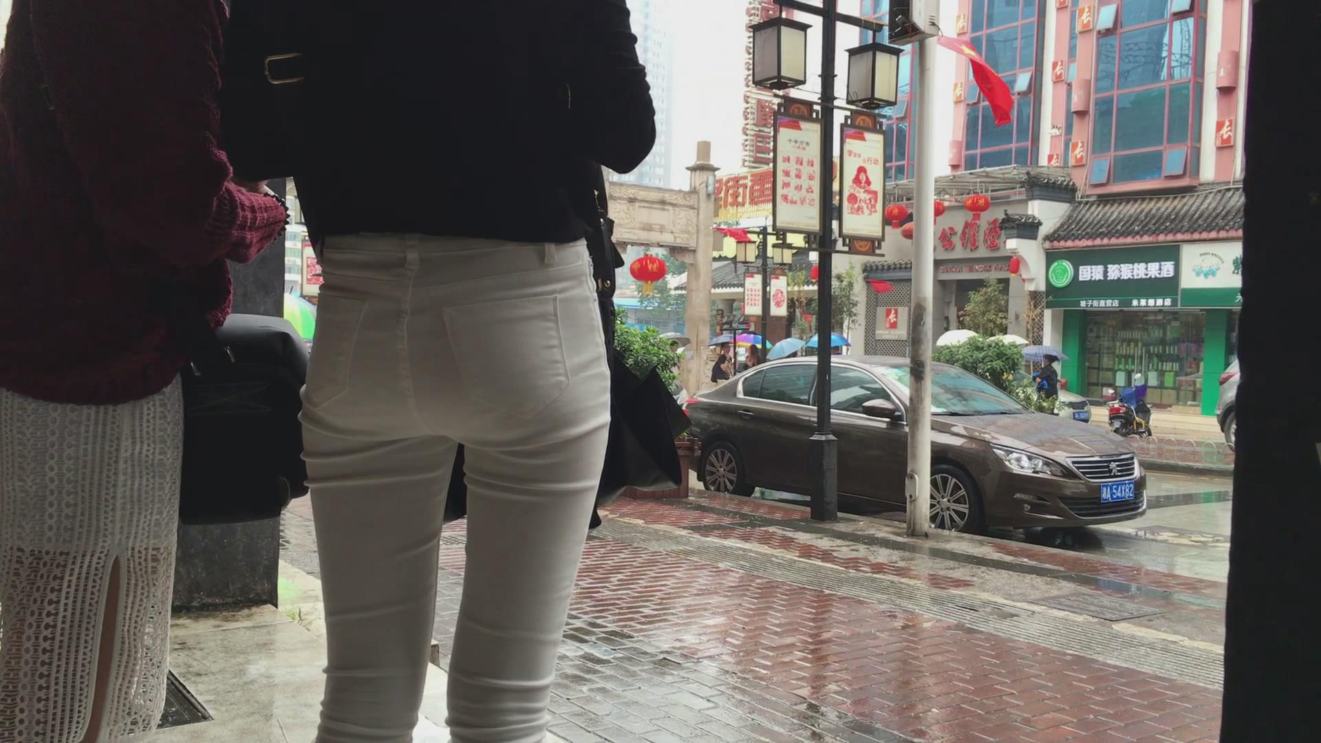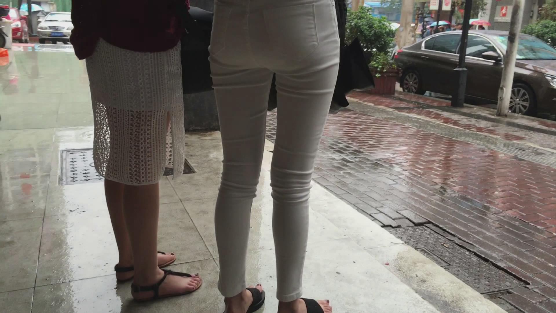 雨中拍摄紧身白裤美腿姐妹花 编号6021