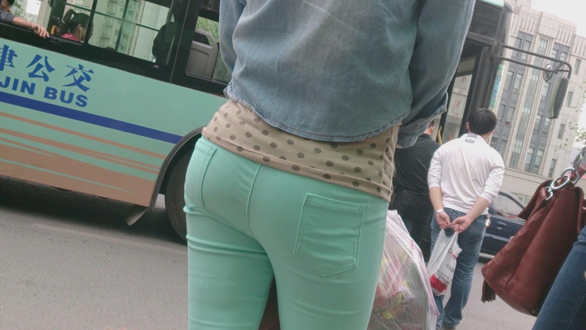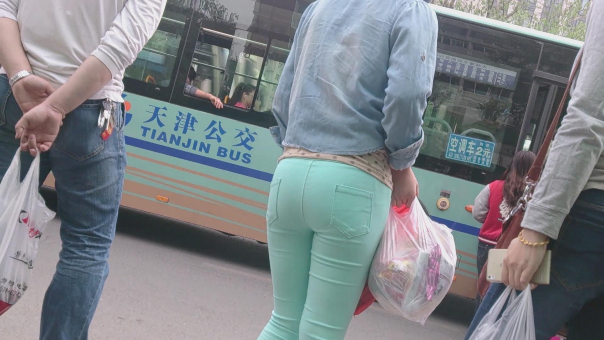 街拍路边等车的紧身裤少女 编号6028